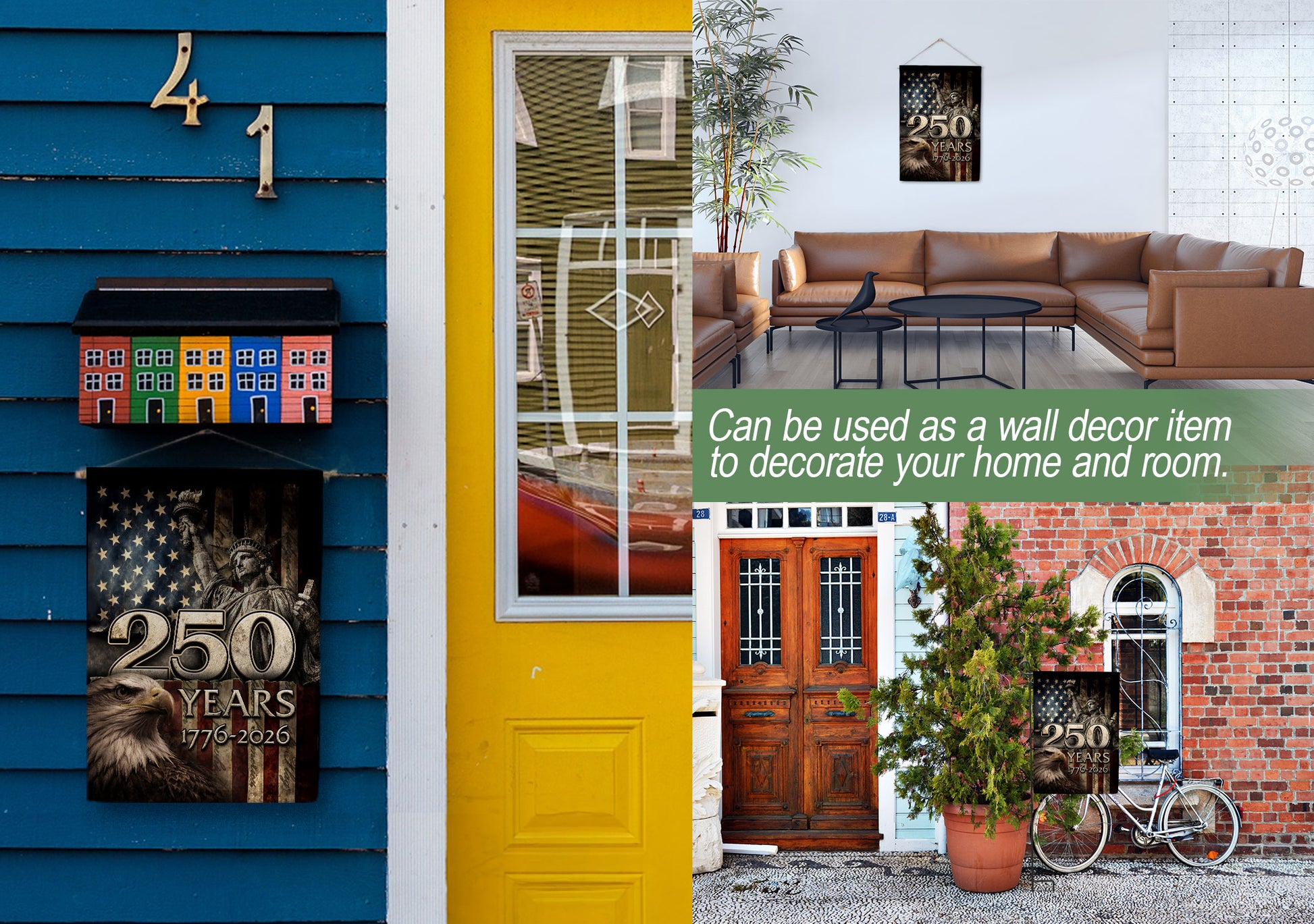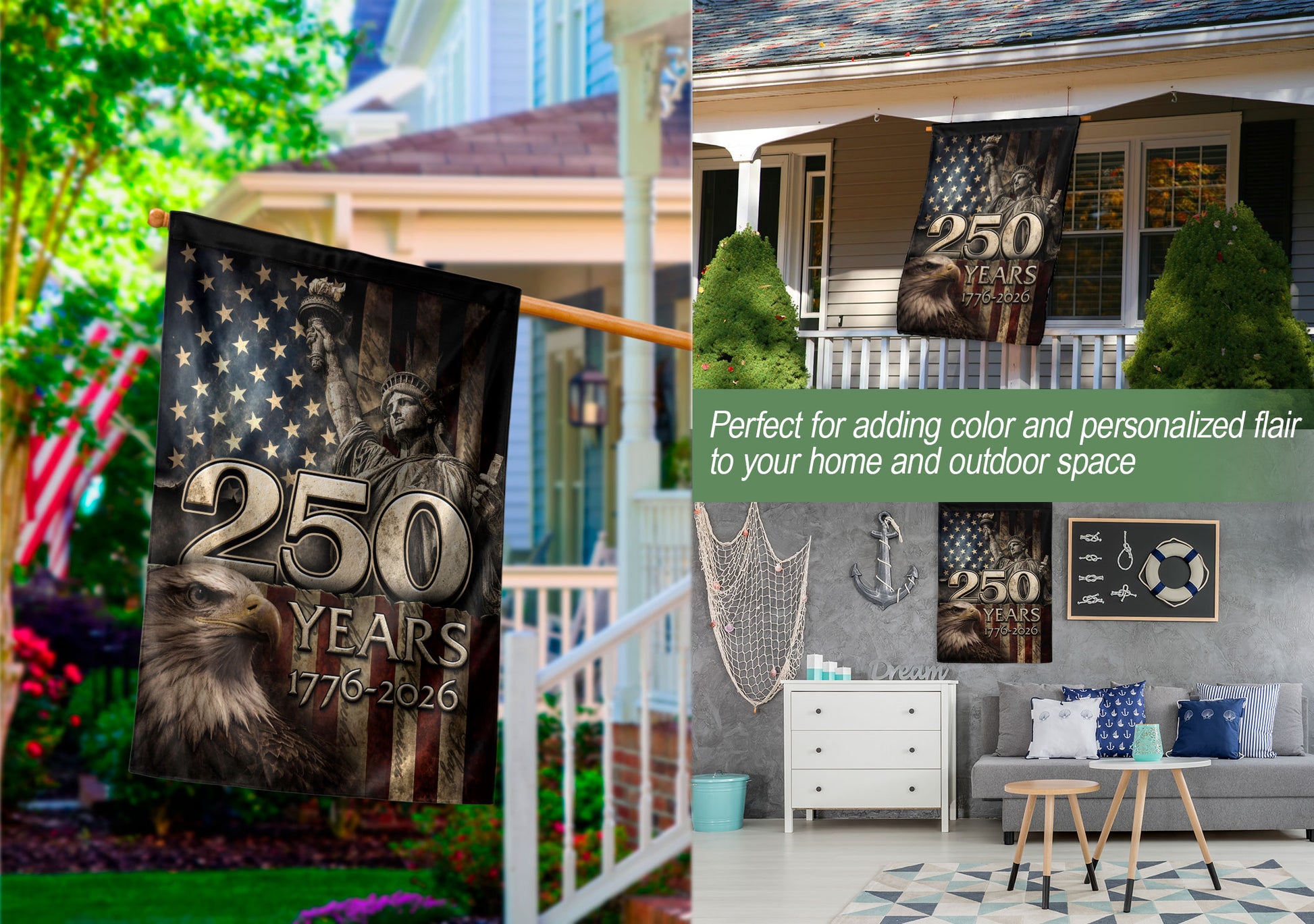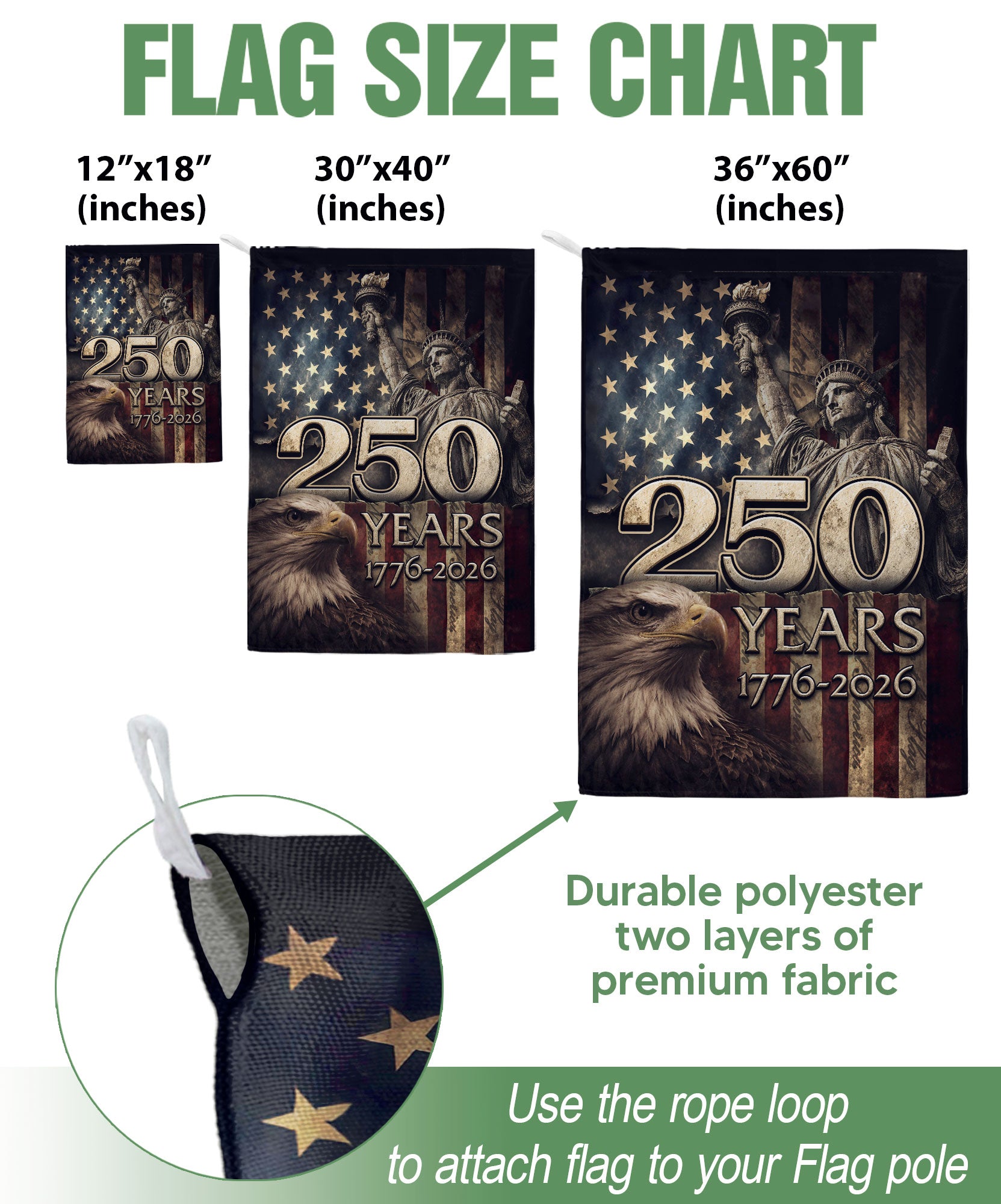 1776-2026 Anniversary House Flag 250 Years of Liberty Statue & Bald Eagle Banner