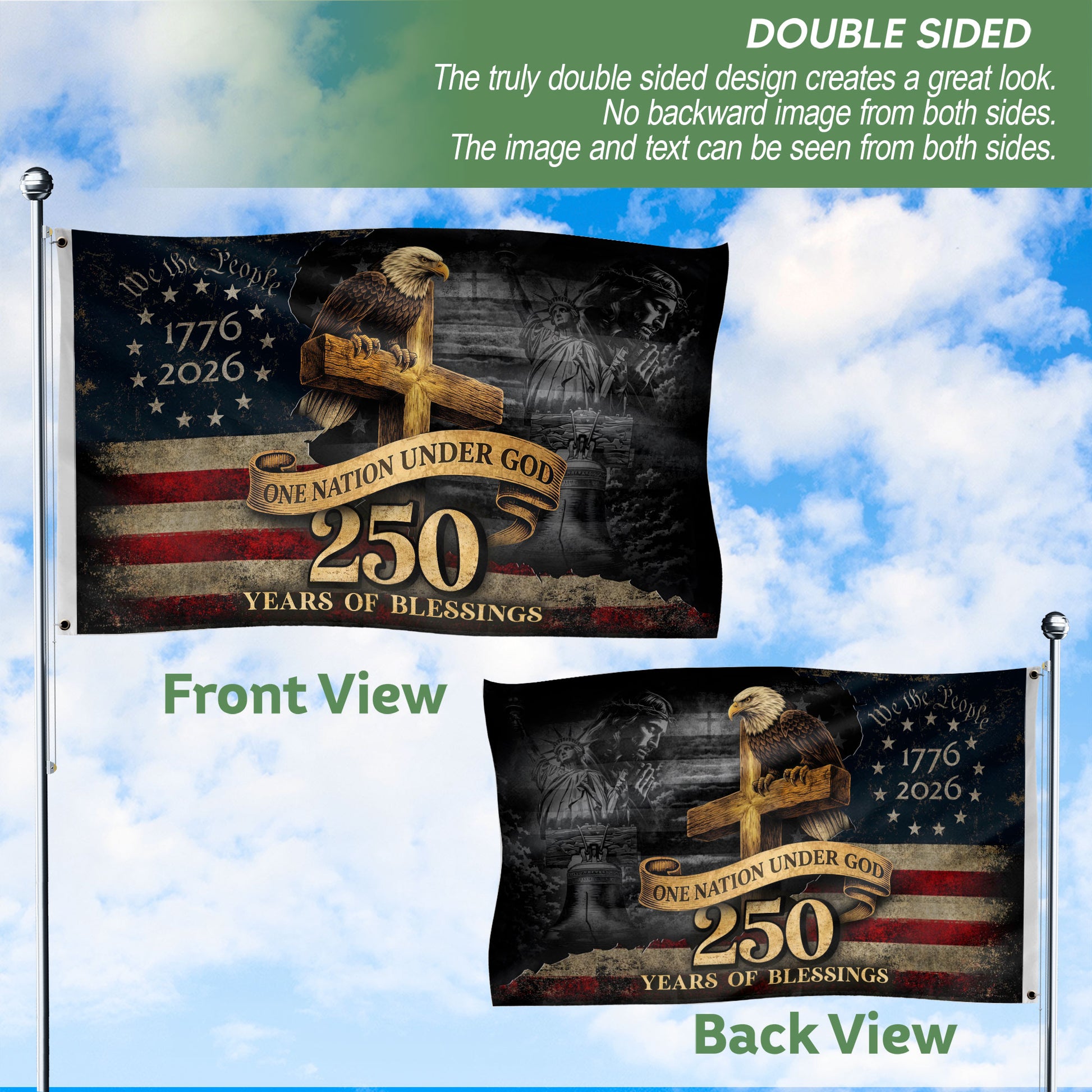 250 Years of Blessings American Flag – Christian Patriotic Semiquincentennial Garden Flag