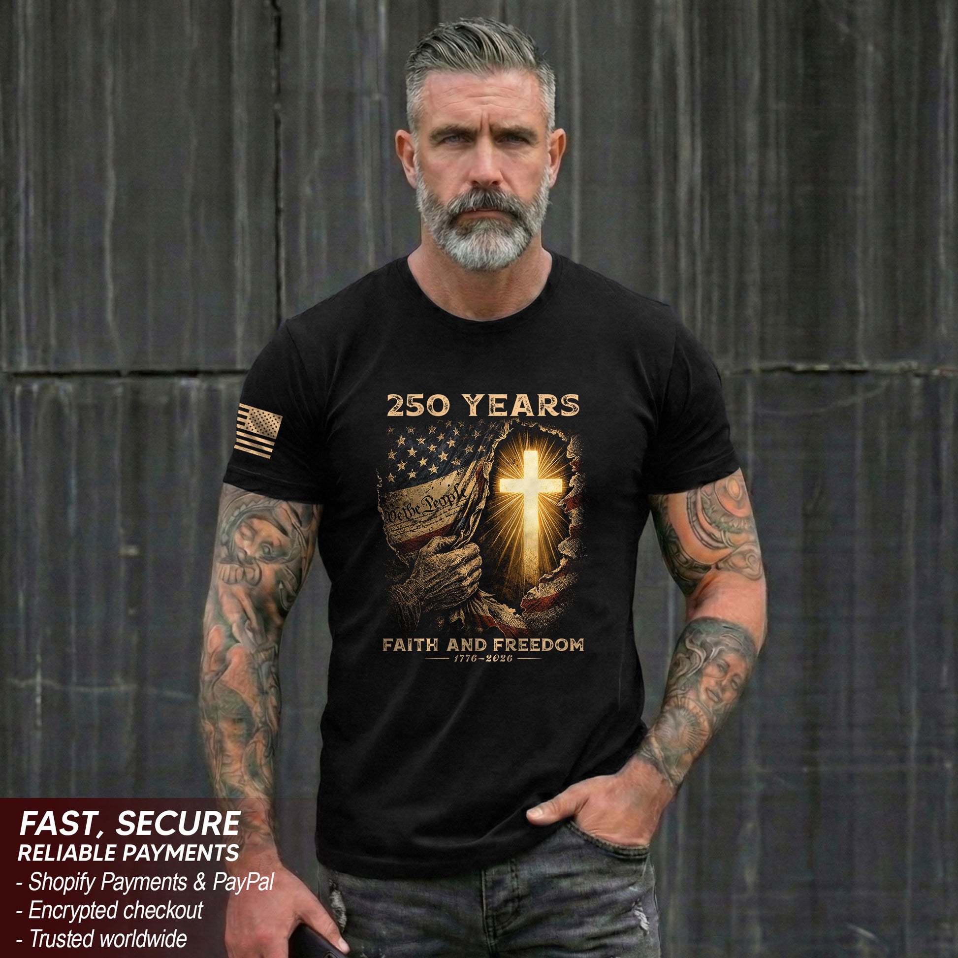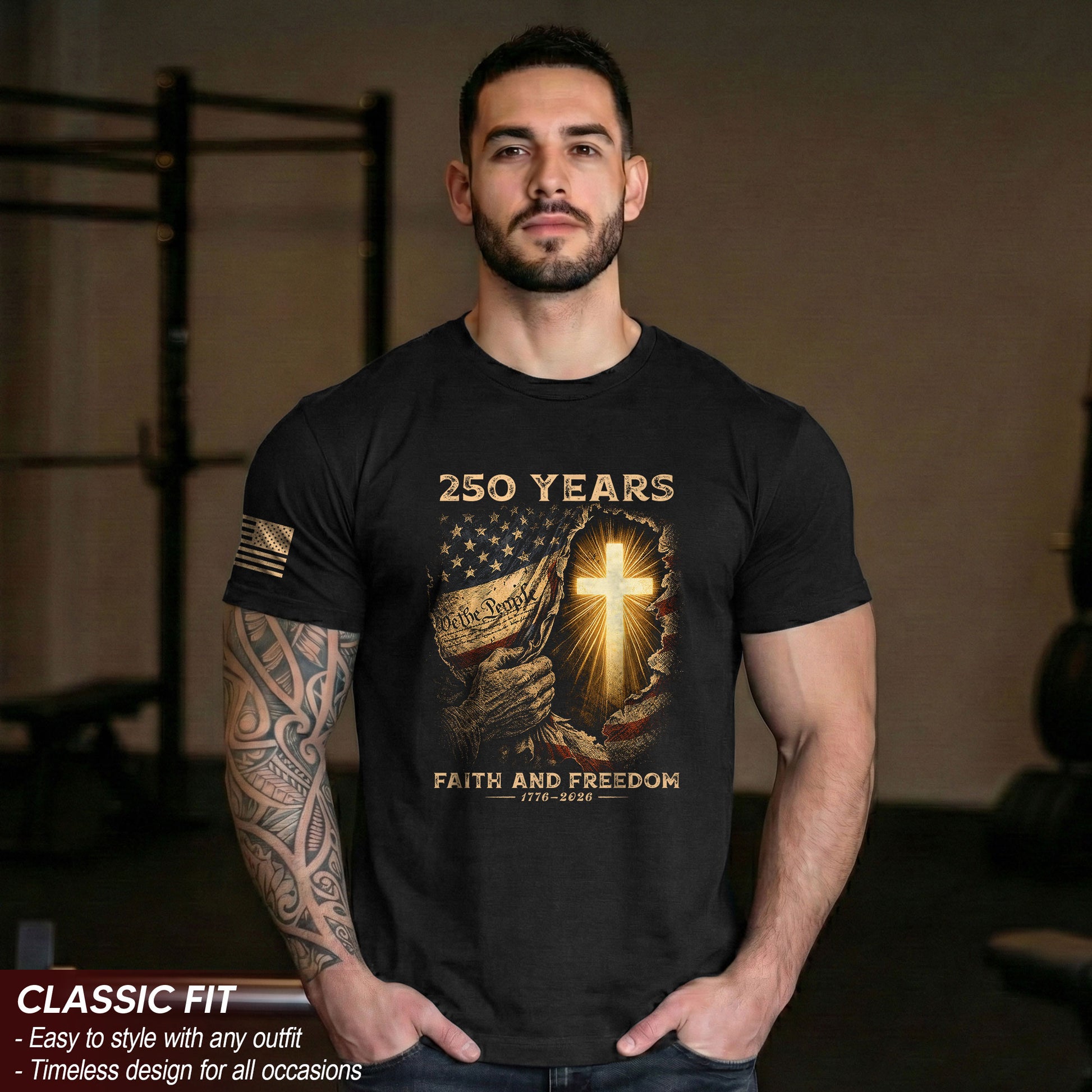 250th Anniversary Patriotic Shirt - Faith and Freedom Glowing Cross Christian Design