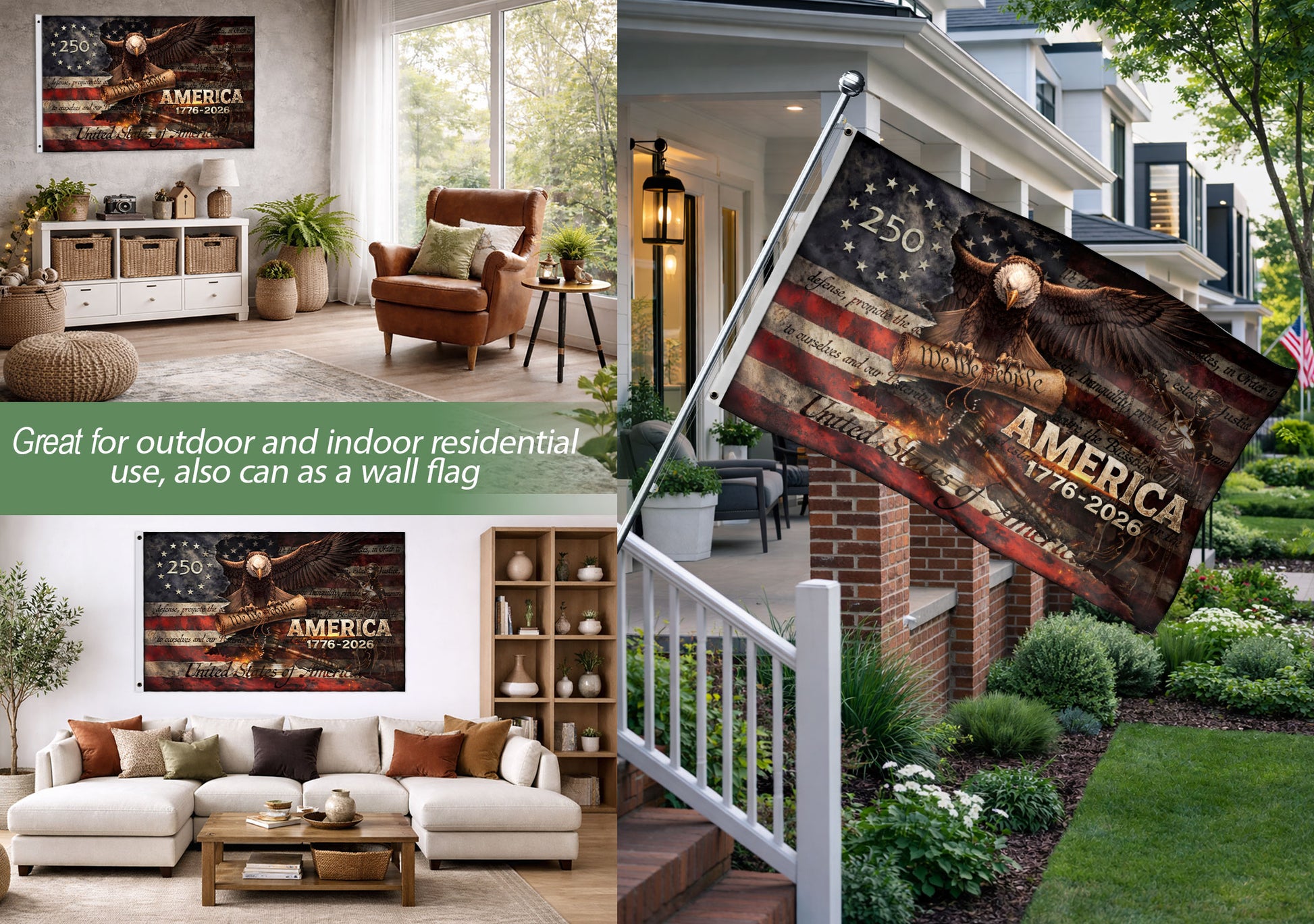 America 250 Years House Flag Patriotic Eagle We The People 1776 2026 Outdoor Decor