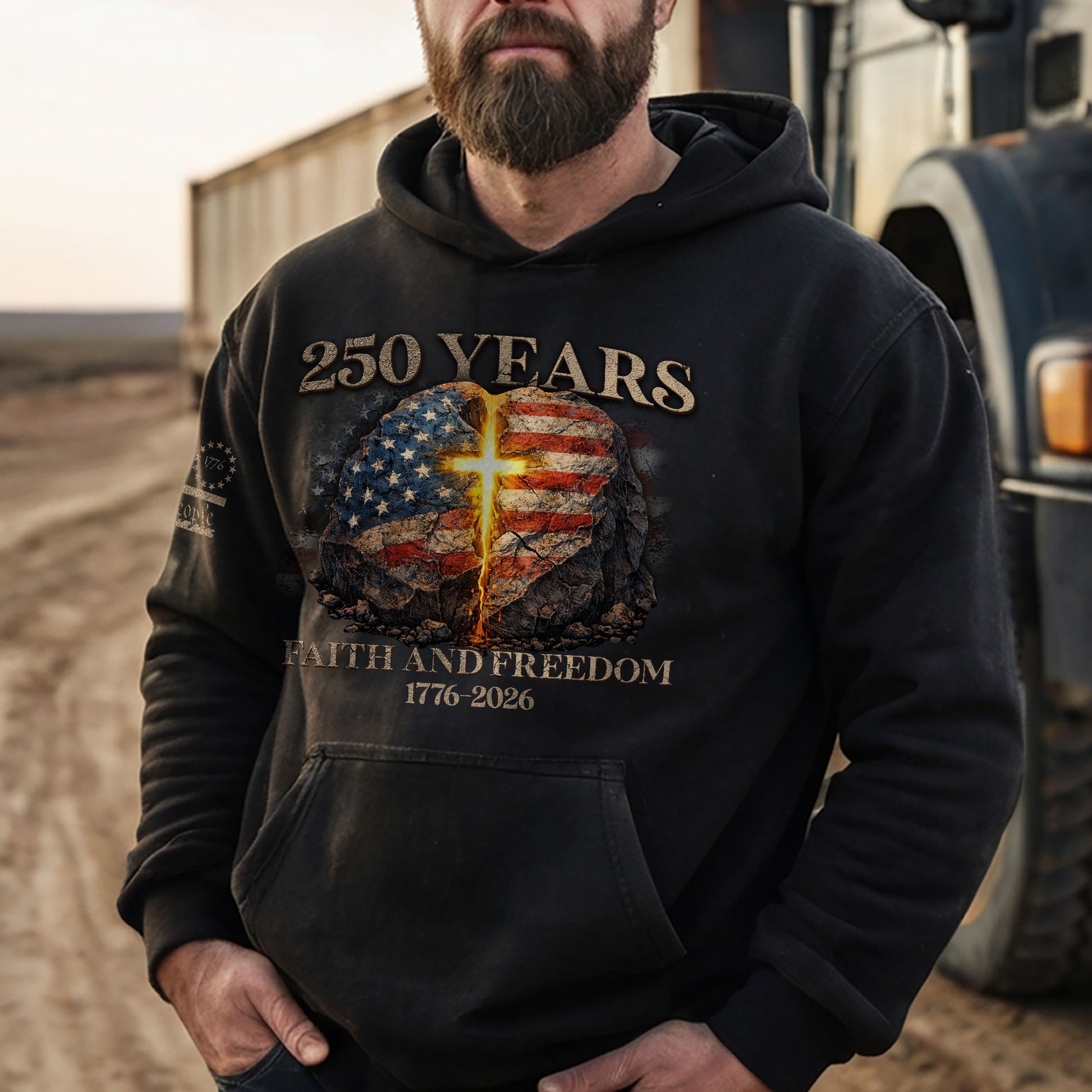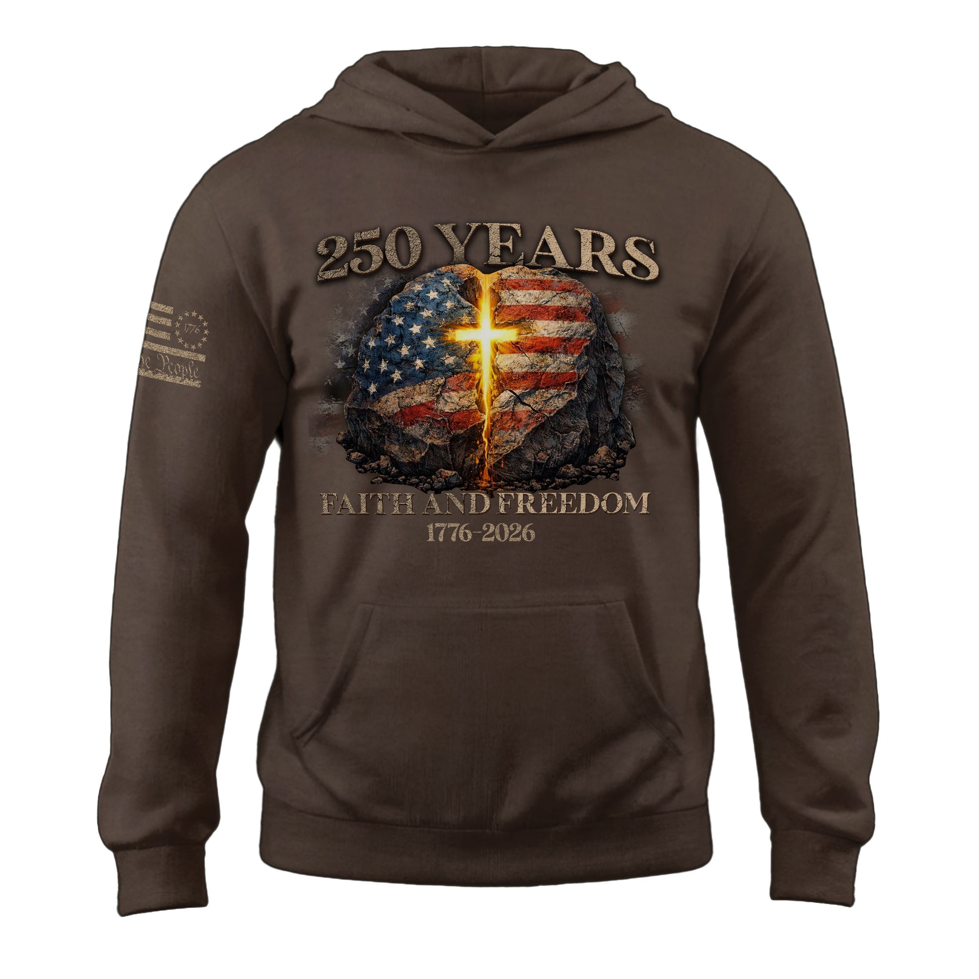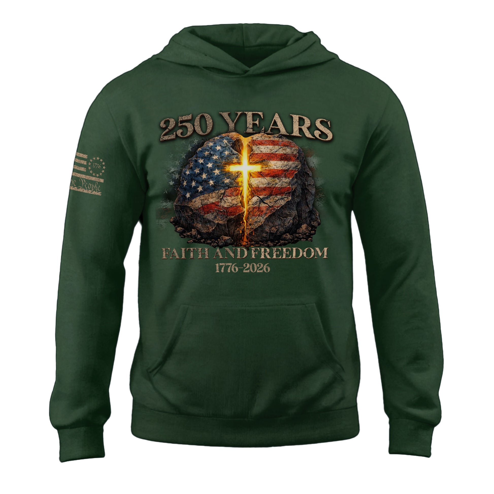 America 250th Anniversary 1776-2026 Semiquincentennial Hoodie – Christian Faith and Freedom Cross Flag Patriotic Hoodie