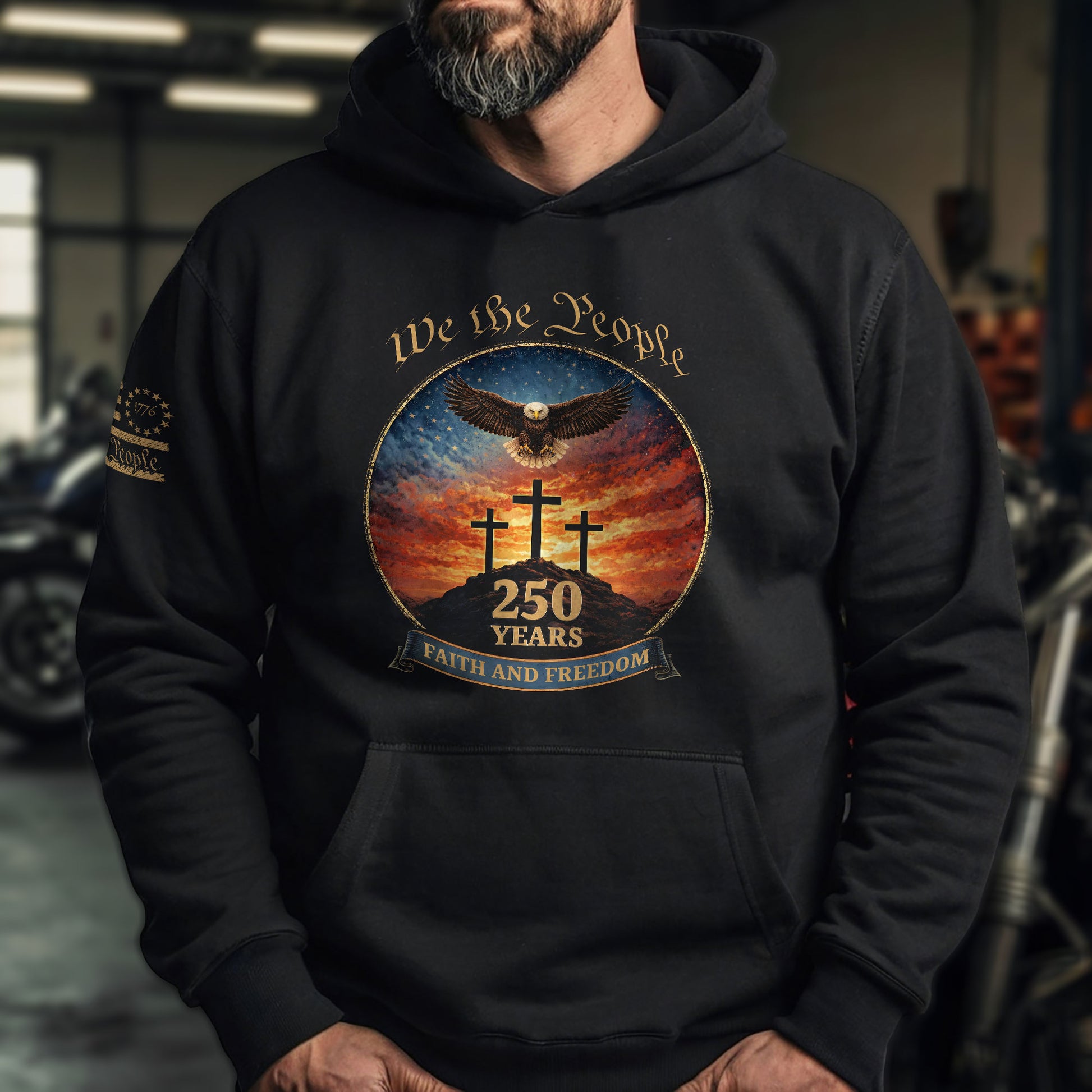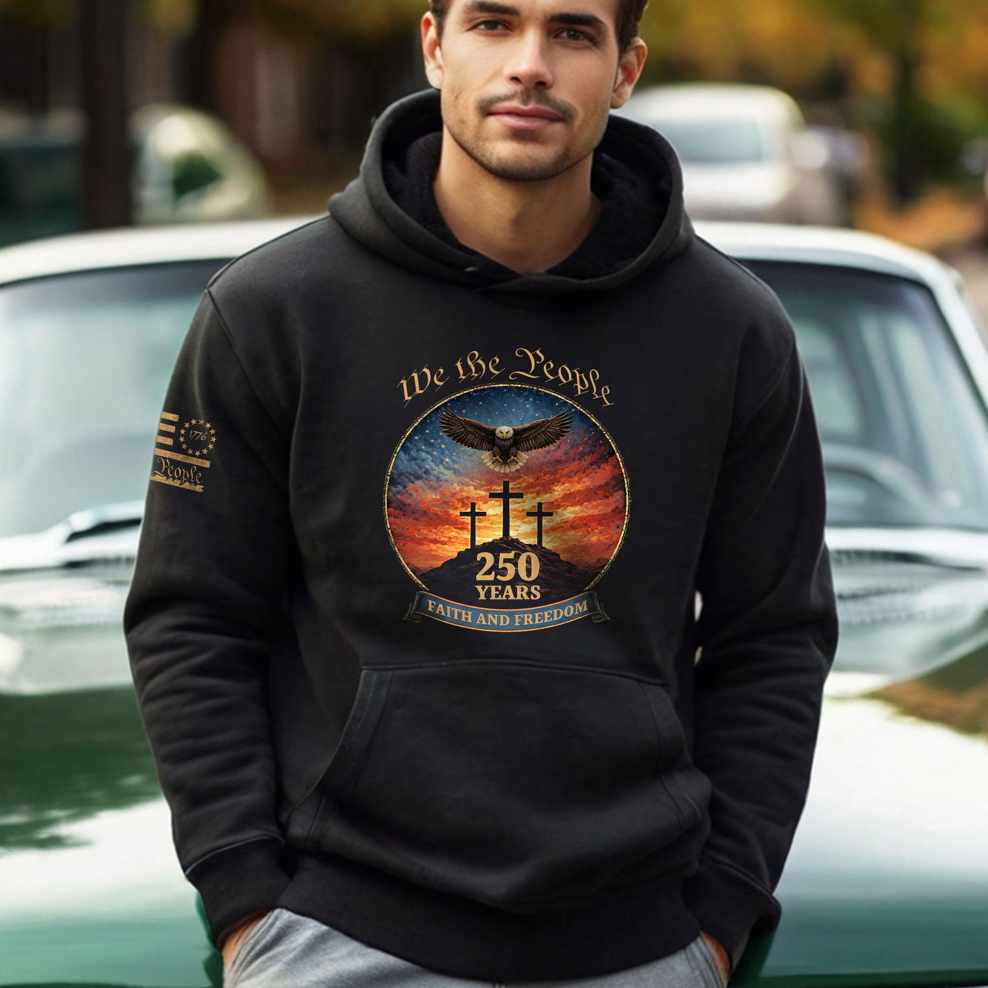 America 250th Anniversary 1776-2026 Semiquincentennial Hoodie – We The People Eagle Cross Faith and Freedom Men’s Hoodie