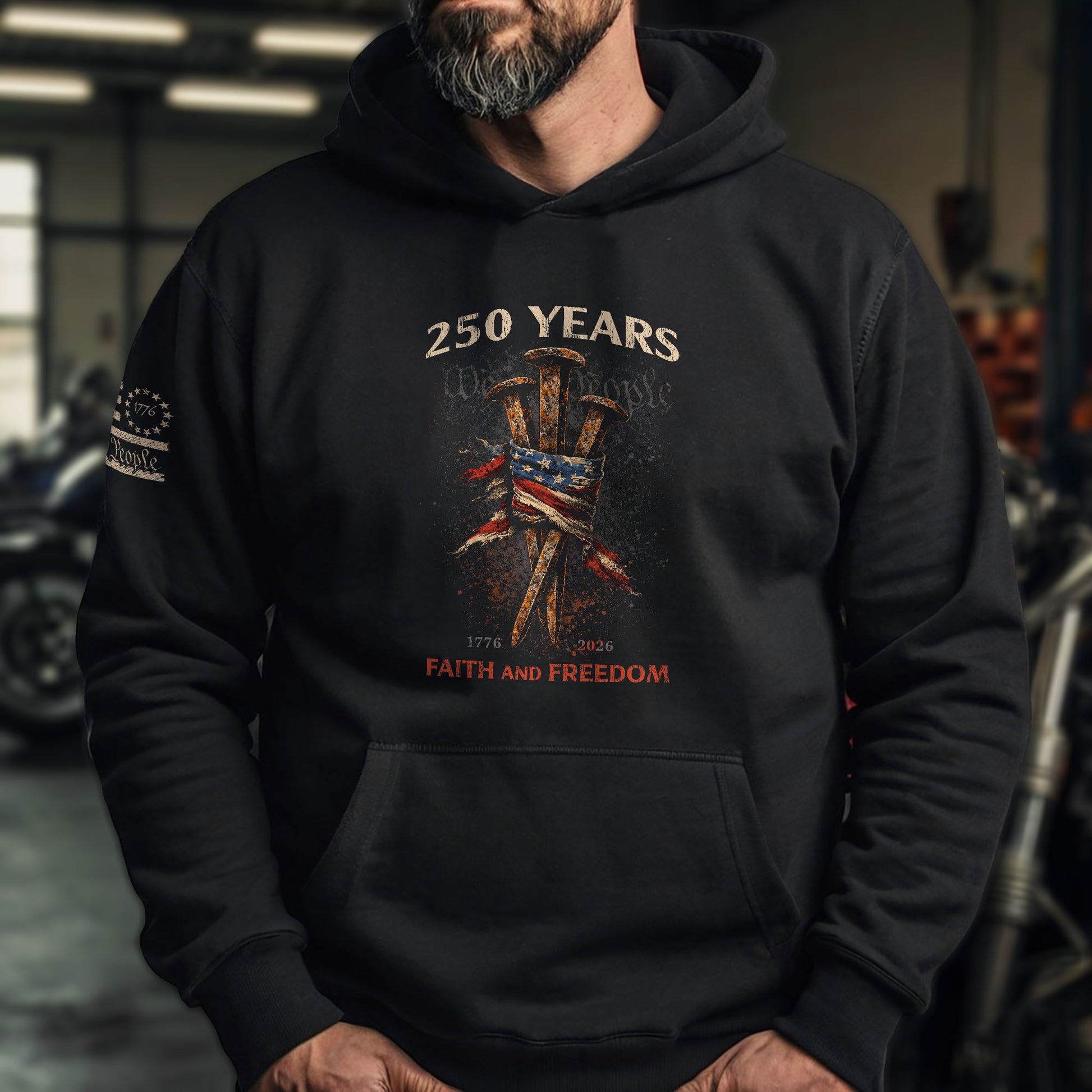 America 250th Anniversary 1776-2026 Semiquincentennial Hoodie – We The People Faith and Freedom Patriotic Men’s Hoodie