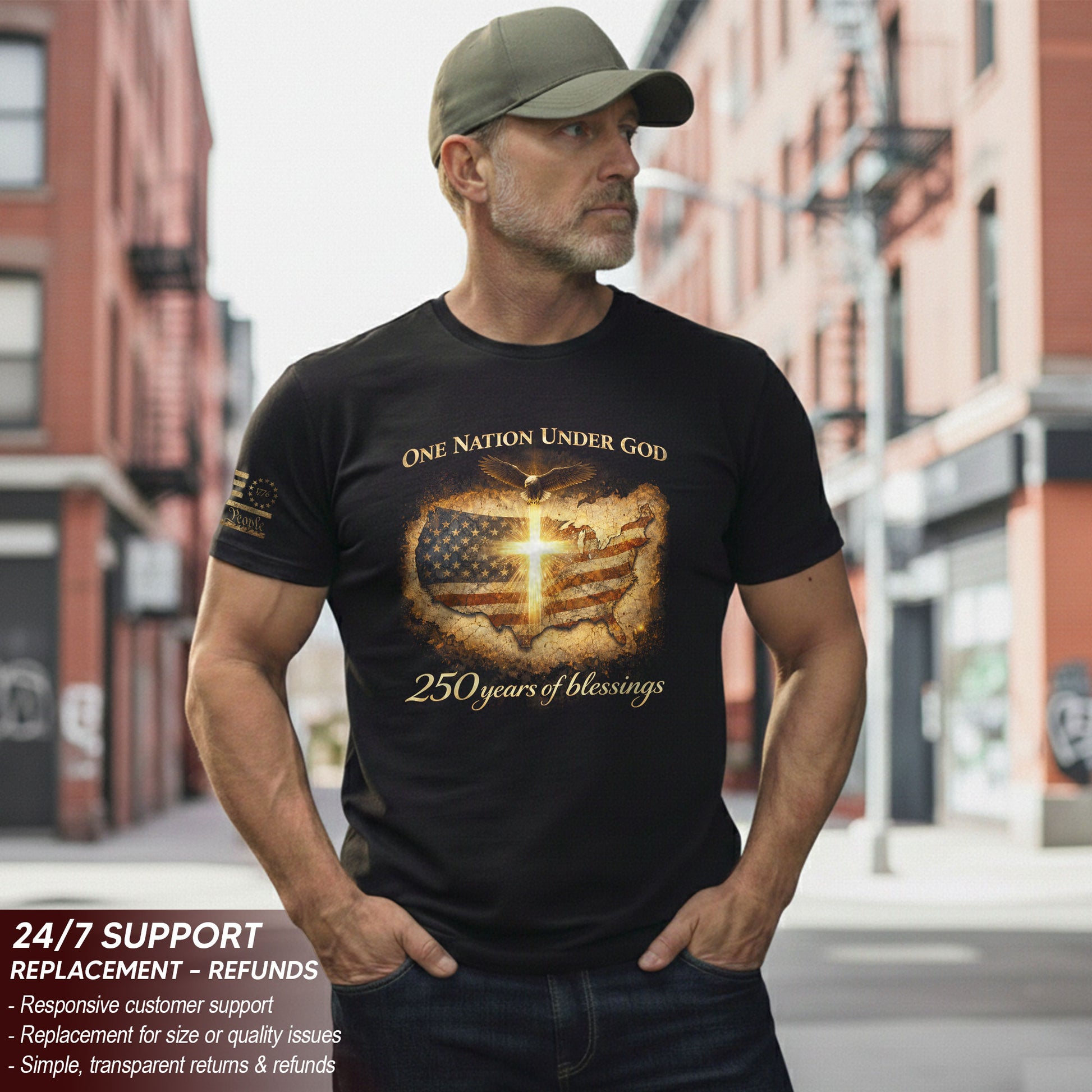 America 250th Anniversary 1776-2026 Shirt – One Nation Under God USA Map & Glowing Cross Semiquincentennial Tee