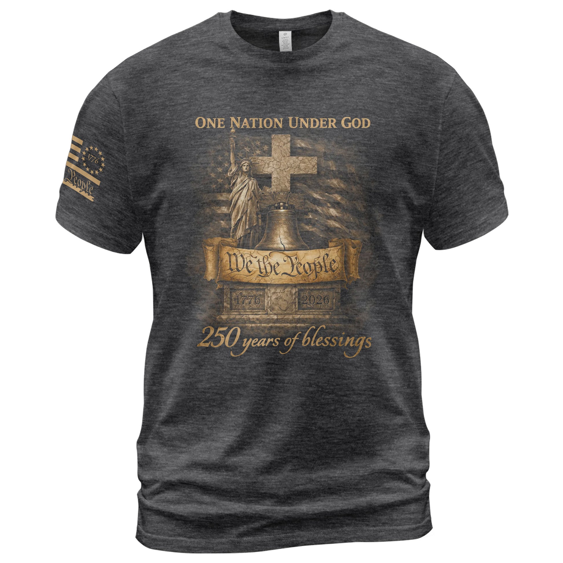 America 250th Anniversary 1776-2026 T-Shirt – 250 Years of Blessings One Nation Under God Semiquincentennial Christian Patriotic Tee