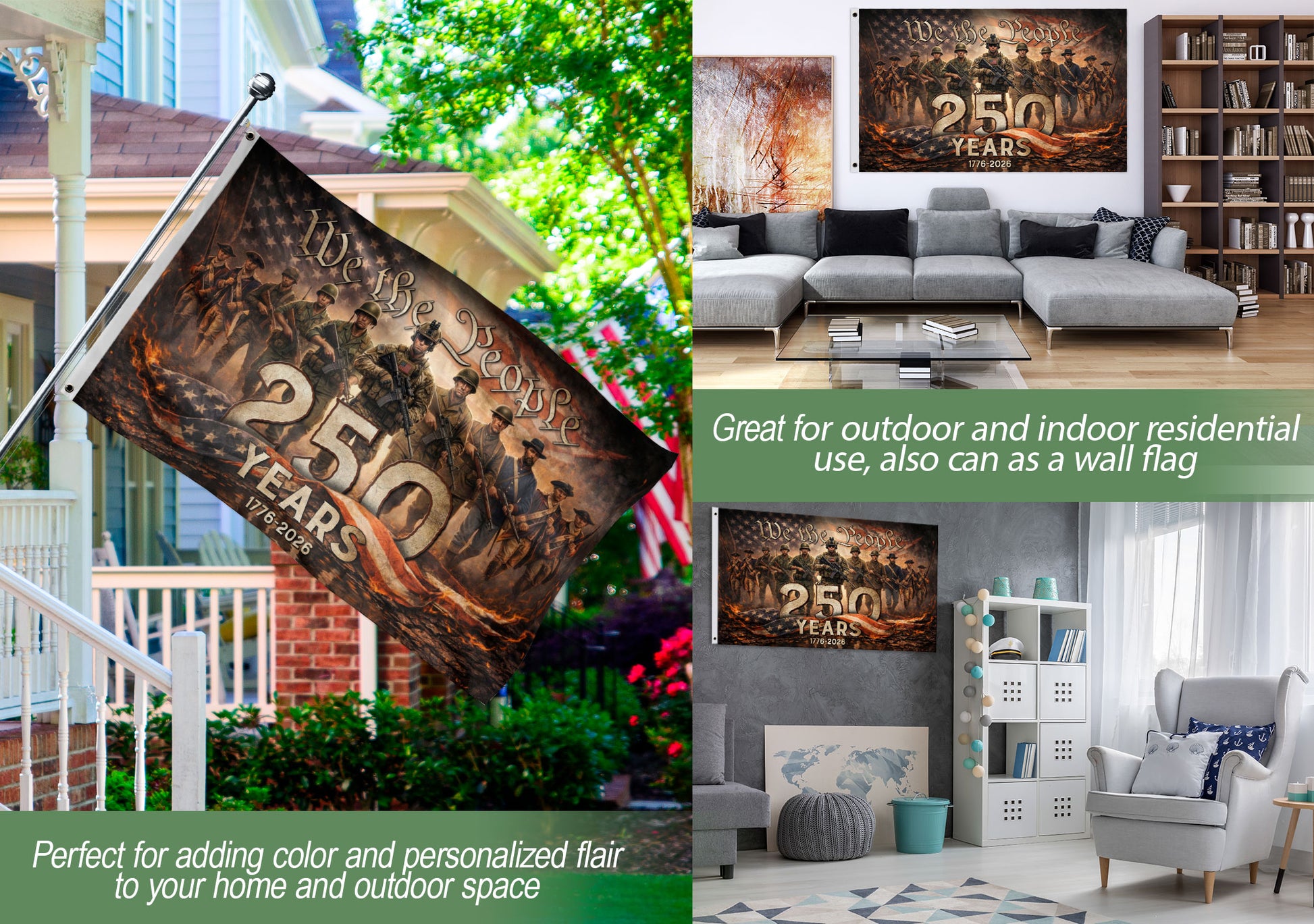 American 250th Anniversary Garden Flag 250 Years Semiquincentennial 1776-2026 We The People Patriotic Past Present Soldiers