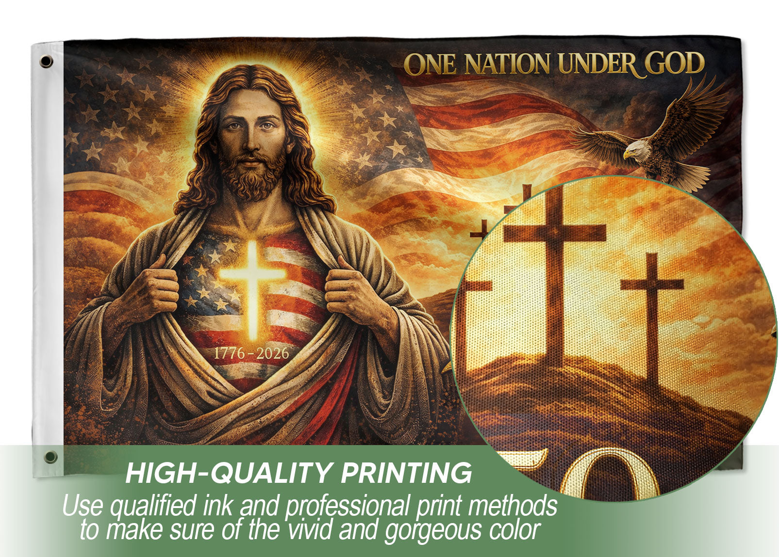 Christian American Heritage 250th Anniversary Flag - Jesus, Eagle, Liberty Bell & Crosses Outdoor Banner