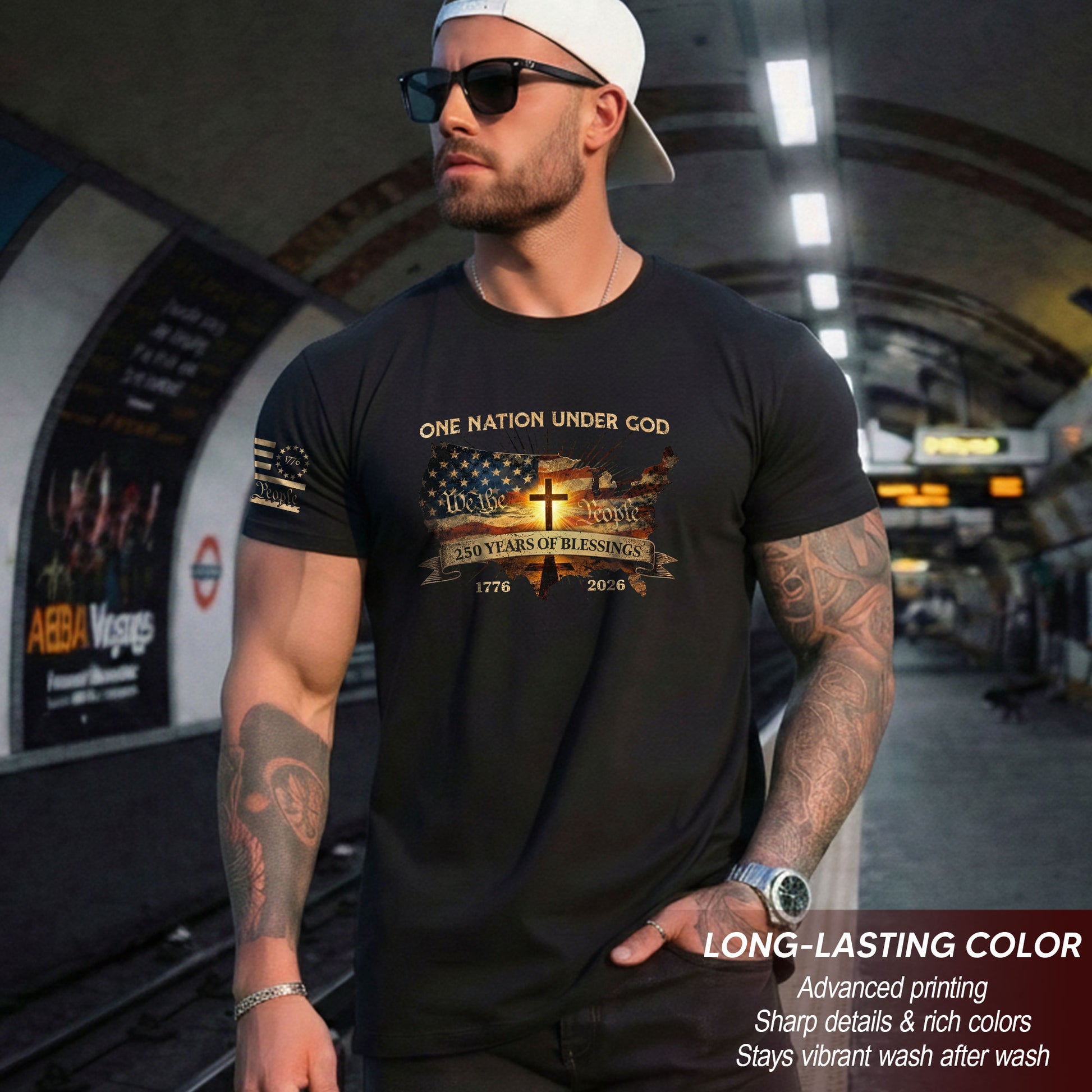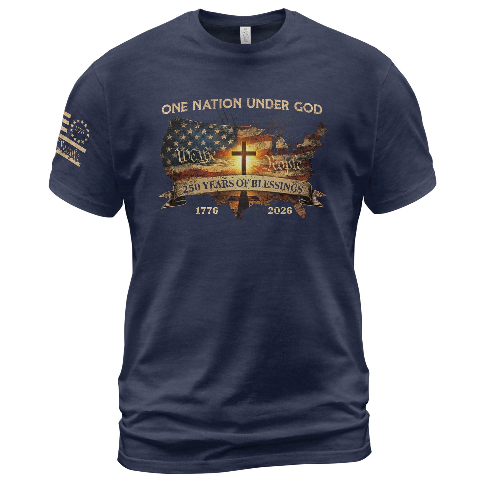 Christian Patriot 250 Years of Blessings T-Shirt - Holy Bible, "We the People" & US Flag Design