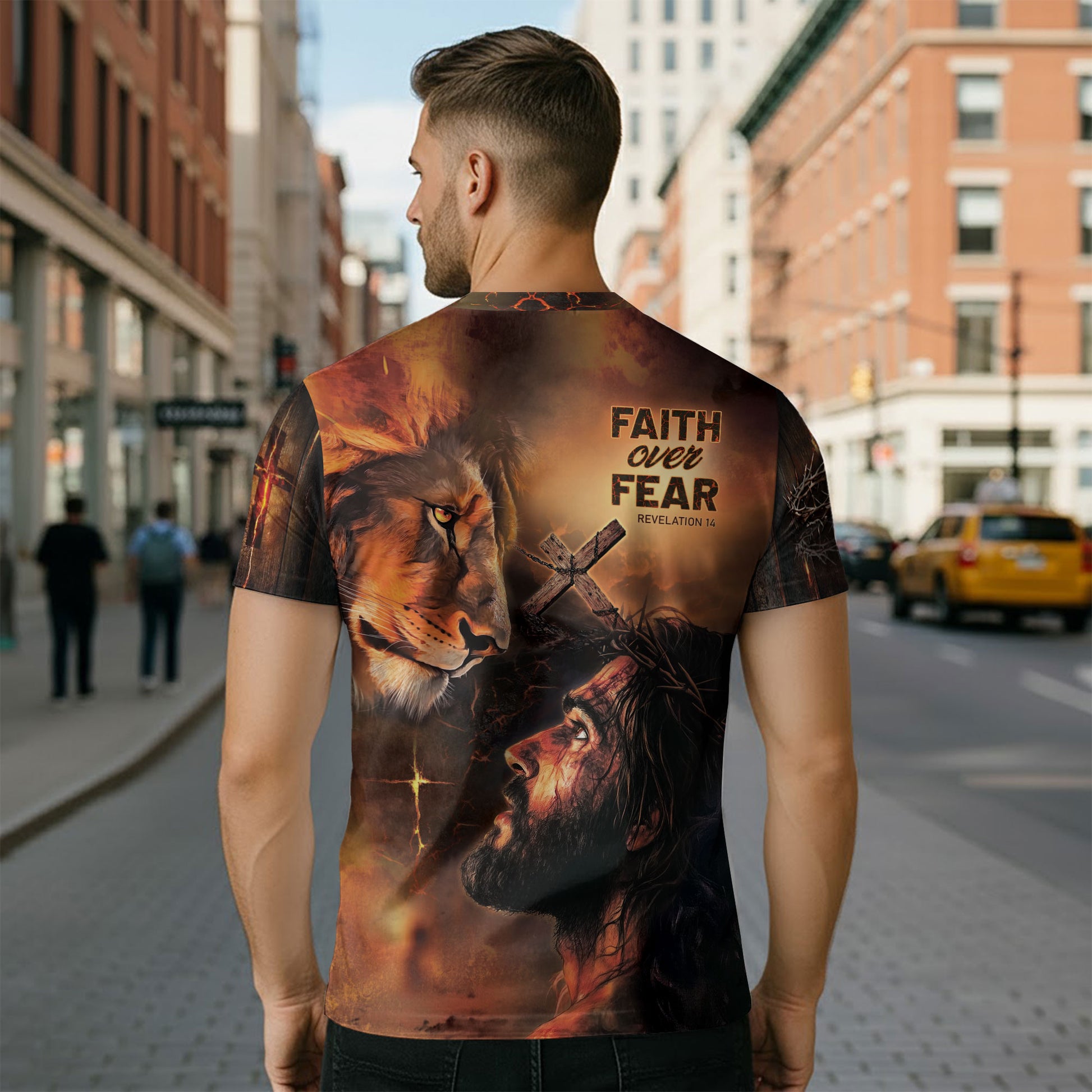 Faith Over Fear Shirt – Jesus, Lion Christian T-Shirt for Bold Believers