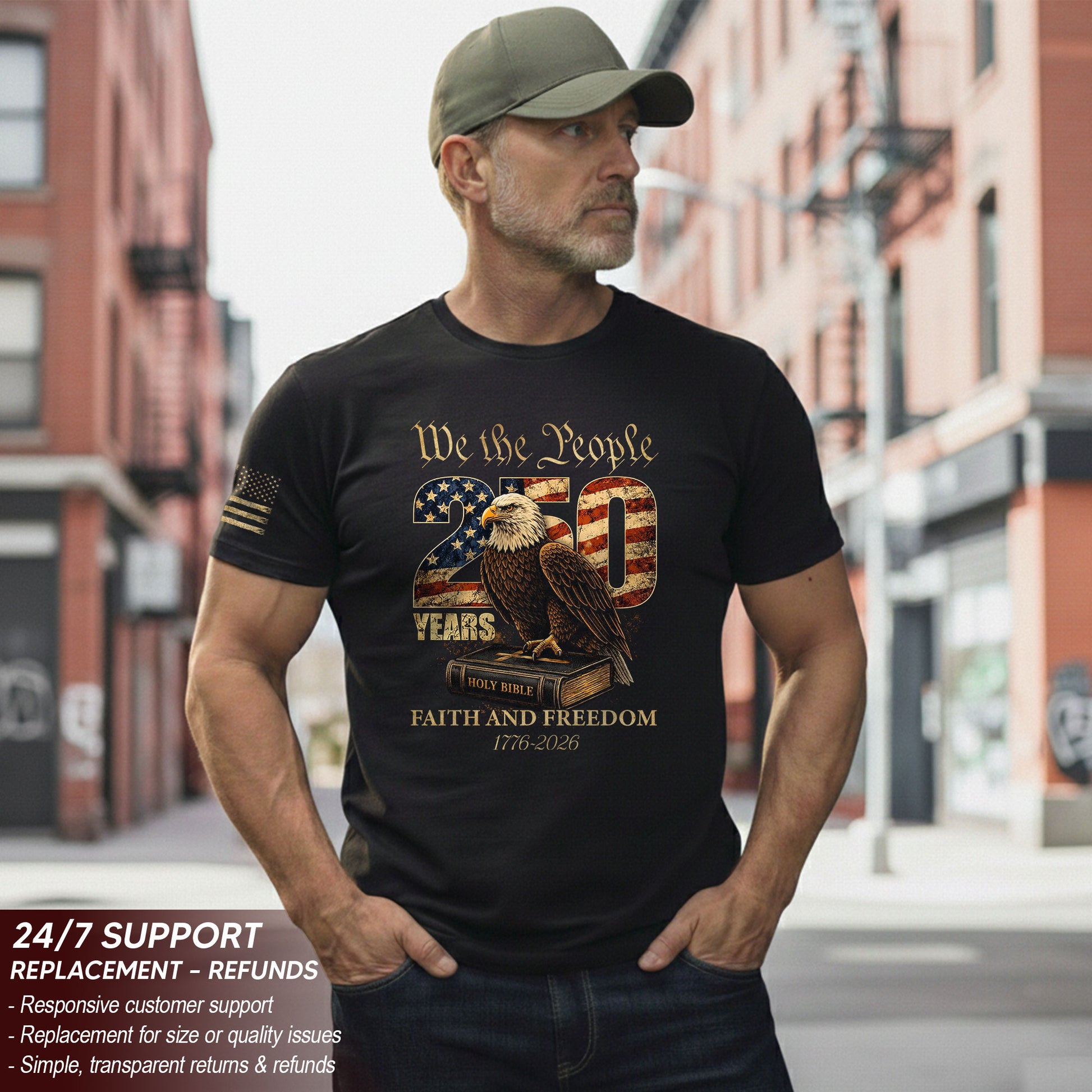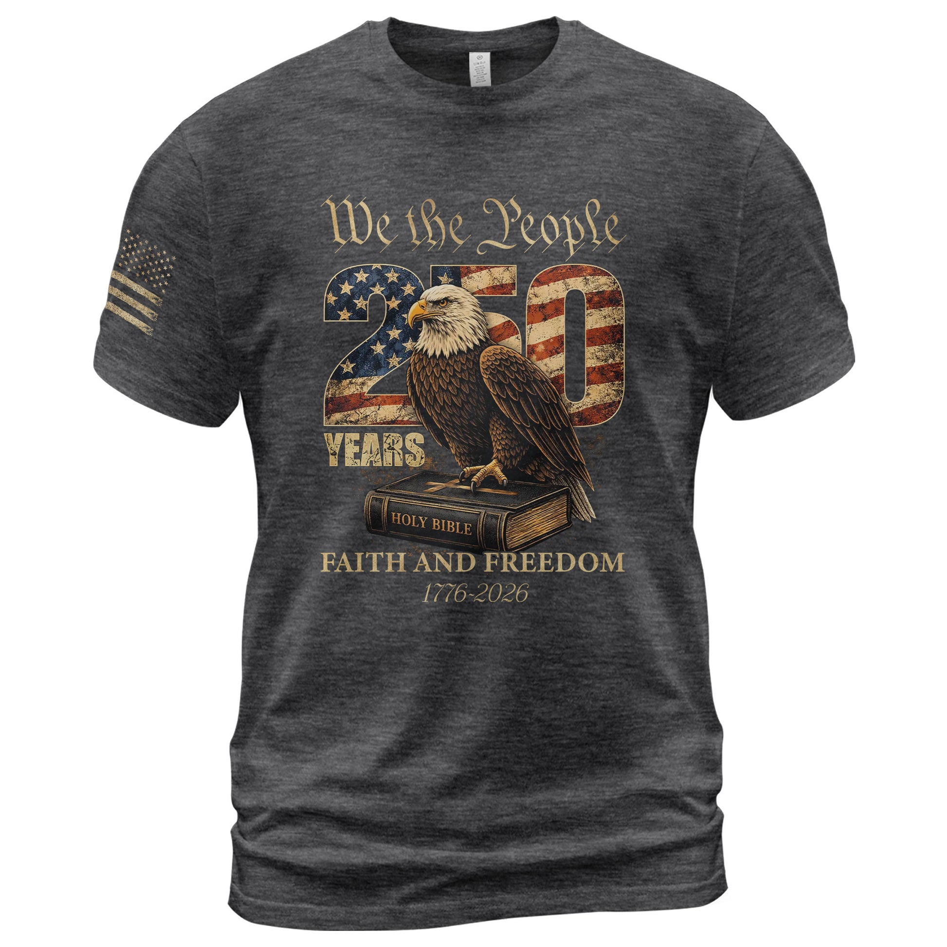 Faith and Freedom 250 Years Celebration Shirt - Patriotic We the People Eagle & Holy Bible Graphic Tee