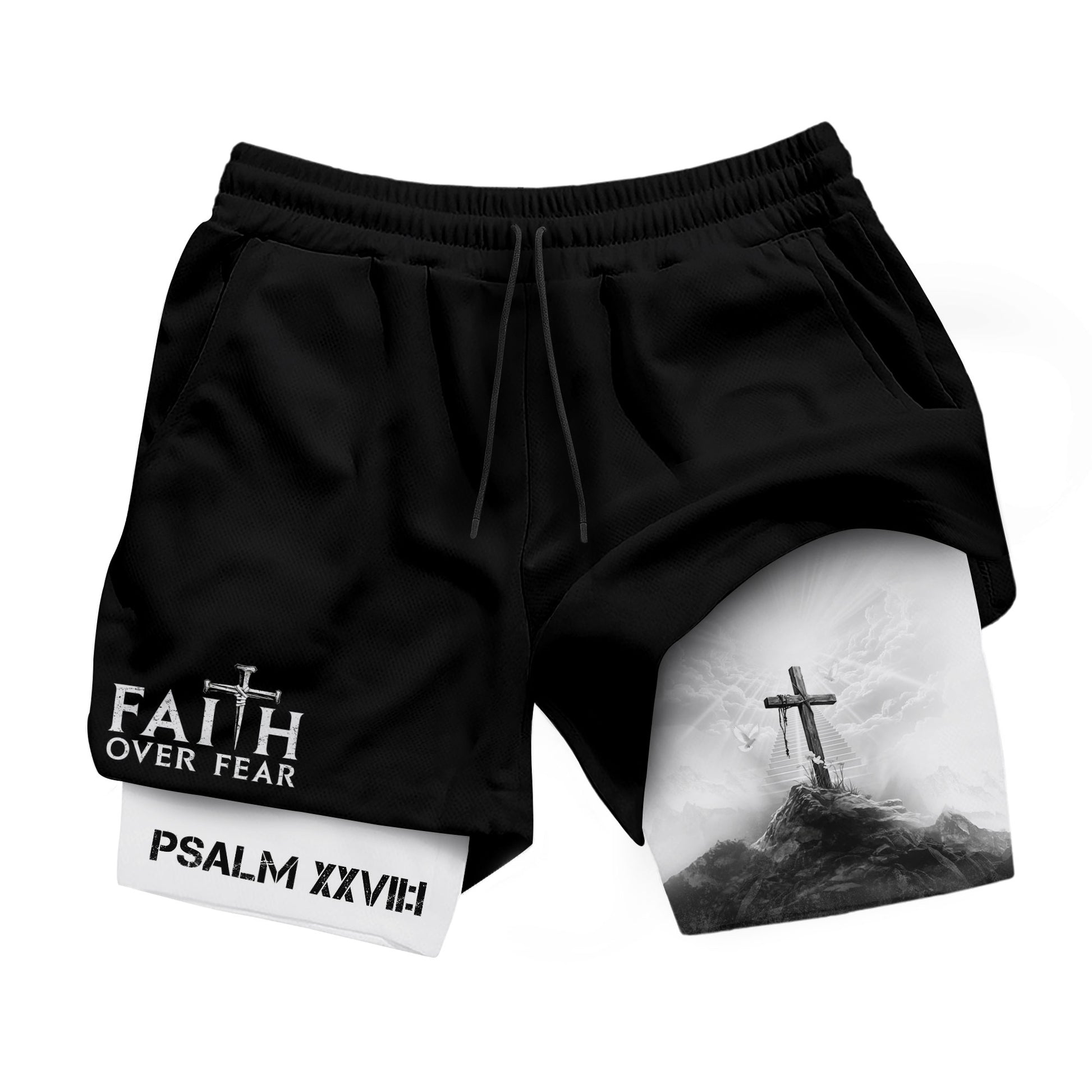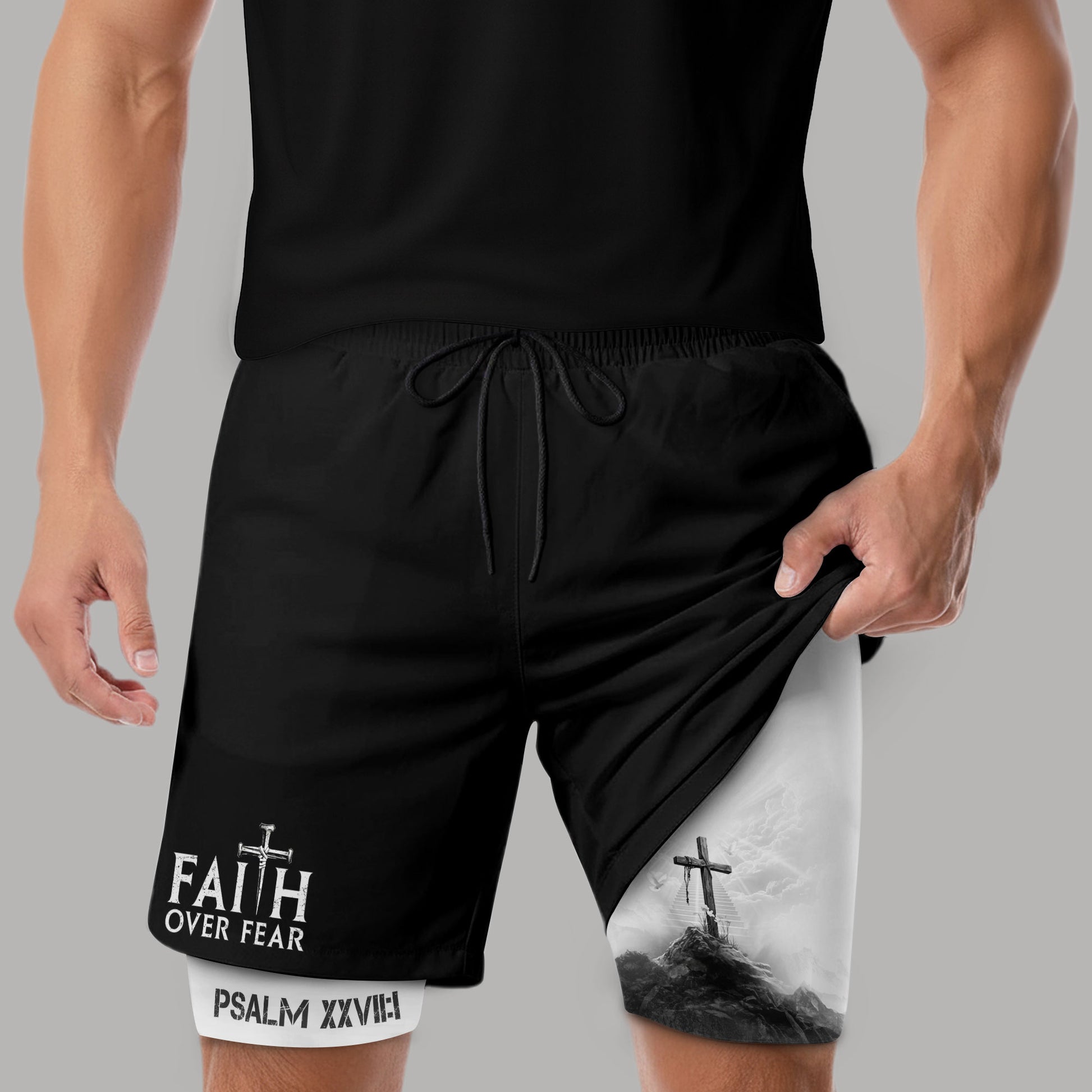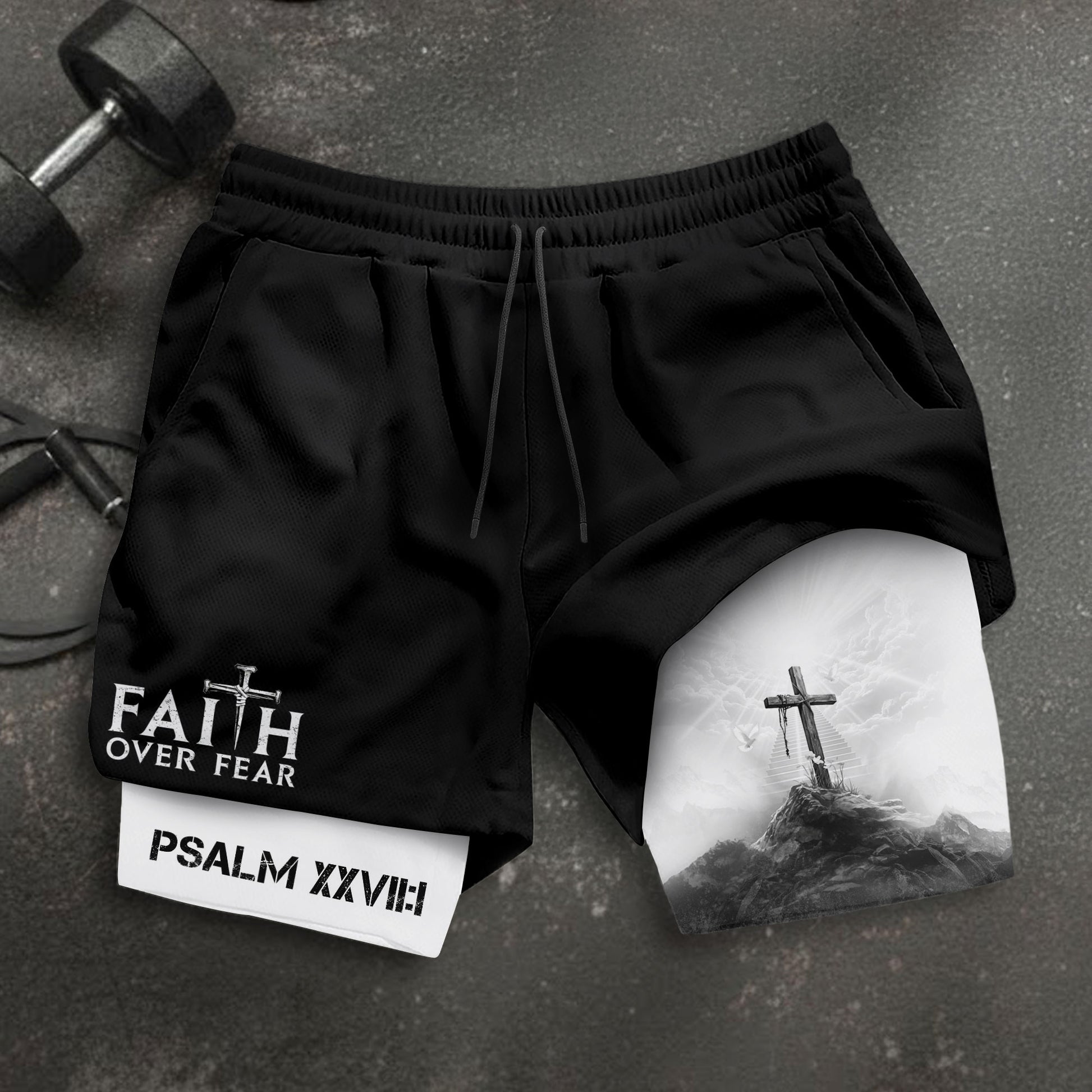 Faith Over Fear Christian Gym Shorts for Men Psalms 27:1