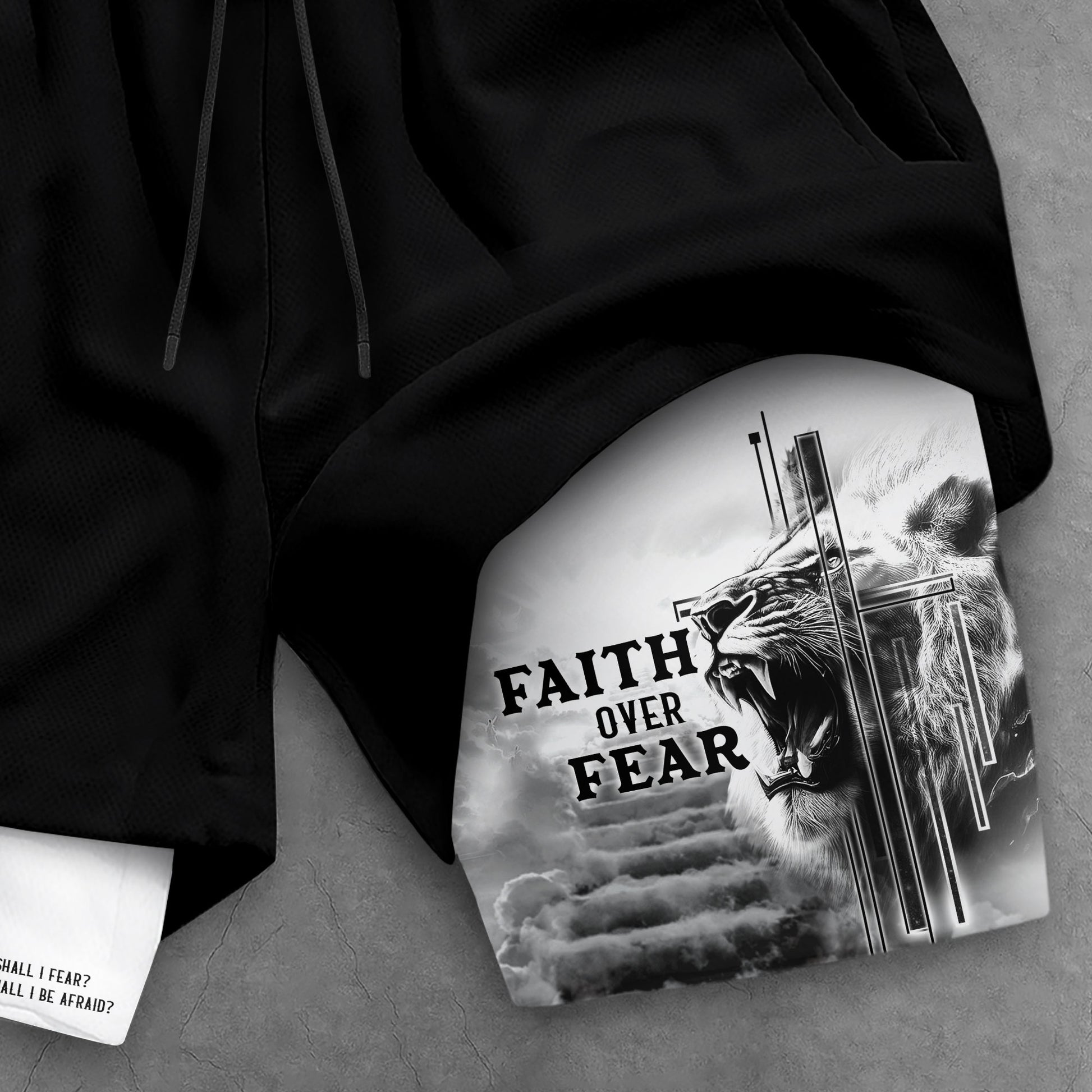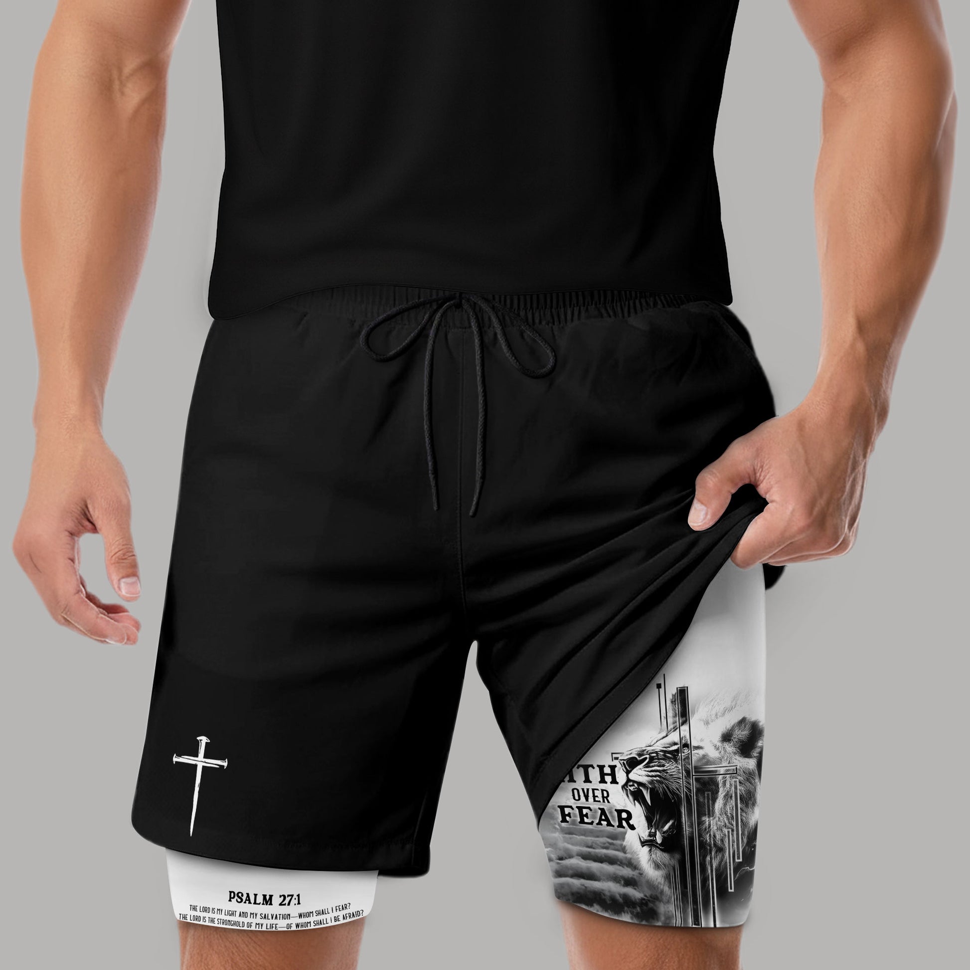 Faith Over Fear Christian Gym Shorts Psalm 27 1 Lion Cross