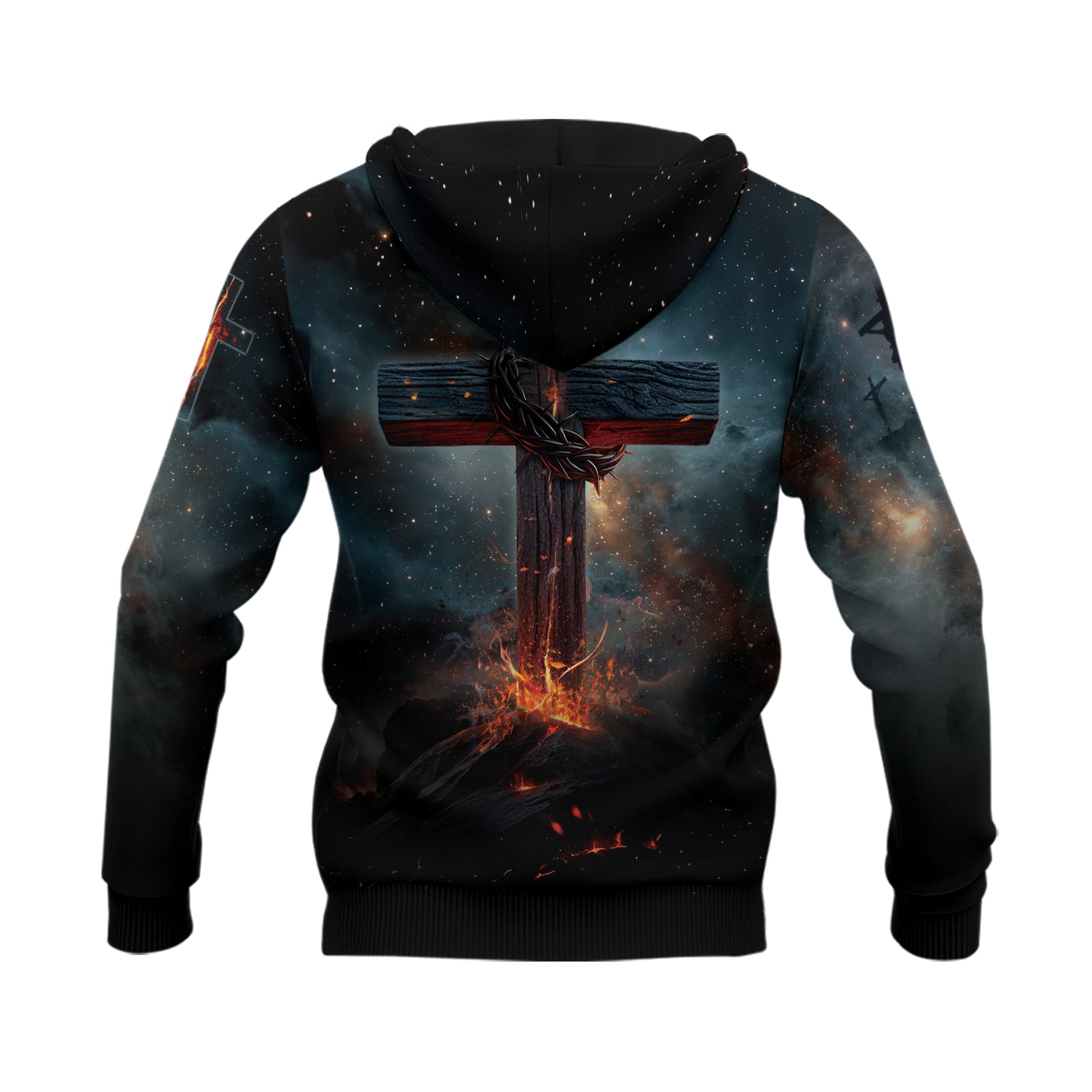 Faith Over Fear Christian Hoodie – Fiery Lion of Judah Cross Design