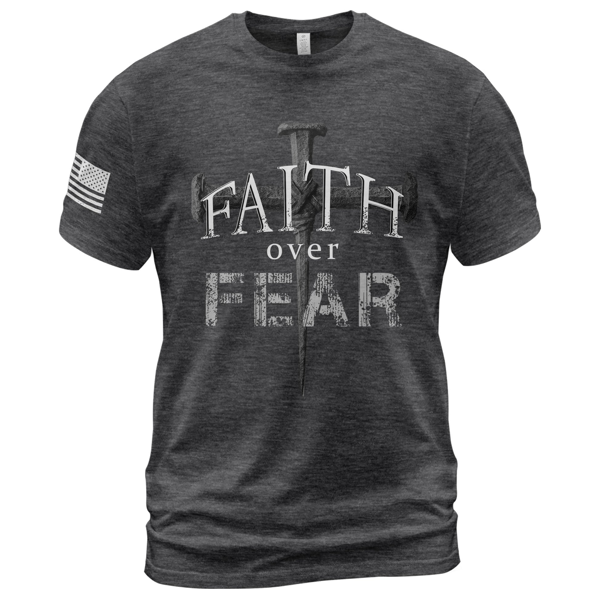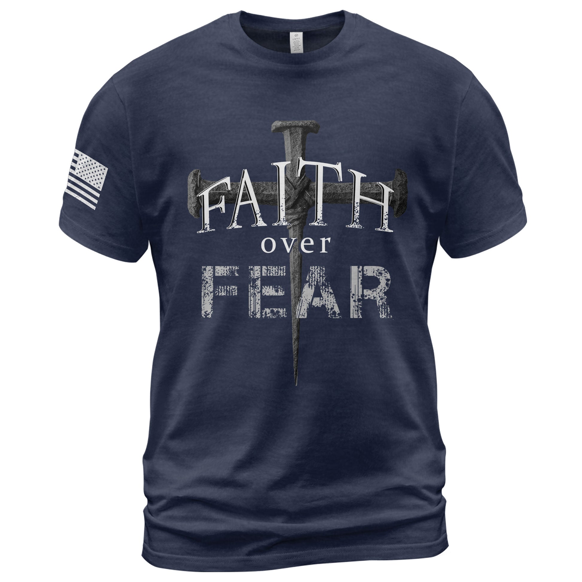 Faith Over Fear Christian Nail Cross Patriotic Religious Jesus Shirt