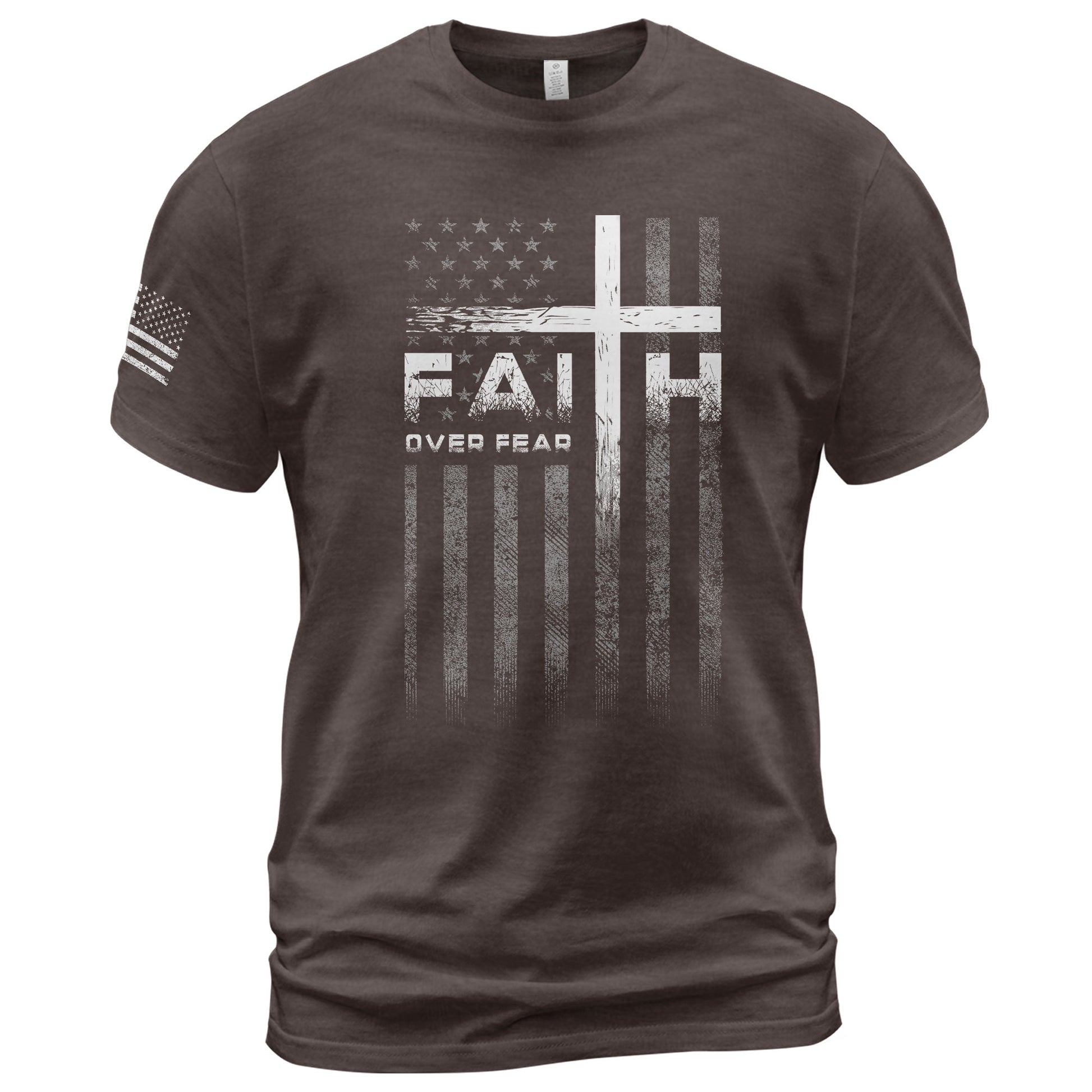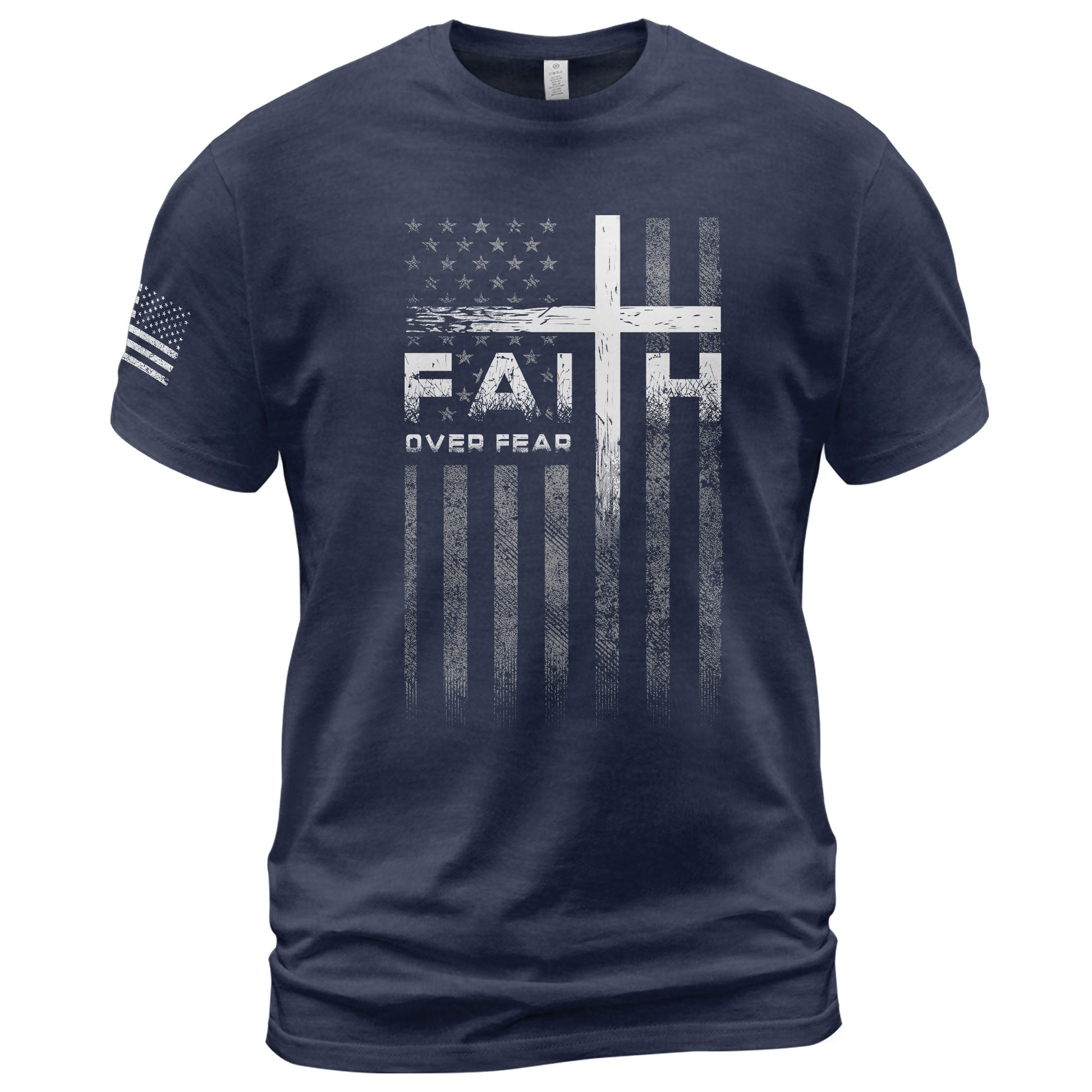 Faith Over Fear Christian T-Shirt Cross American Flag Design