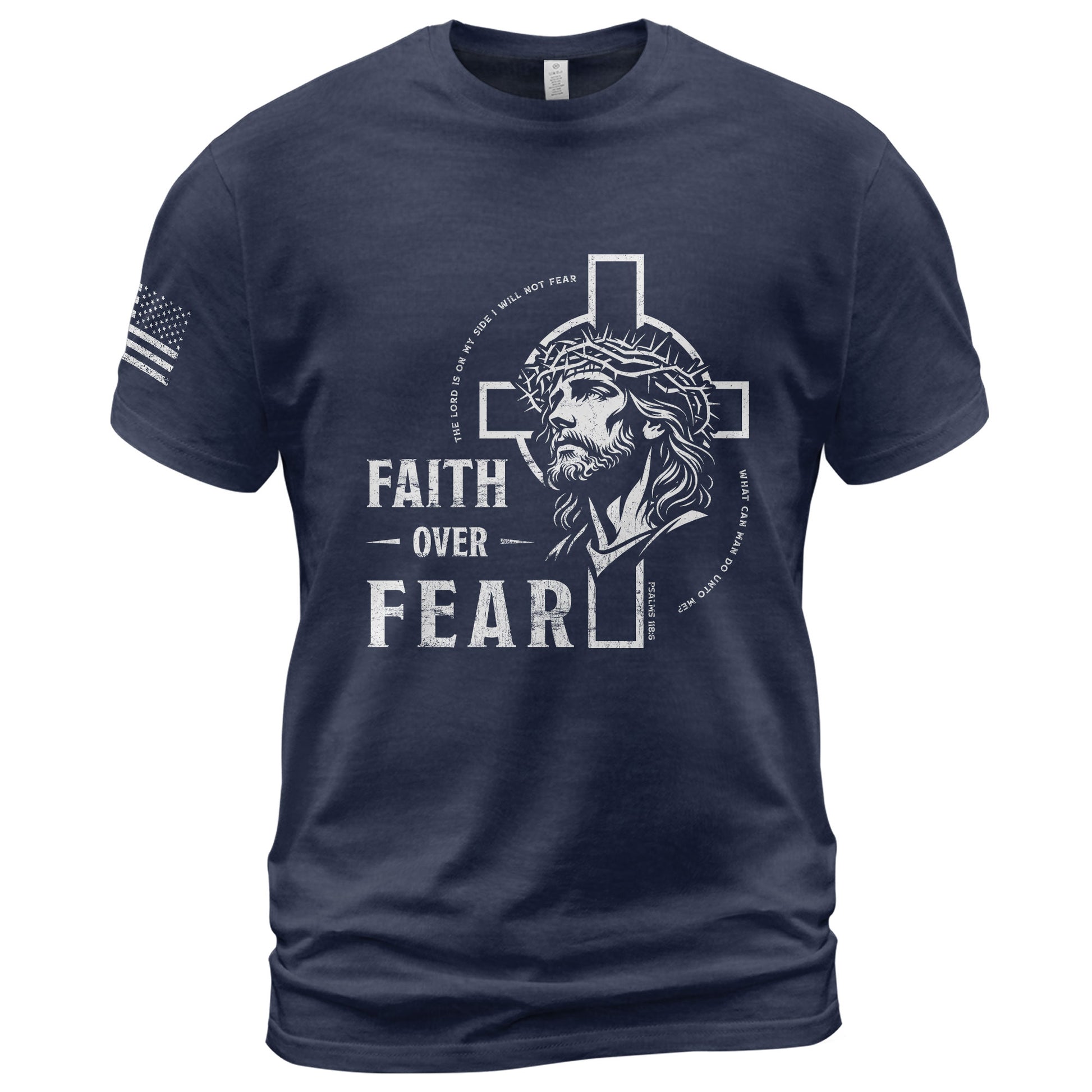 Faith Over Fear Christian T-Shirt Jesus Cross Crown of Thorns Design