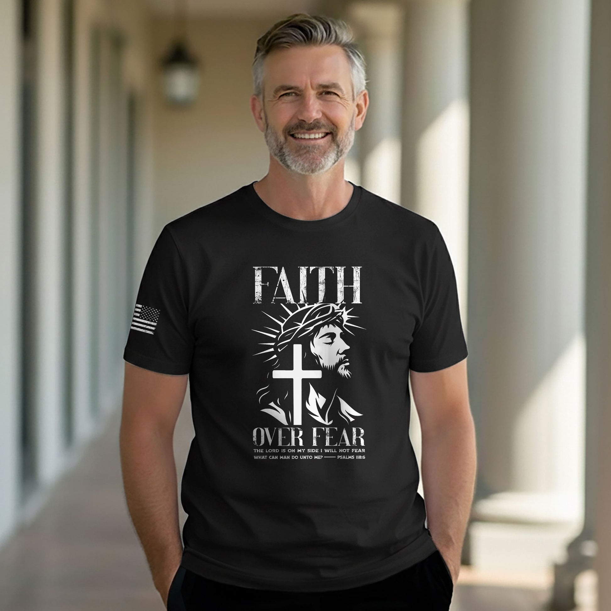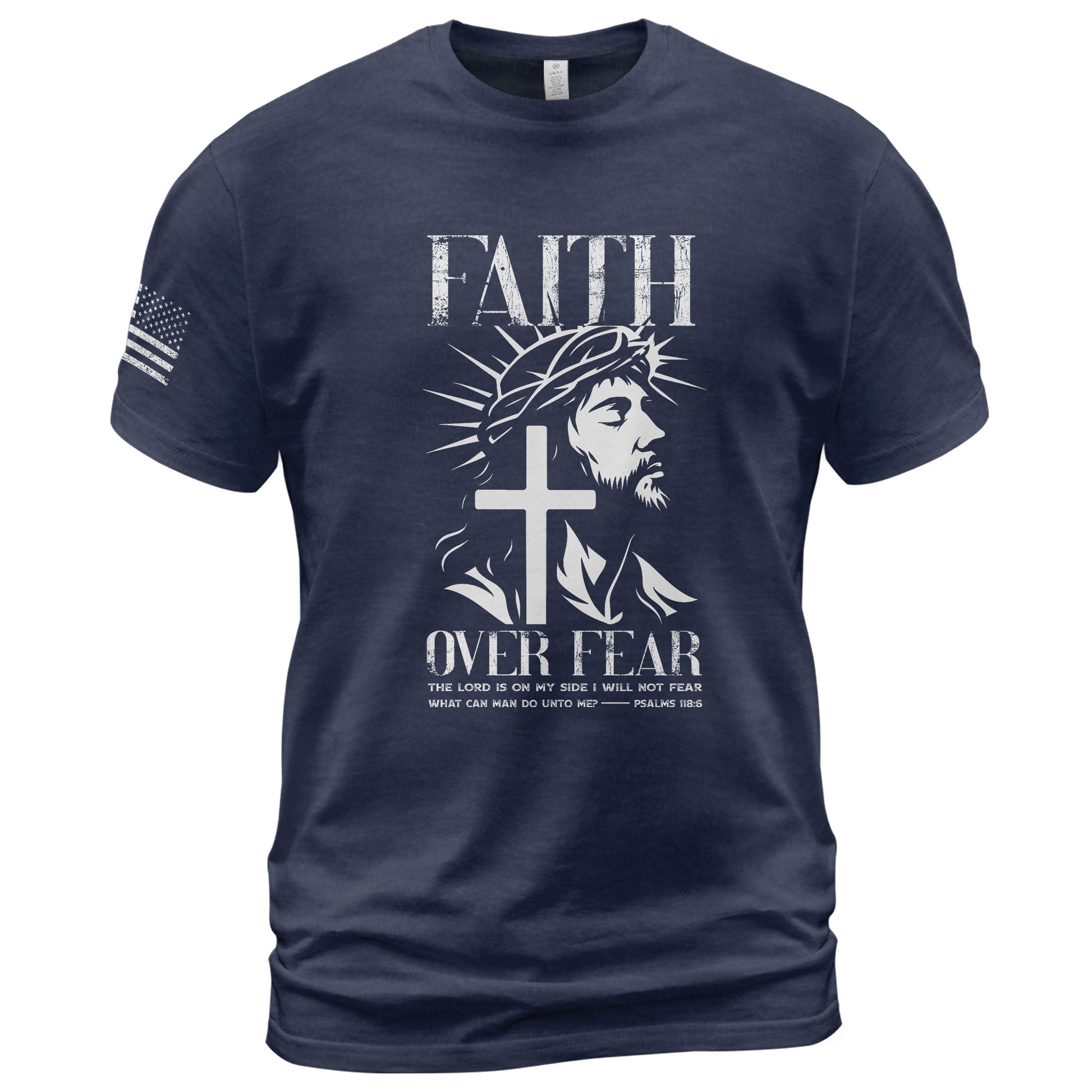 Faith Over Fear Christian T-Shirt Jesus Cross Psalms 118 6 Design