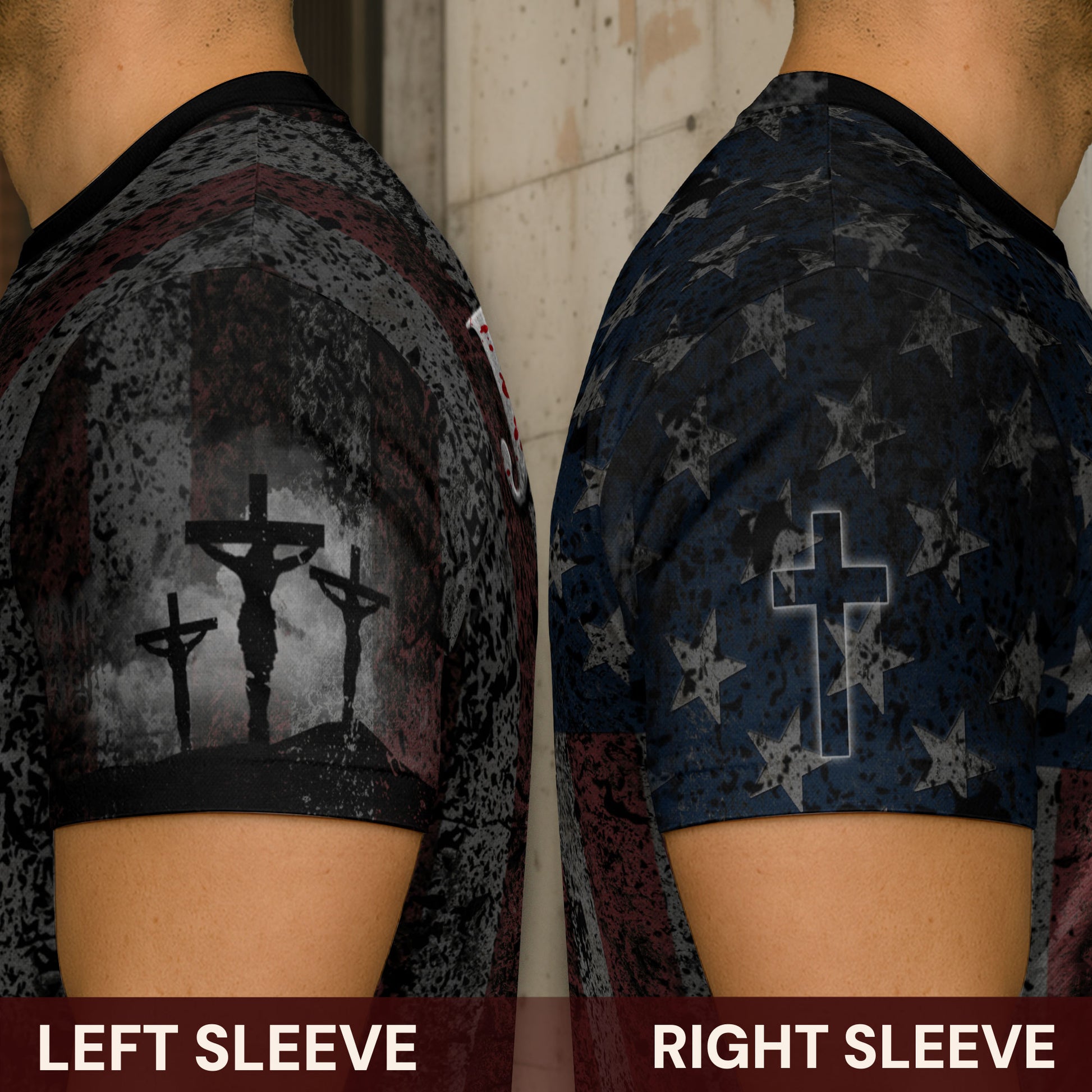 Featuring a classic round neck, short sleeves, and full all-over print design with bold Christian messages. Crafted from premium polyester for a soft, breathable, and durable wear that keeps you comfortable all day!