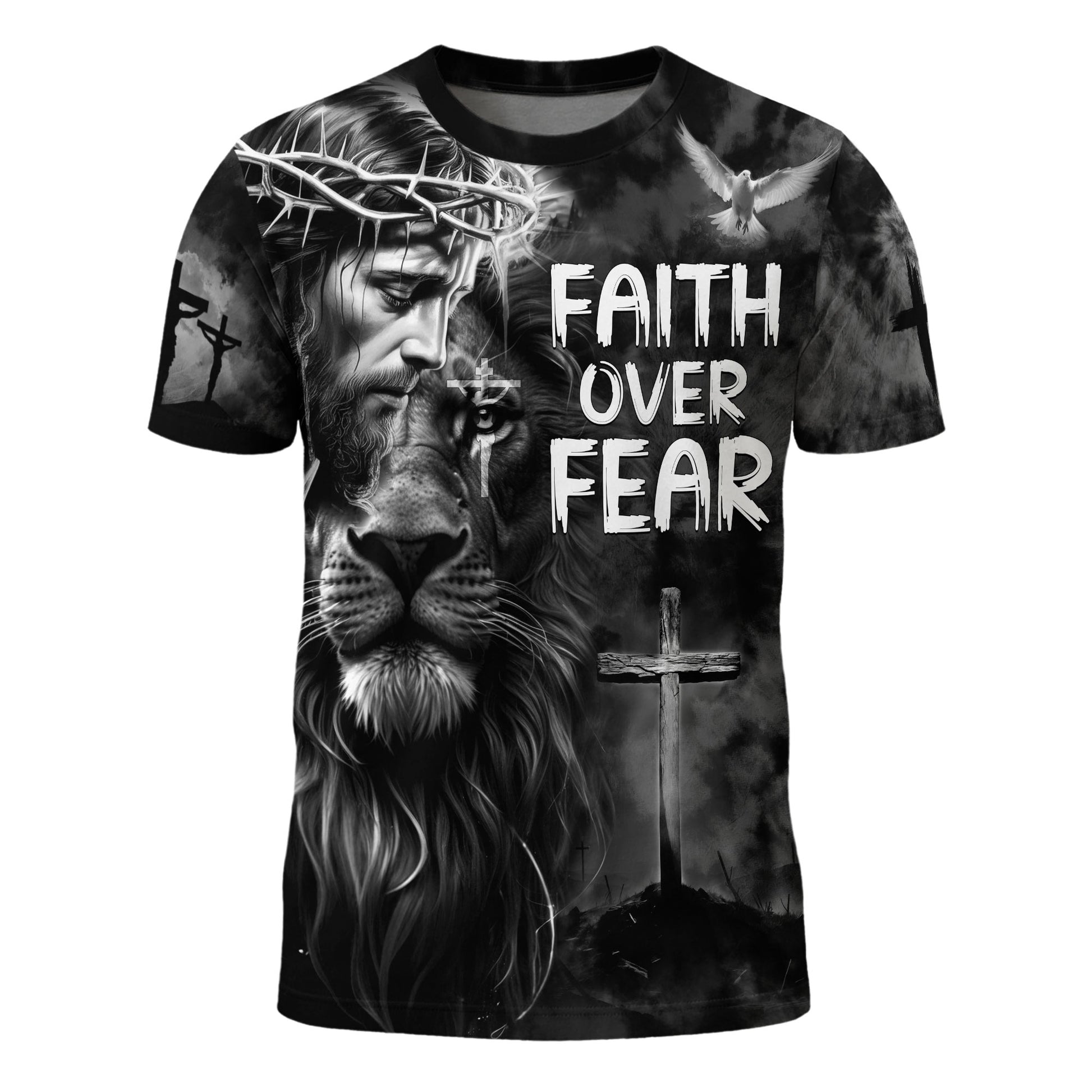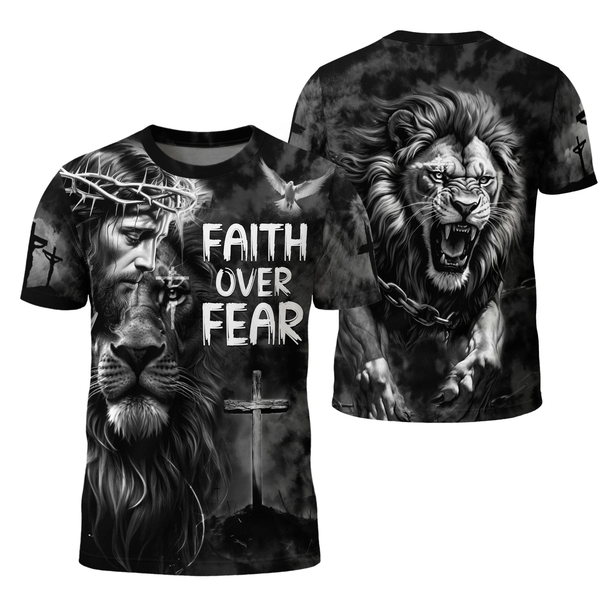 Faith Over Fear Jesus Lion of Judah Cross Christian T-Shirt
