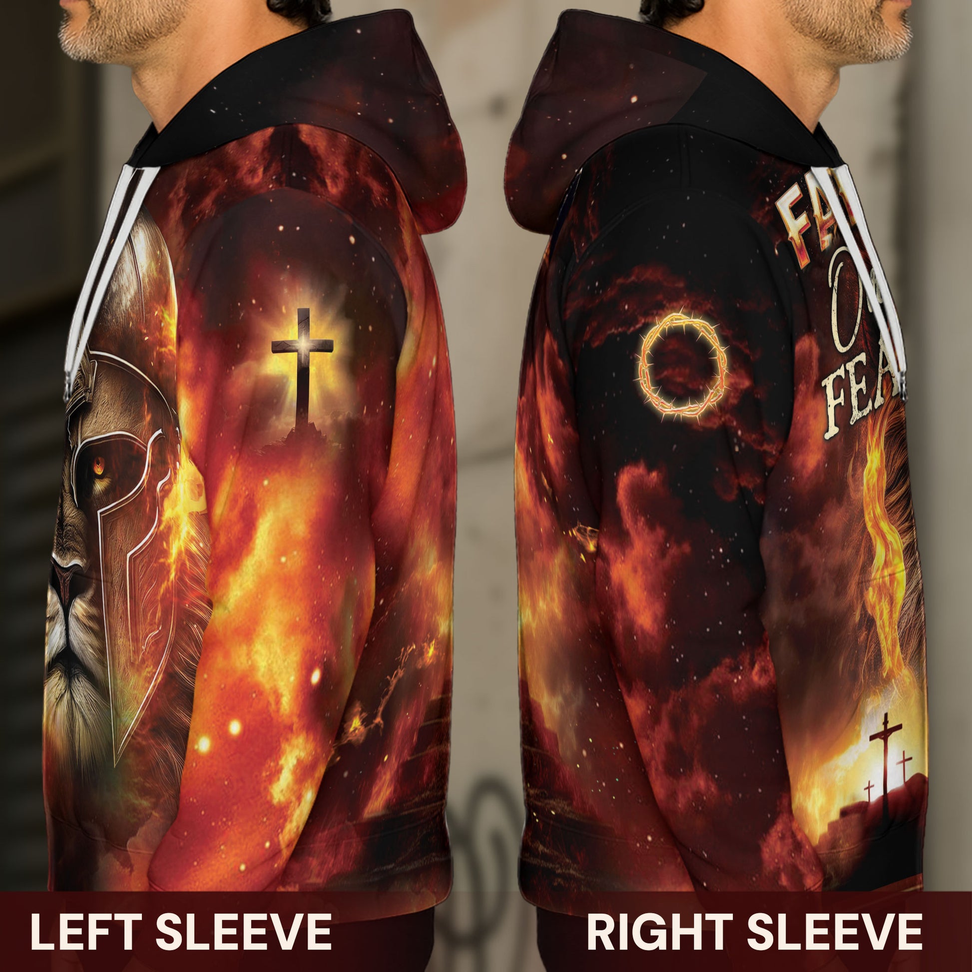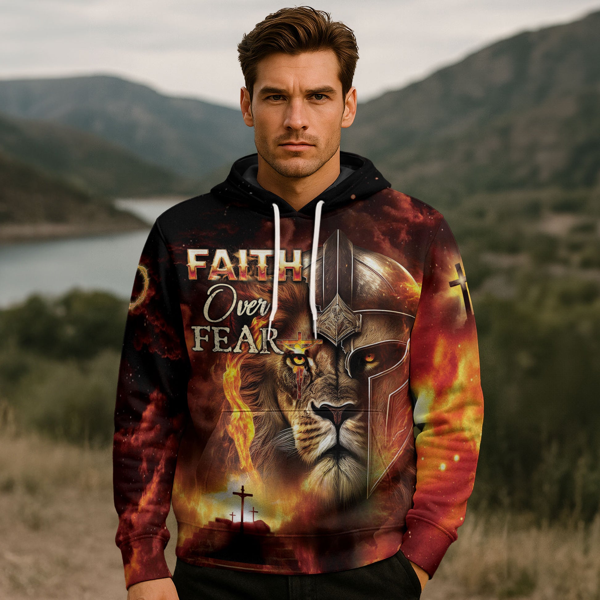 Faith Over Fear Lion Warrior & Cross Christian Hoodie
