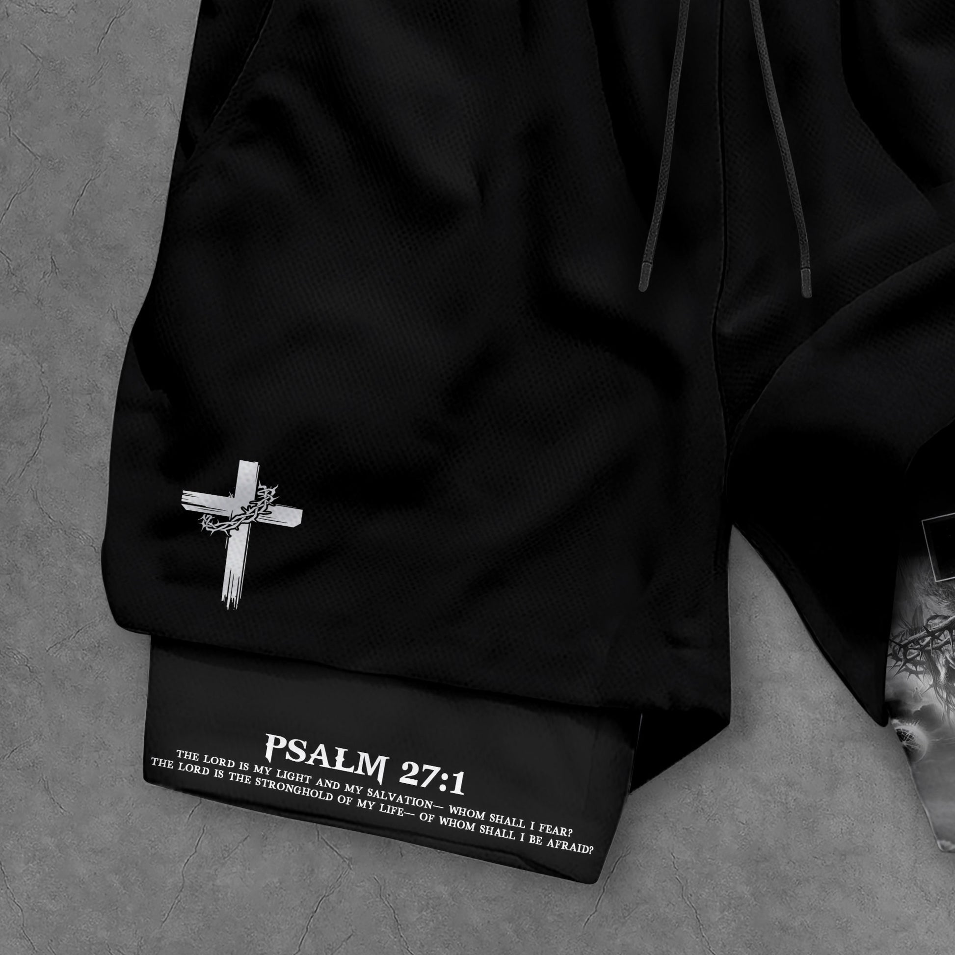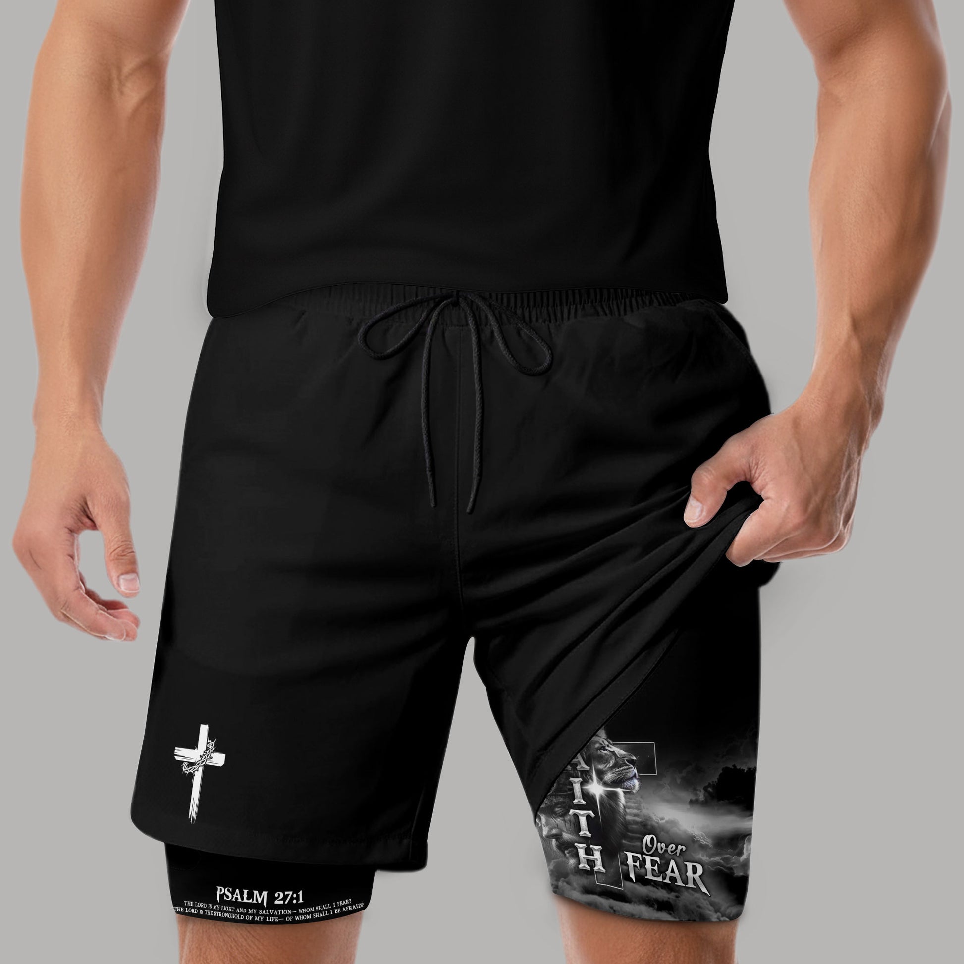Faith Over Fear Psalm 27 1 Lion Cross Christian Gym Shorts for Men
