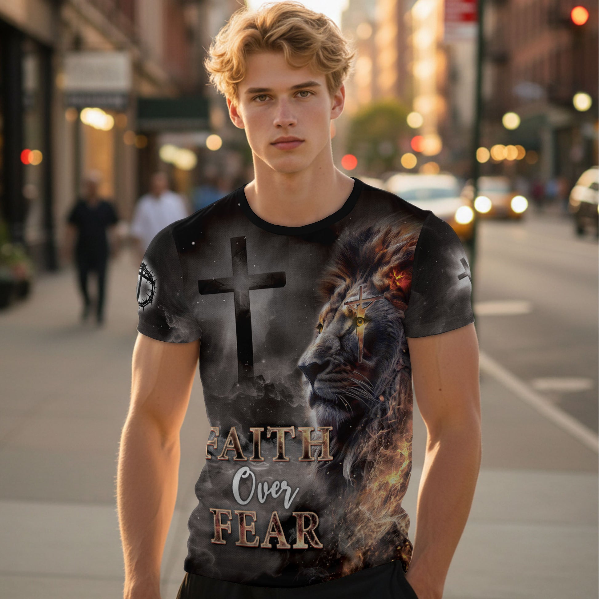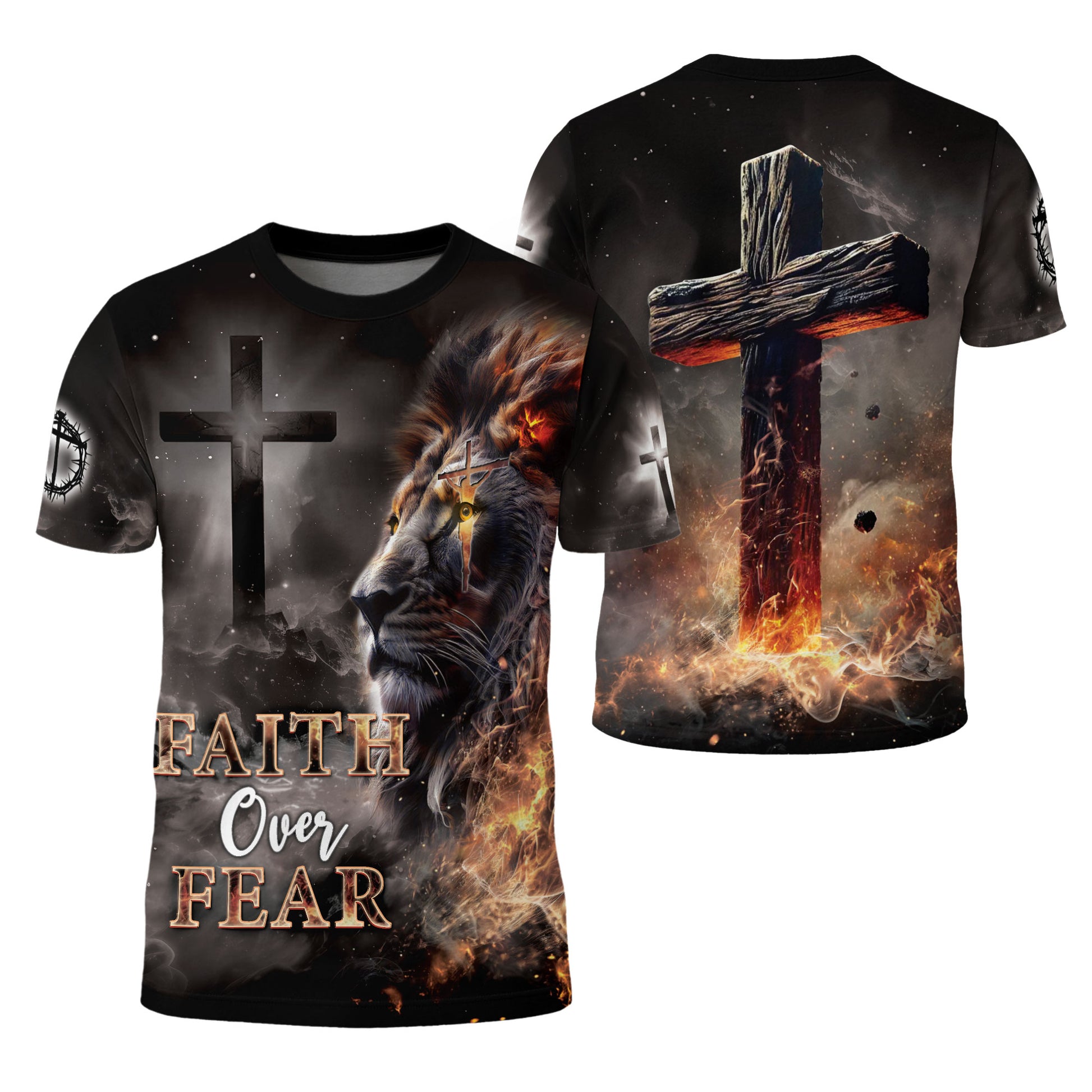 Faith Over Fear T-Shirt – Lion and Cross Full Print Design
