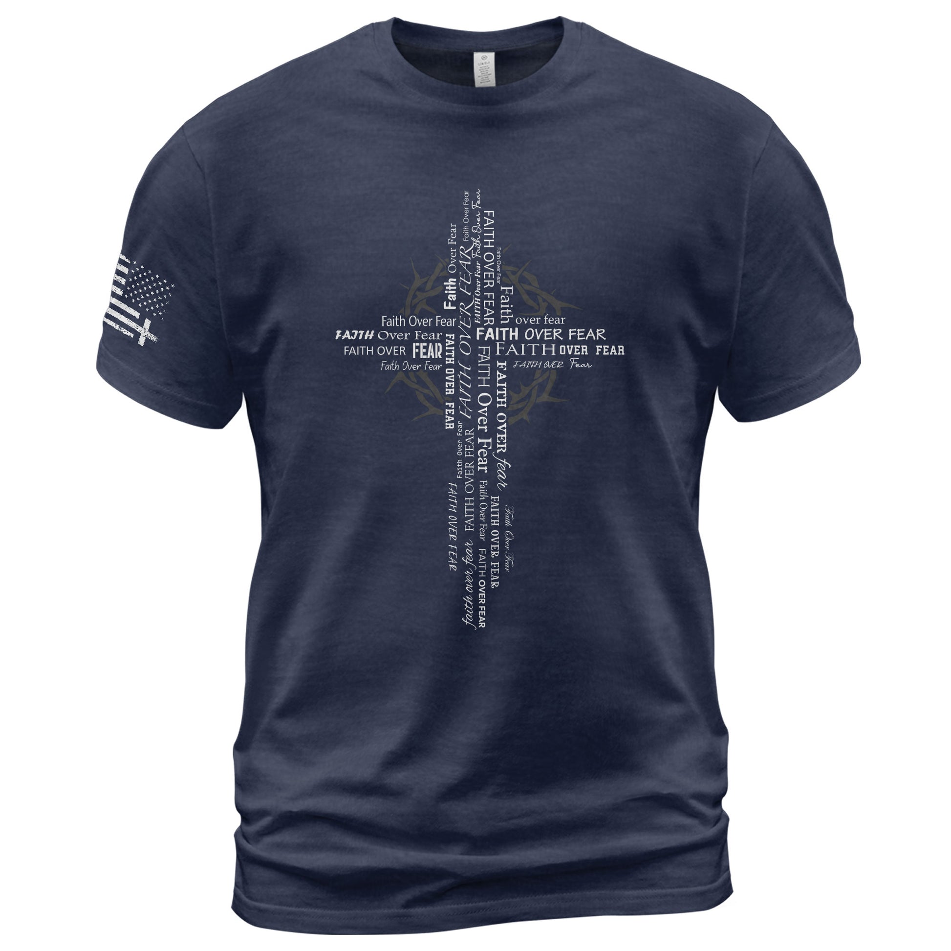 Faith Over Fear Typography Cross Christian T-Shirt