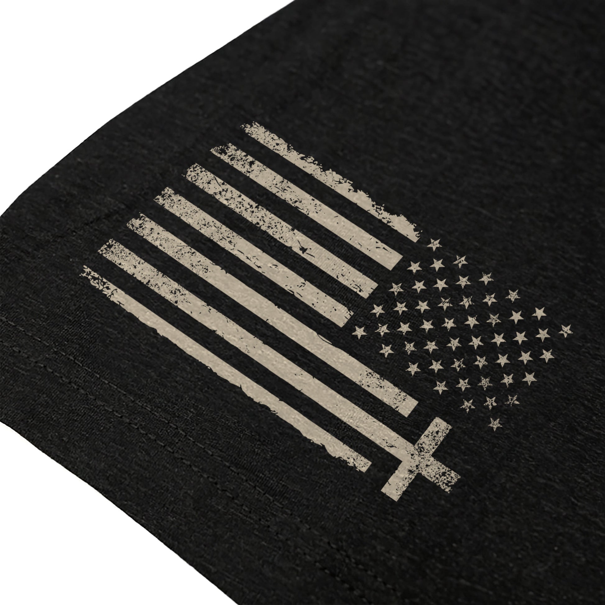 A bold Christian T-Shirt featuring the USA flag cross with Faith Over Fear message. Perfect for believers proud of both faith and country.