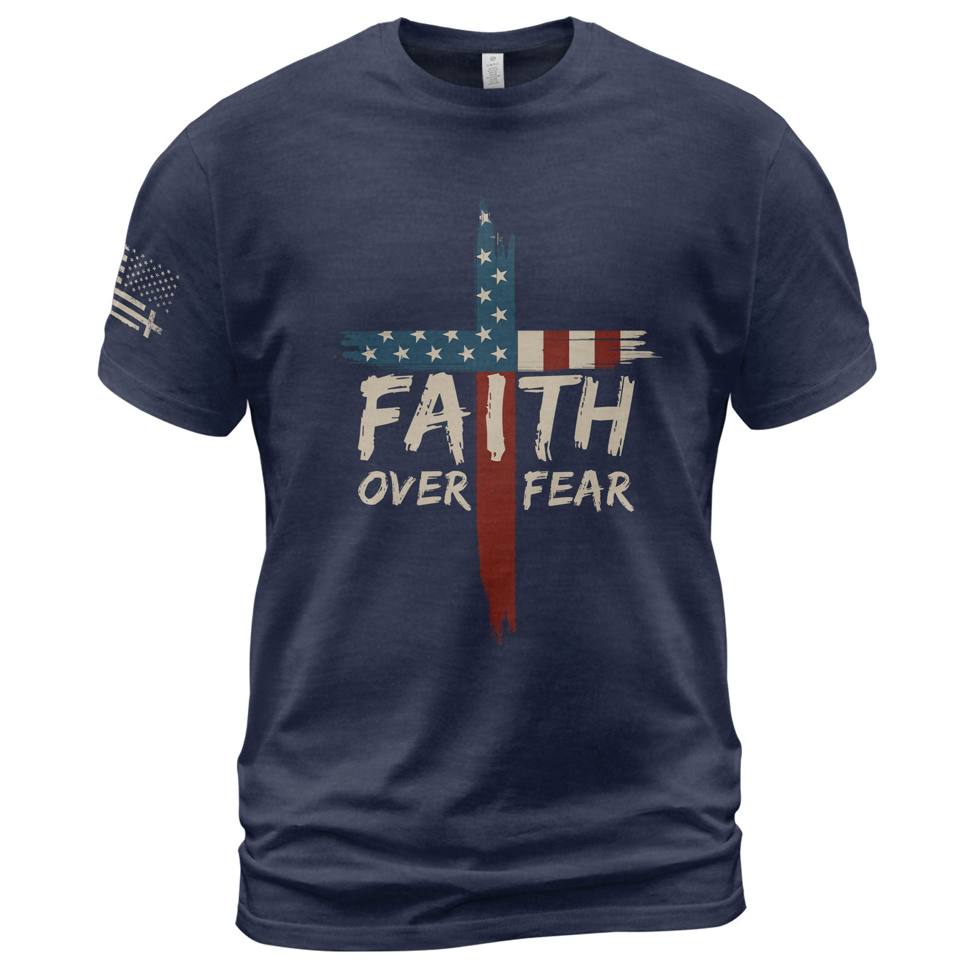Faith Over Fear USA Flag Cross Christian T-Shirt
