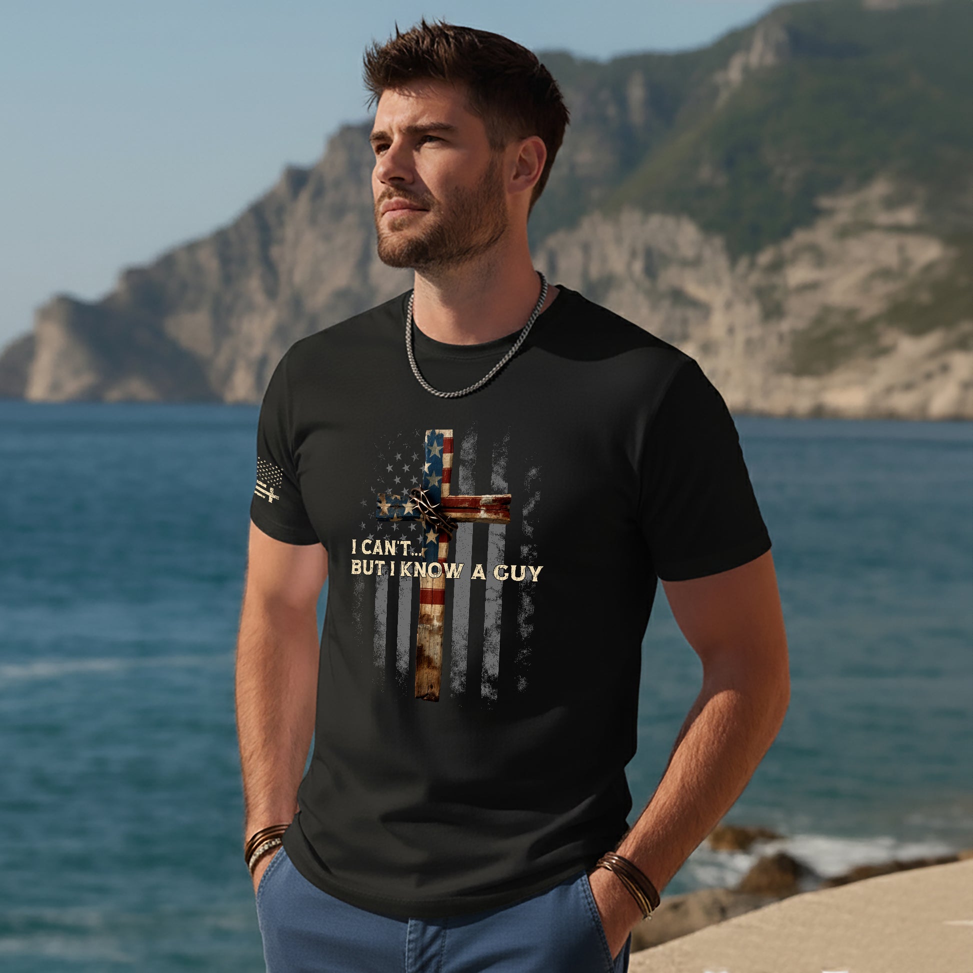 I Can’t But I Know A Guy American Flag Cross T-Shirt