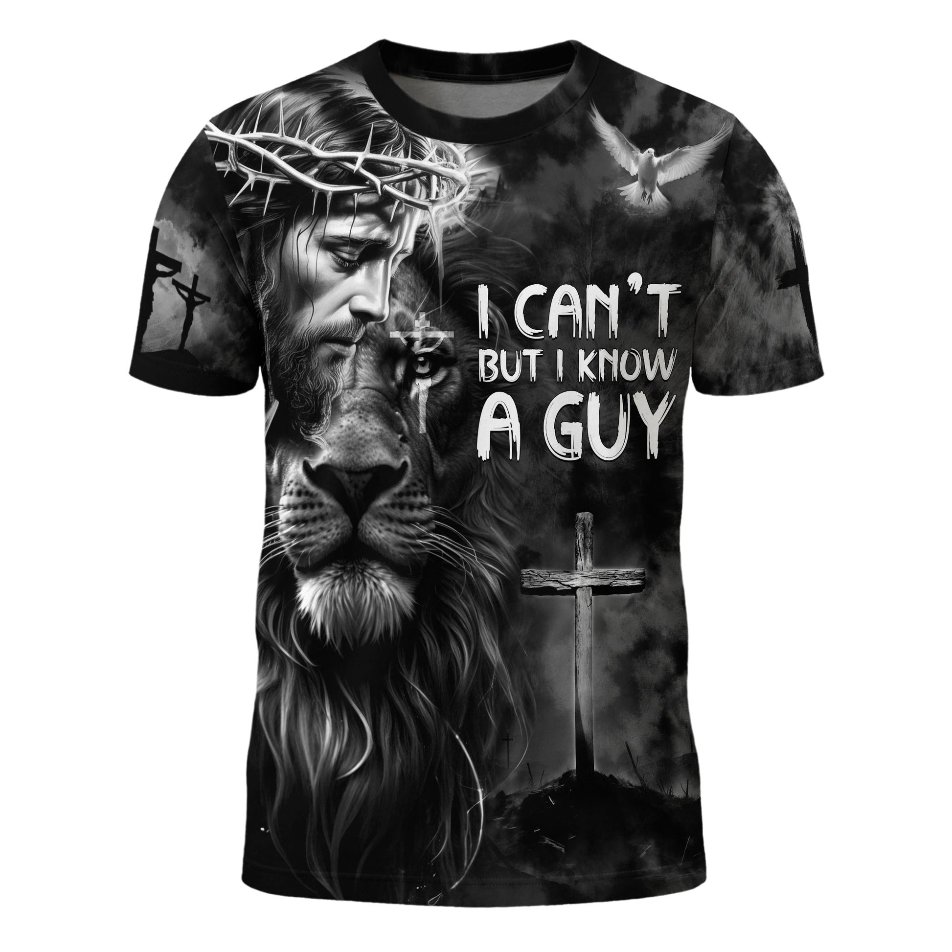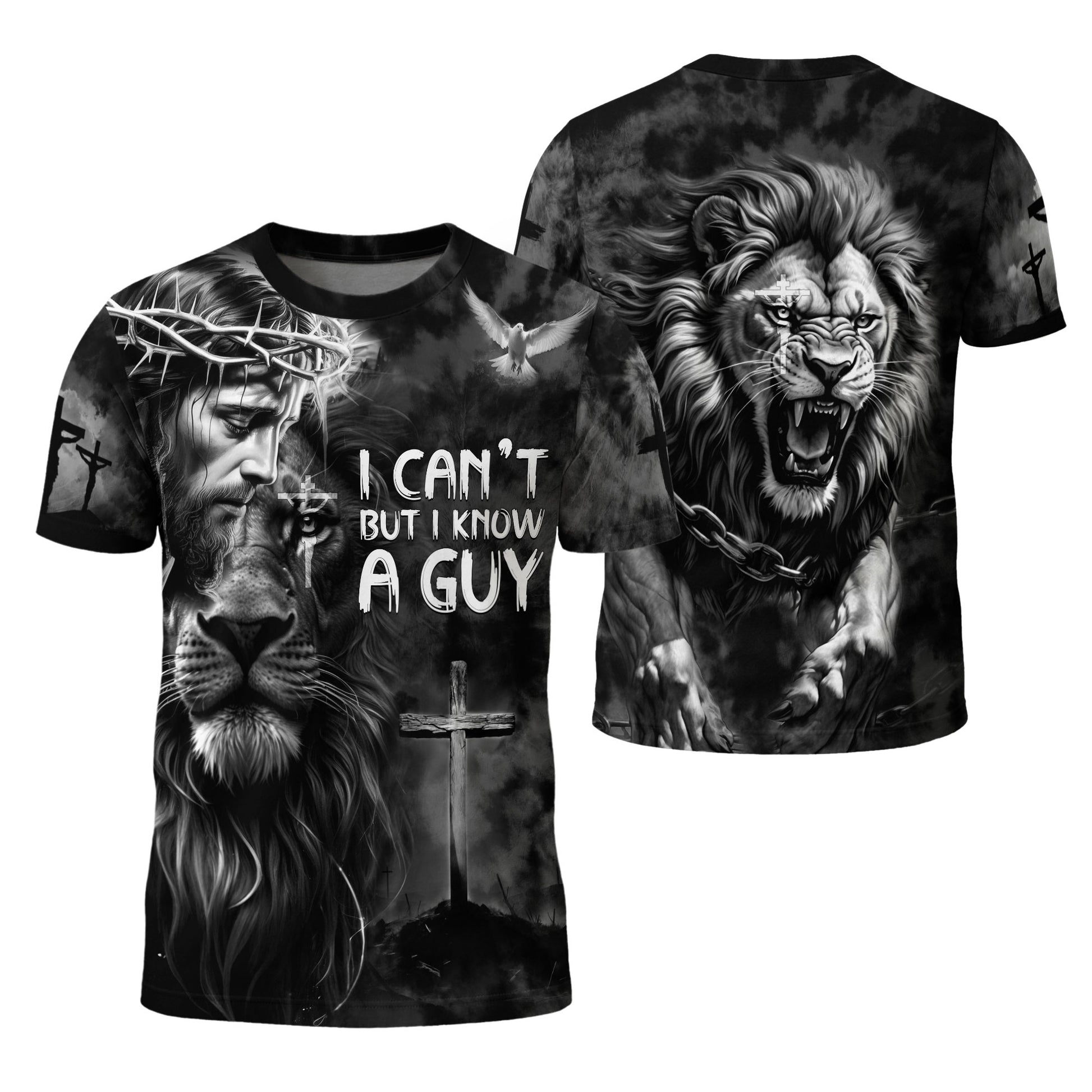 I Can’t But I Know A Guy Jesus Cross Lion Of Judah Black And White Christian T-Shirt