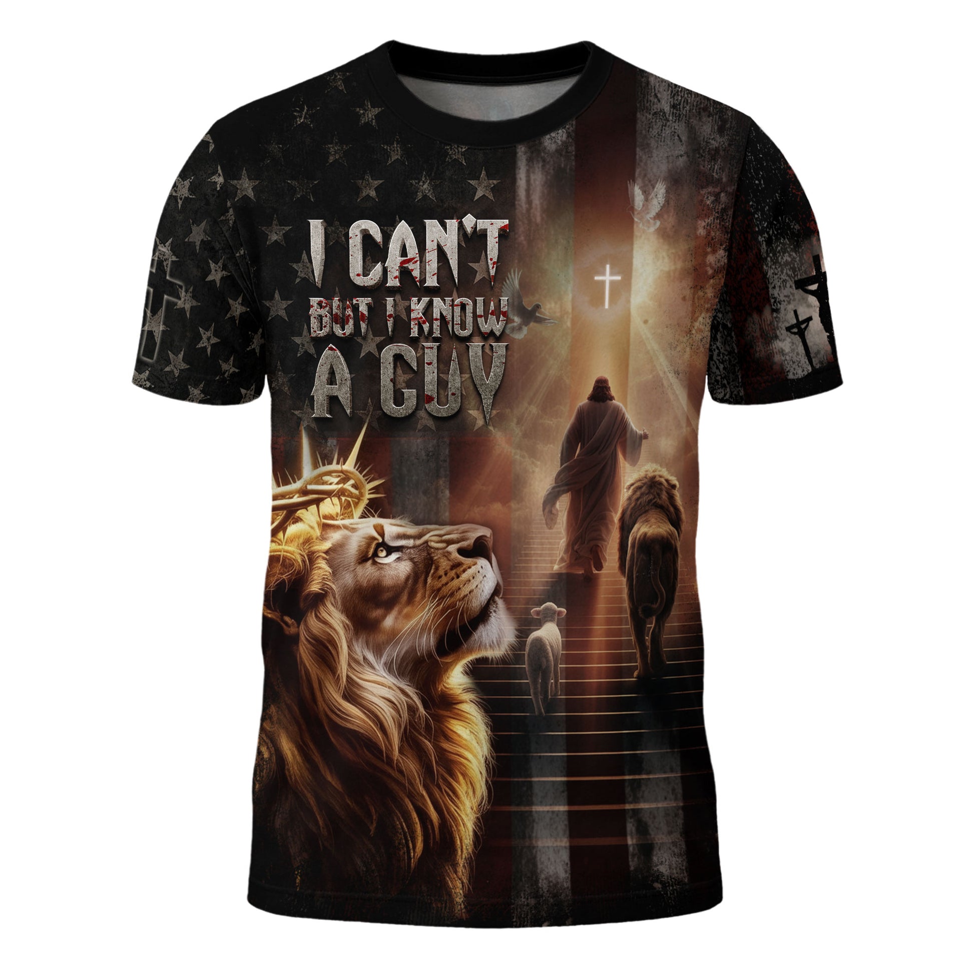 I Can’t But I Know A Guy Lion & Cross American Flag T-Shirt