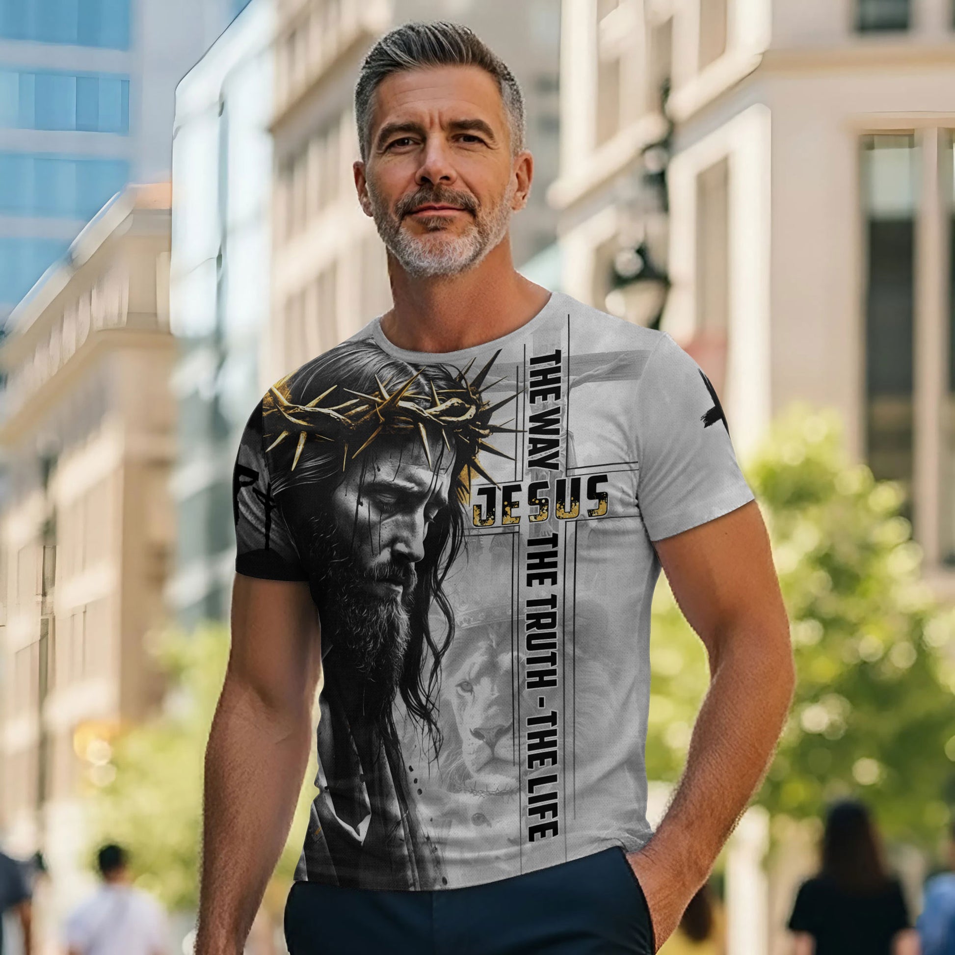 Jesus The Way The Truth The Life Black White Gold Lion Christian T-Shirt
