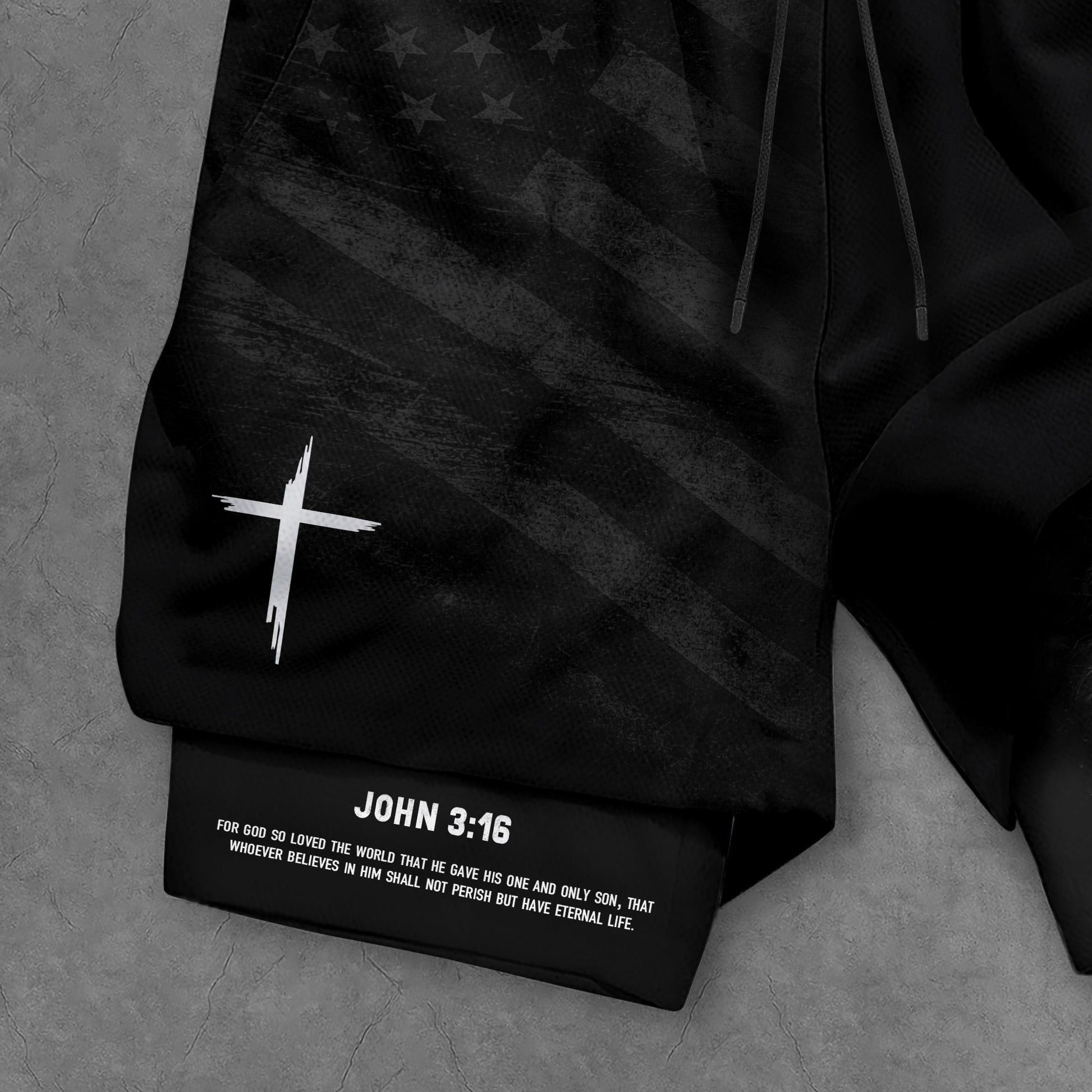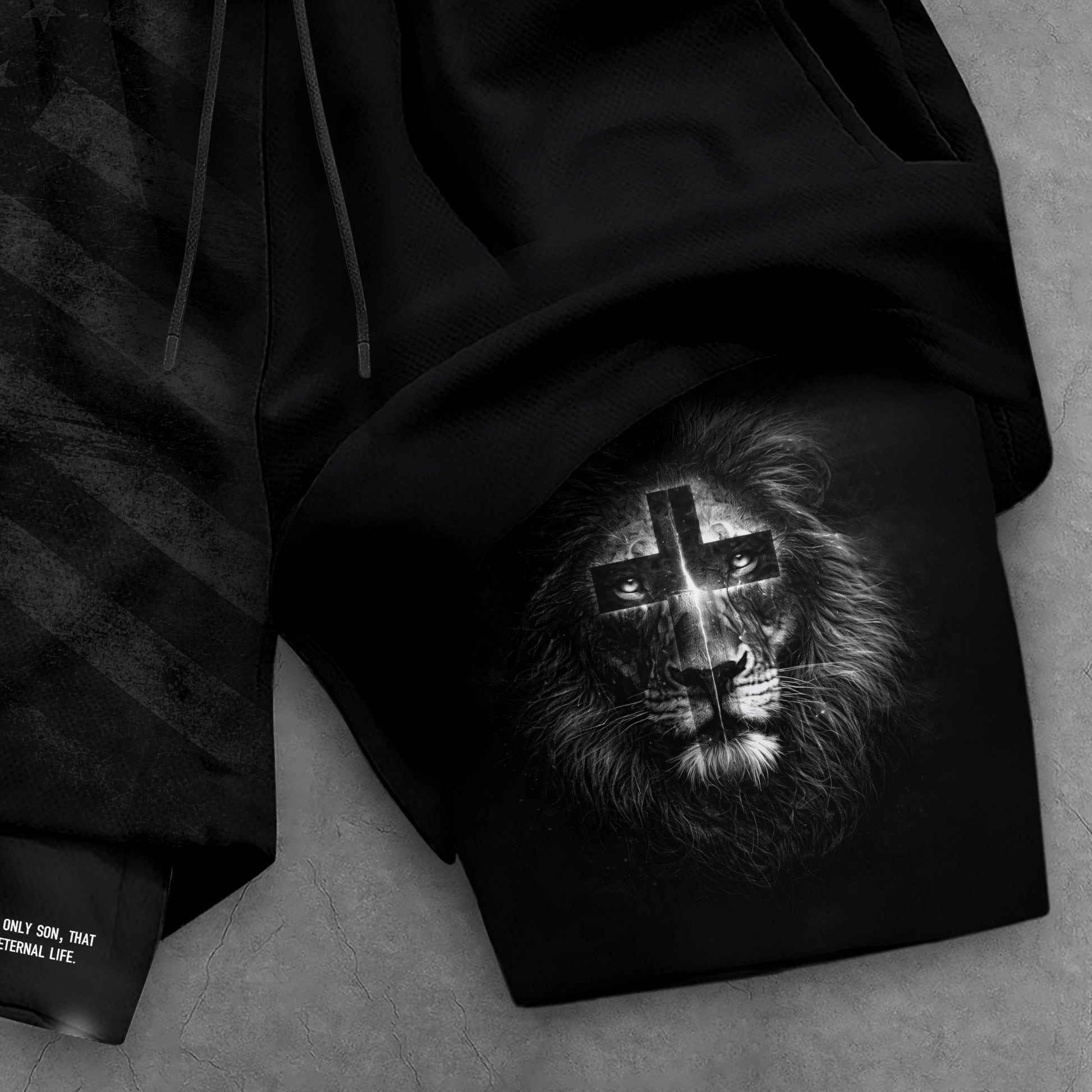 John 3:16 Bible Verse Lion of Judah Christian Gym Shorts Men Athletic Performance Wear