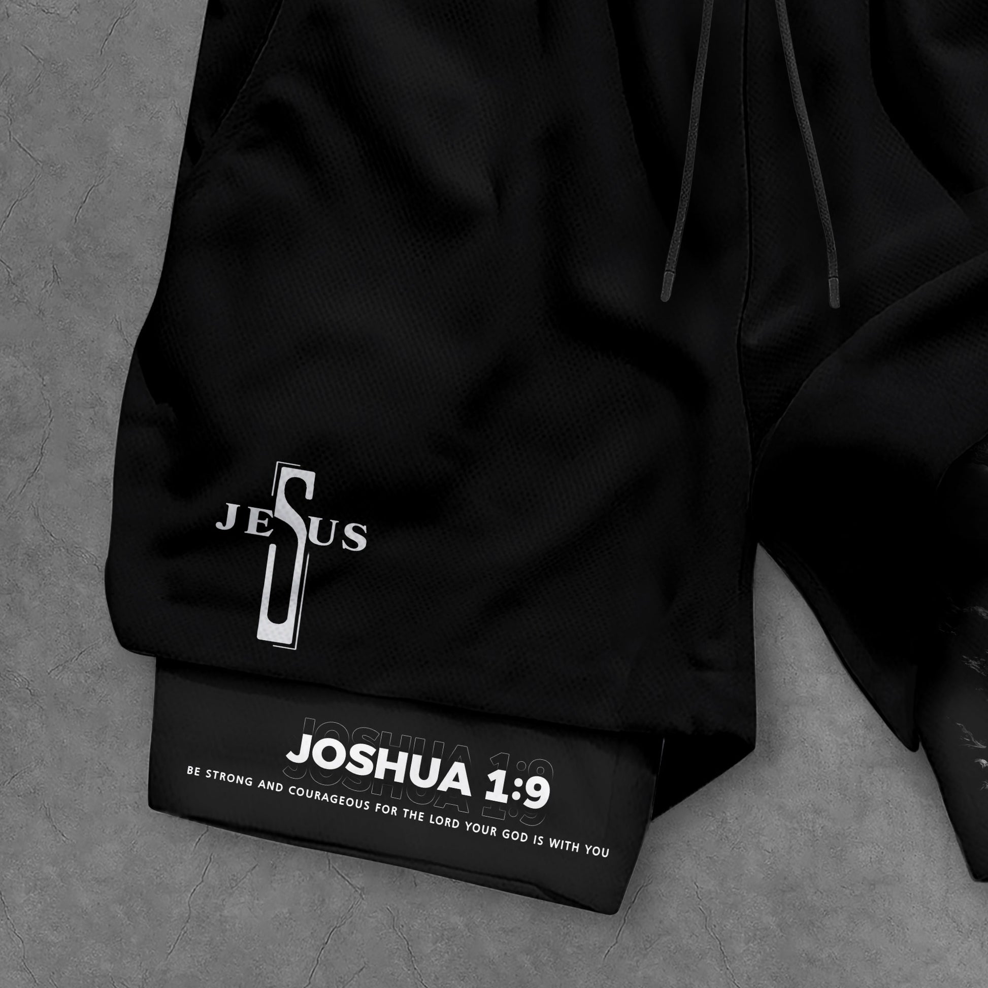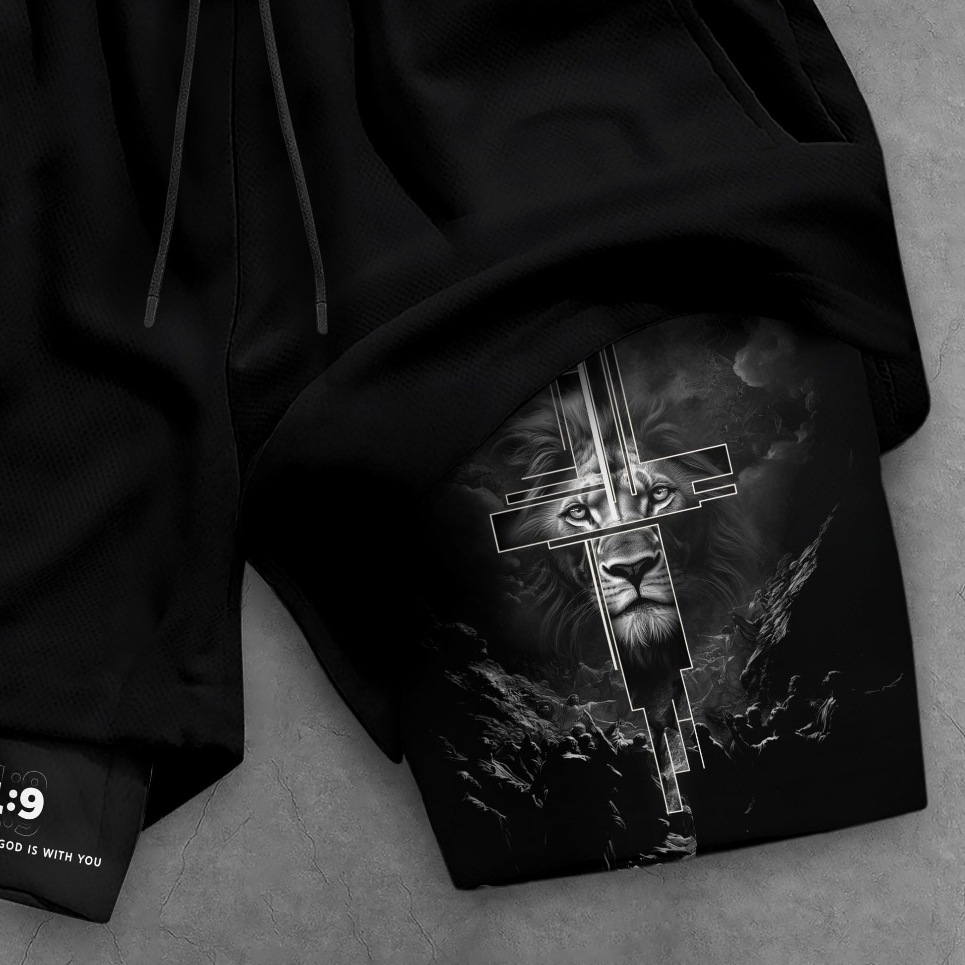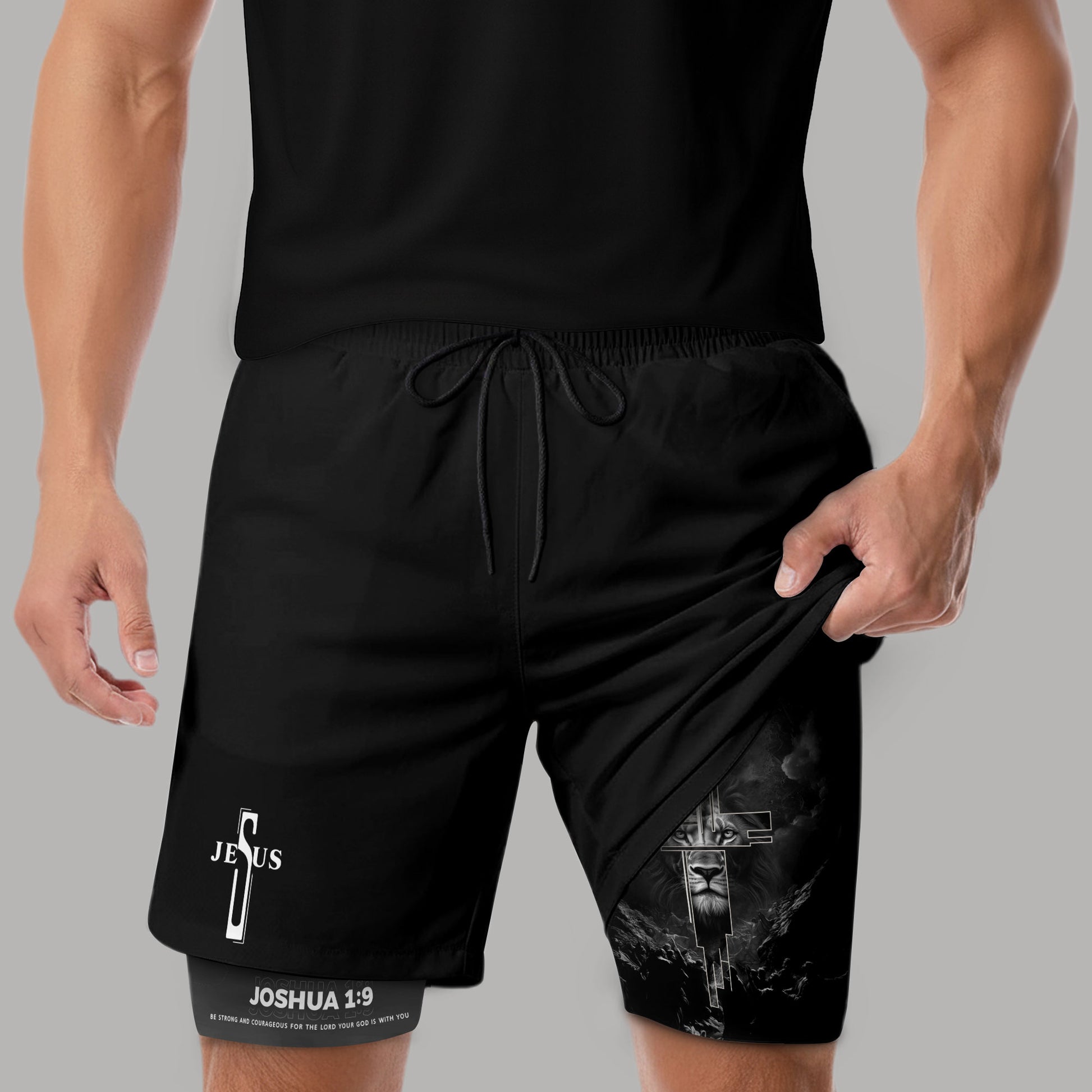 Joshua 1:9 Bible Verse Christian Men Gym Shorts Jesus Cross Nails Lion of Judah Training Activewear
