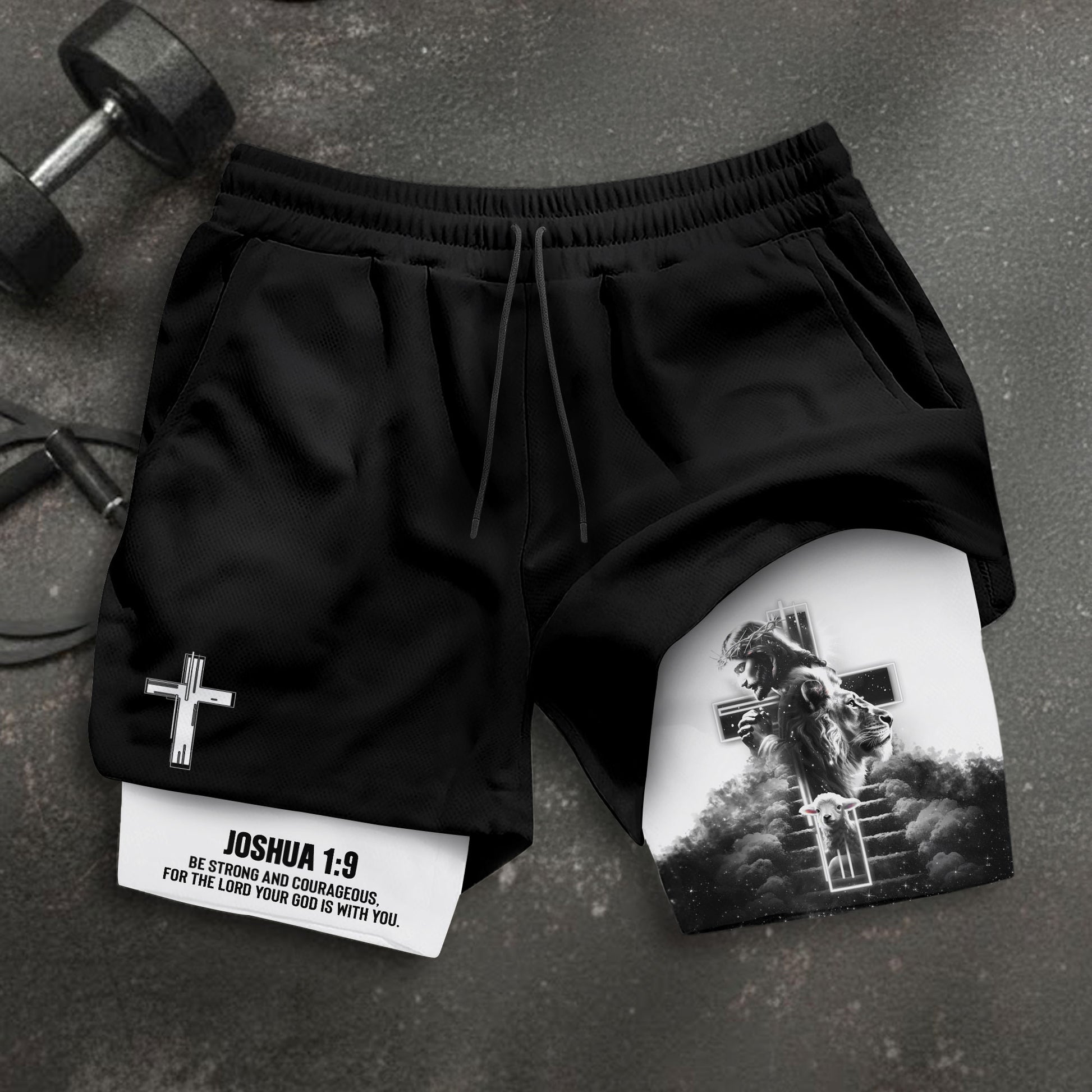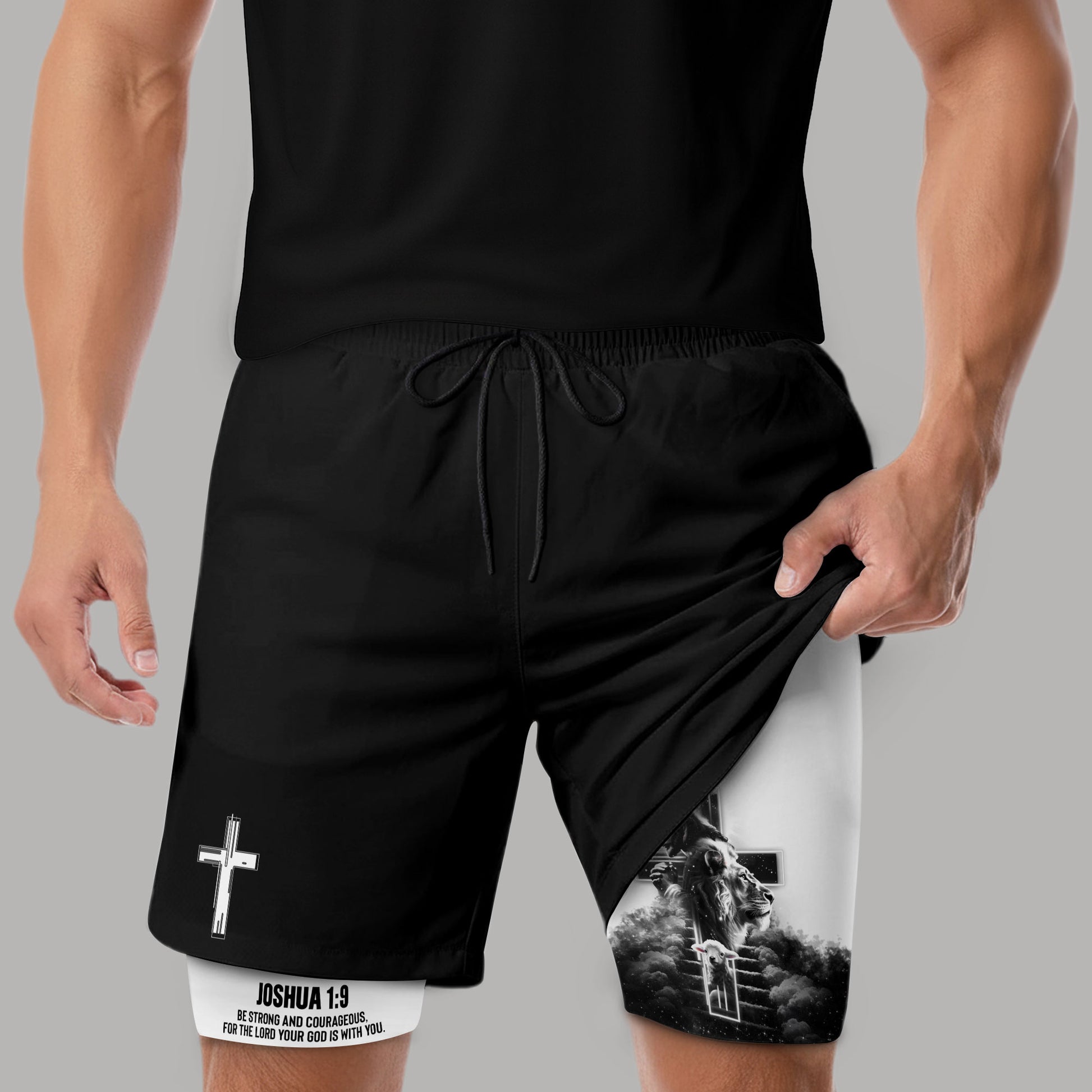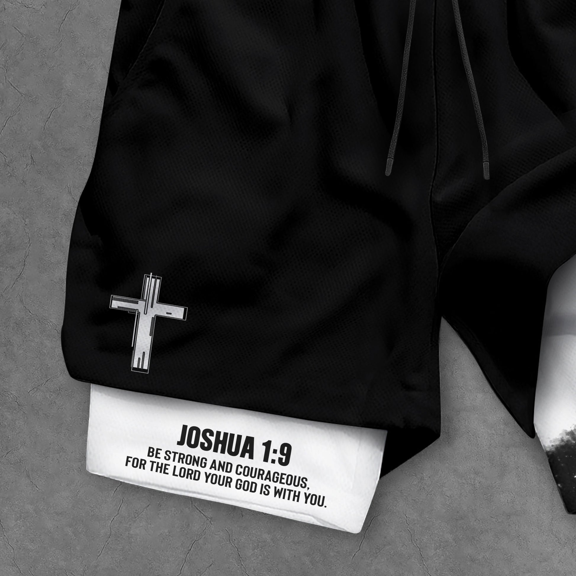 Joshua 1 9 Christian Gym Shorts for Men Jesus Cross Faith Design