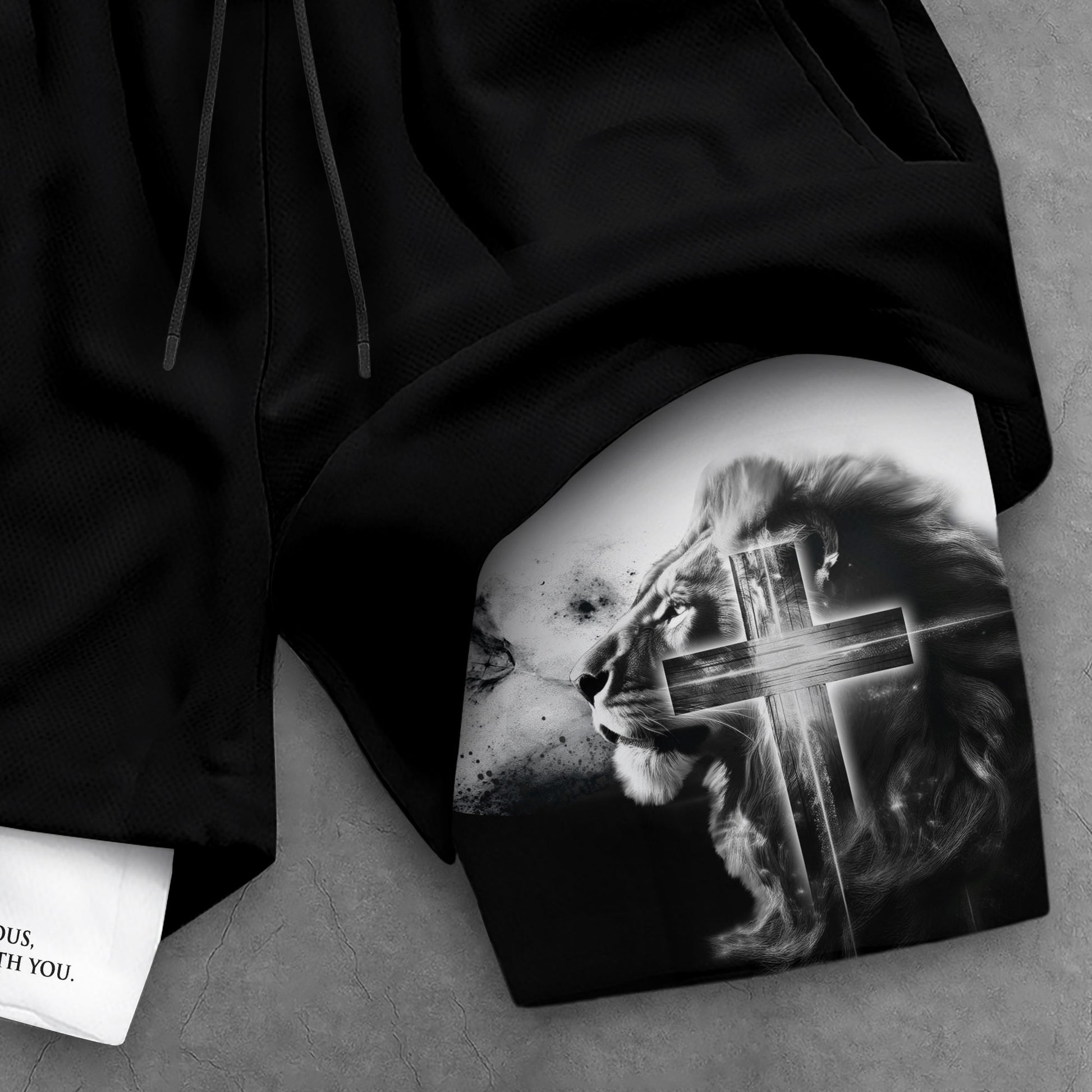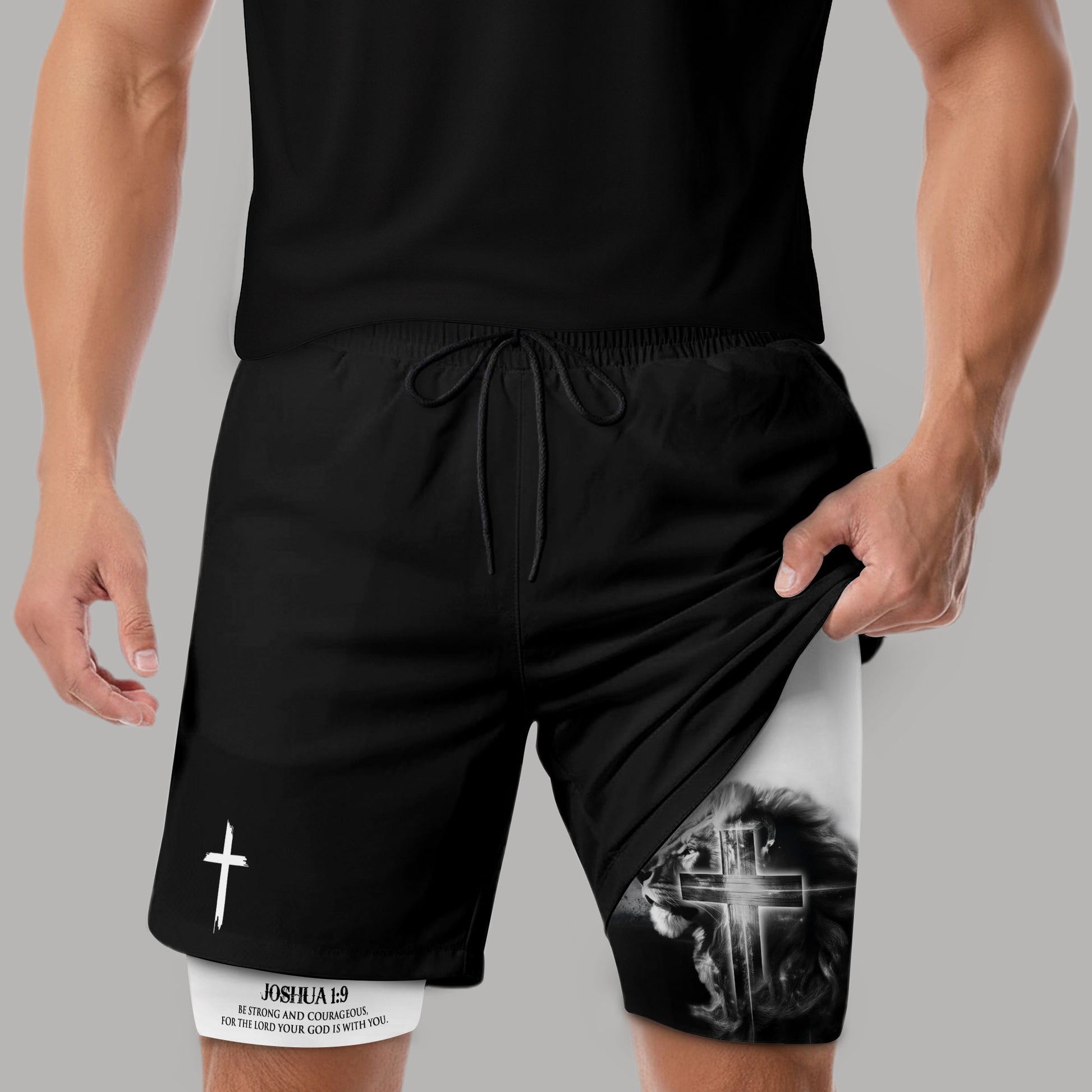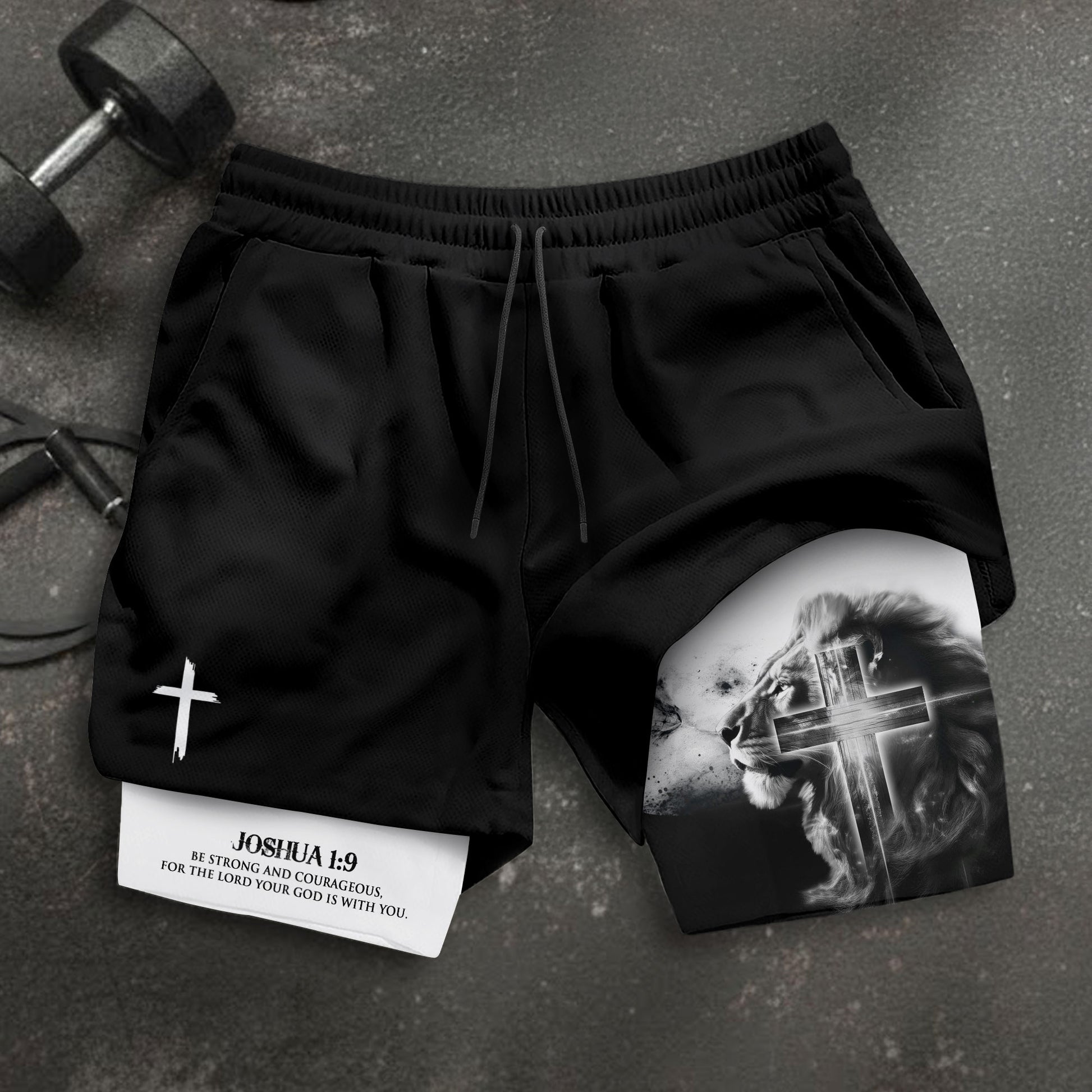 Joshua 1 9 Christian Gym Shorts for Men Lion Cross Bible Verse