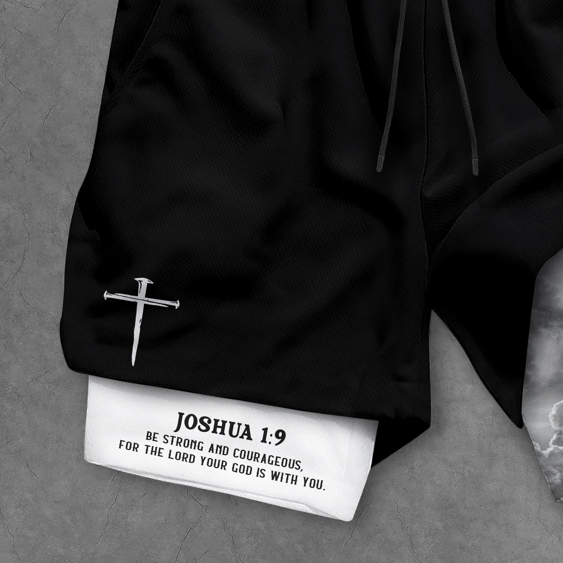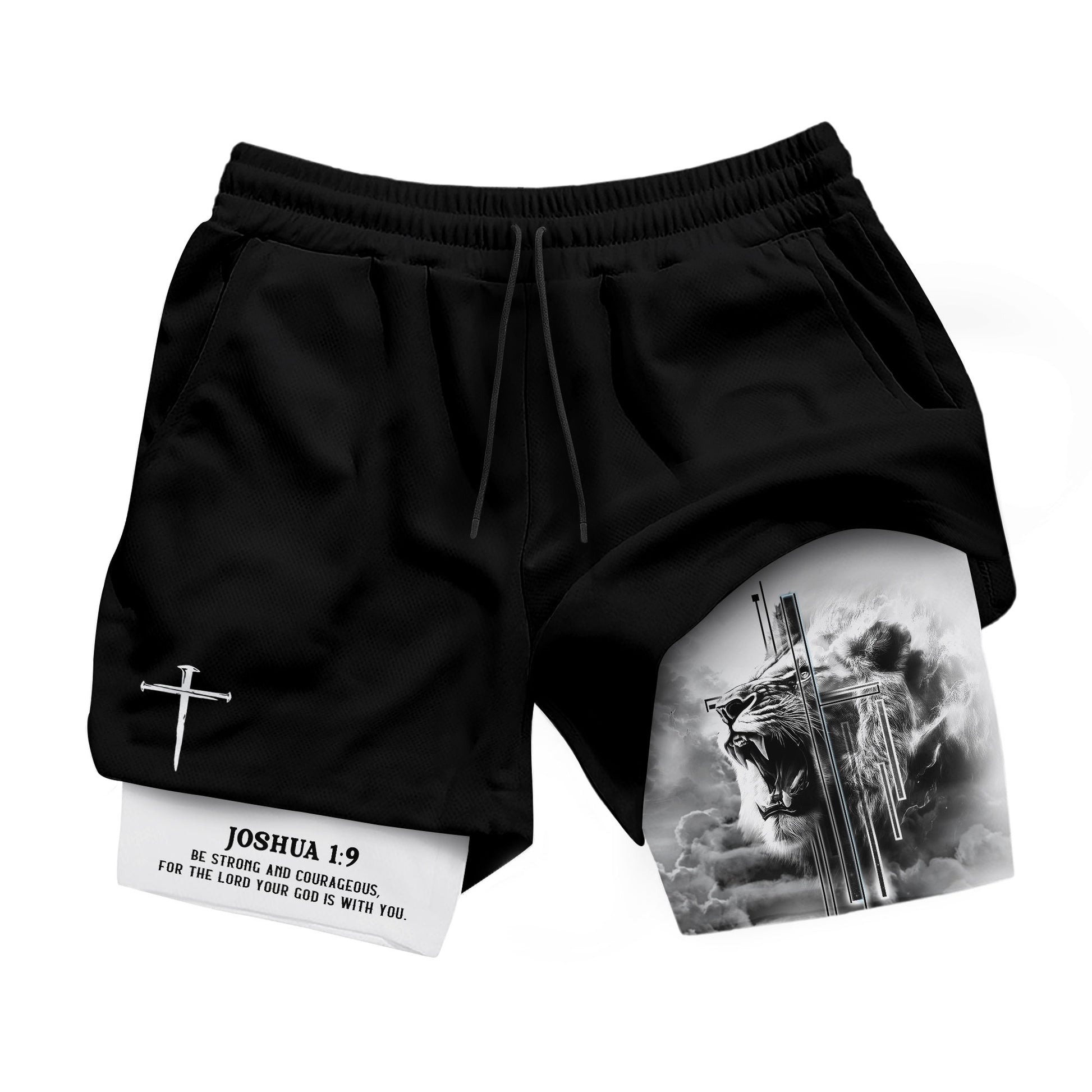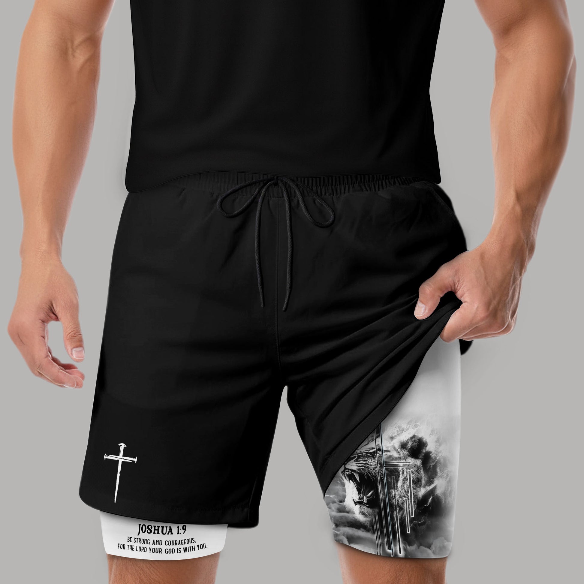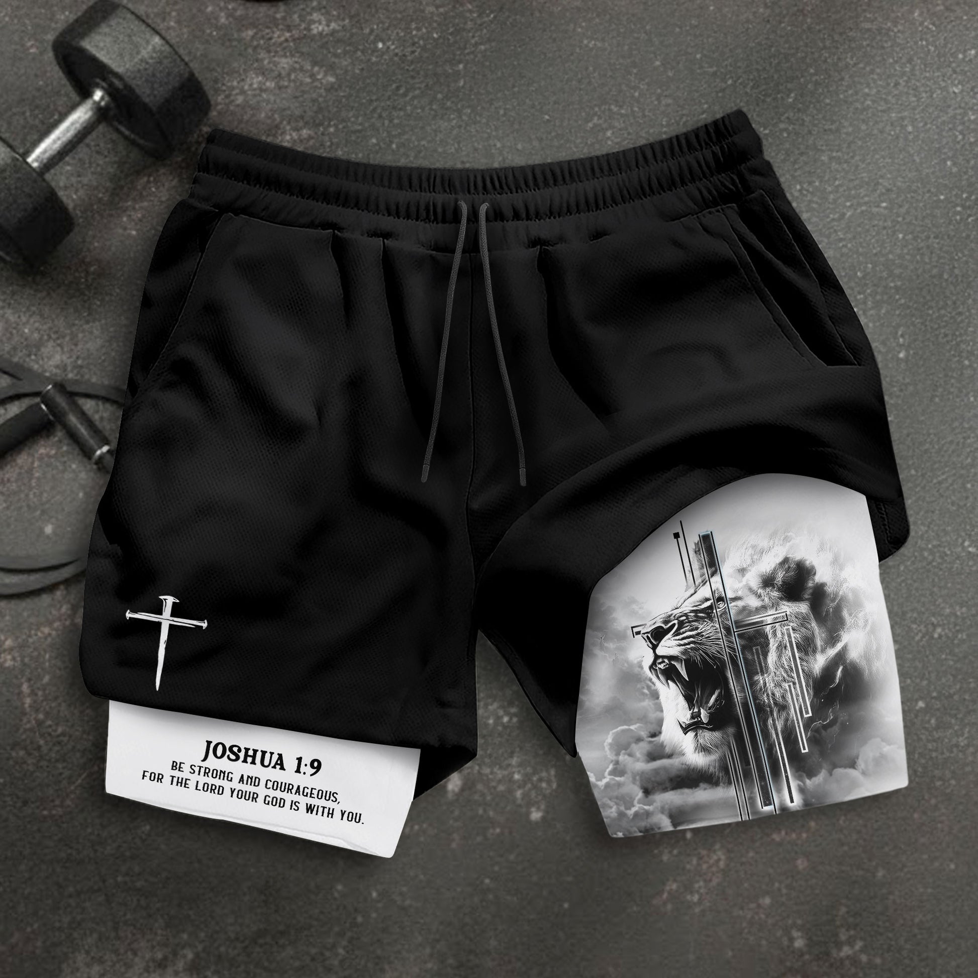 Joshua 1 9 Christian Gym Shorts for Men Lion Cross Faith Design