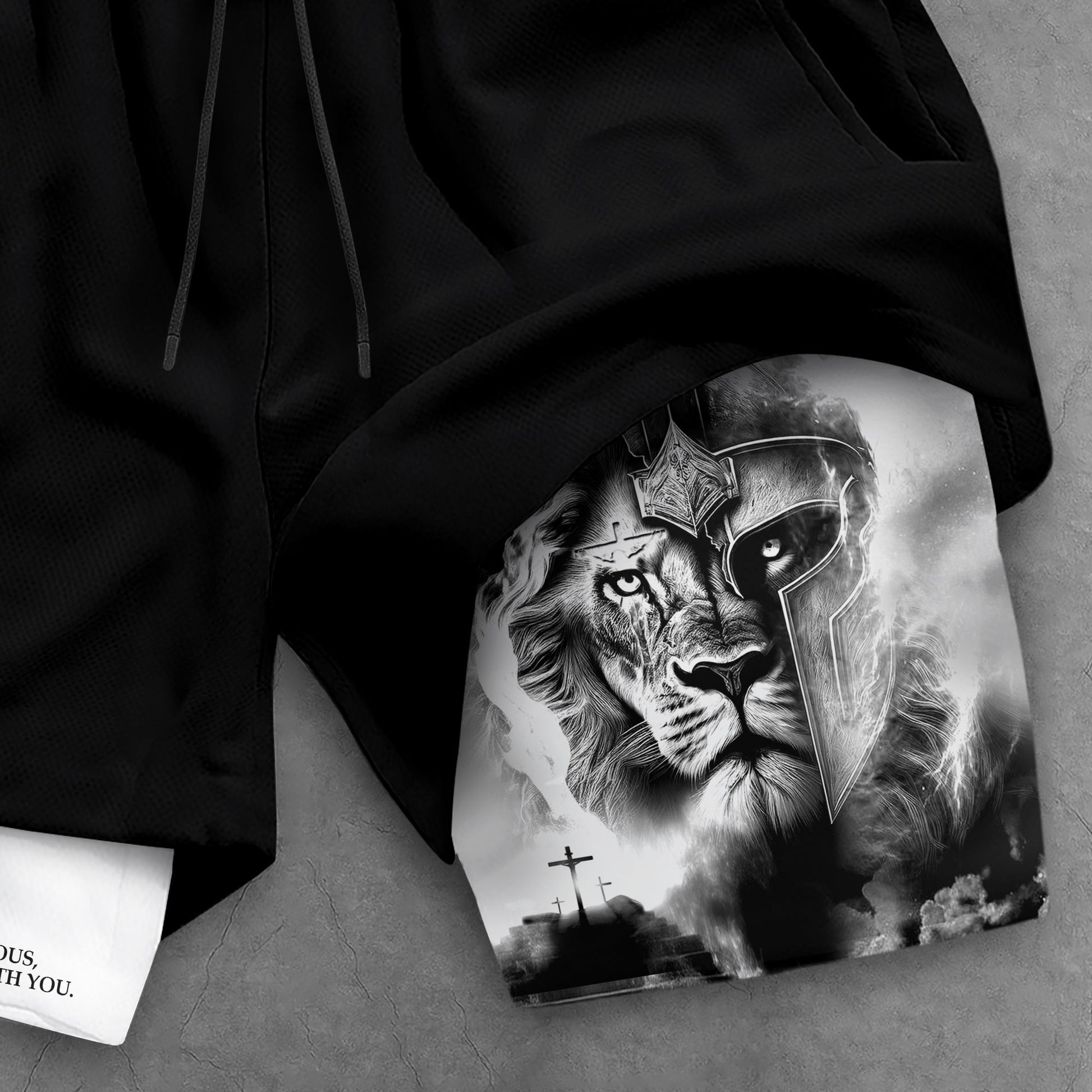 Joshua 1 9 Christian Gym Shorts for Men Lion Warrior Cross Design
