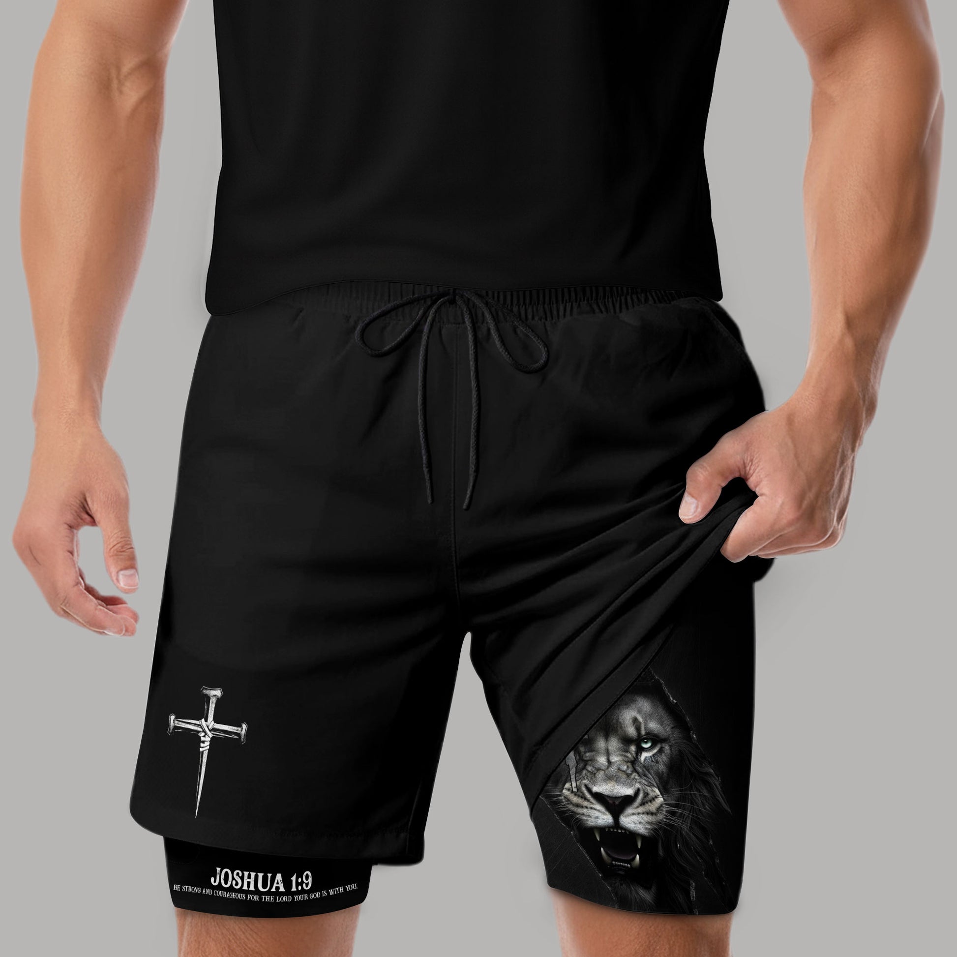 Joshua 1:9 Christian Gym Workout Shorts Men Lion of Judah Bible Verse Activewear