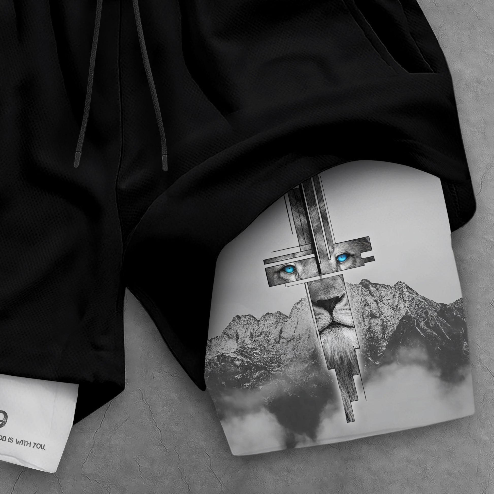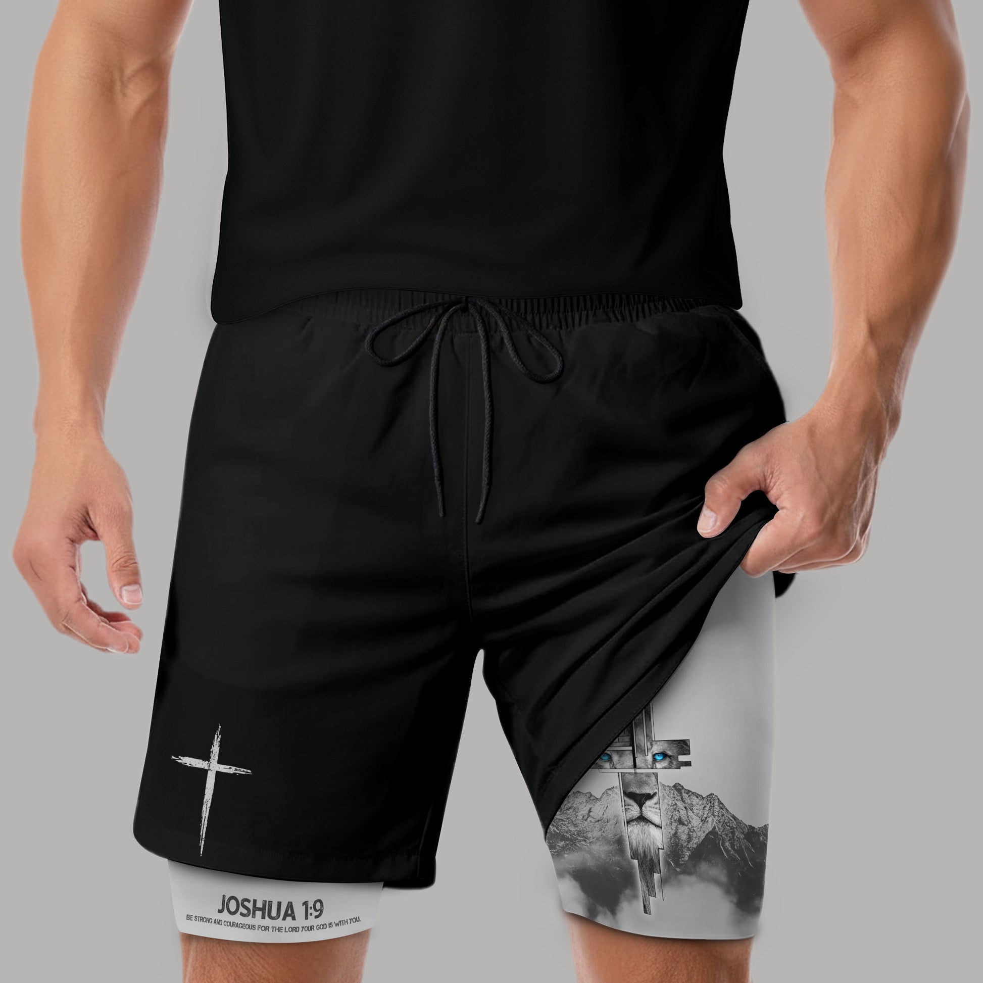 Joshua 1 9 Lion Cross Mountain Christian Gym Shorts Faith Strength