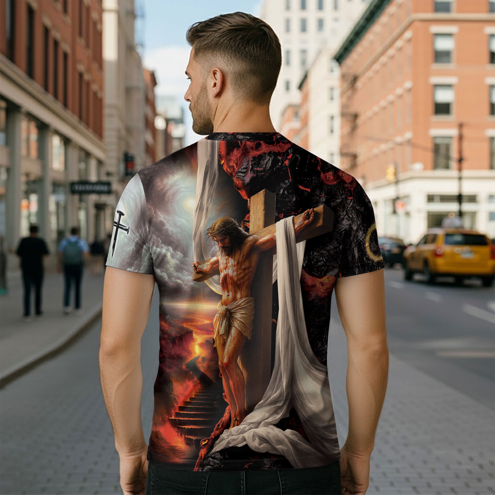 Featuring a classic round neck, short sleeves, and full all-over print design with bold Christian messages. Crafted from premium polyester for a soft, breathable, and durable wear that keeps you comfortable all day!