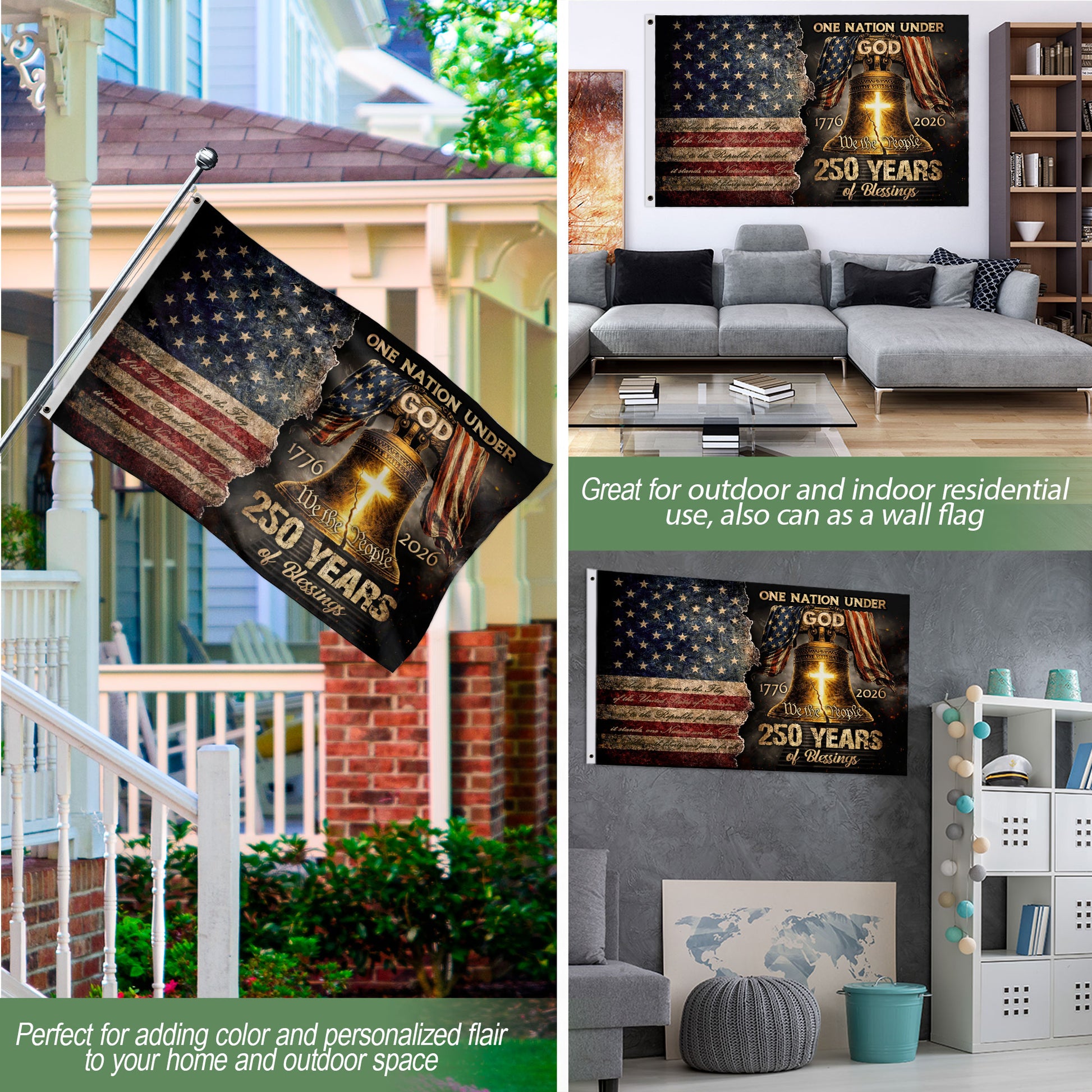 One Nation Under God America Religious US 250th Anniversary Flag – 250 Years of Blessings Garden Banner