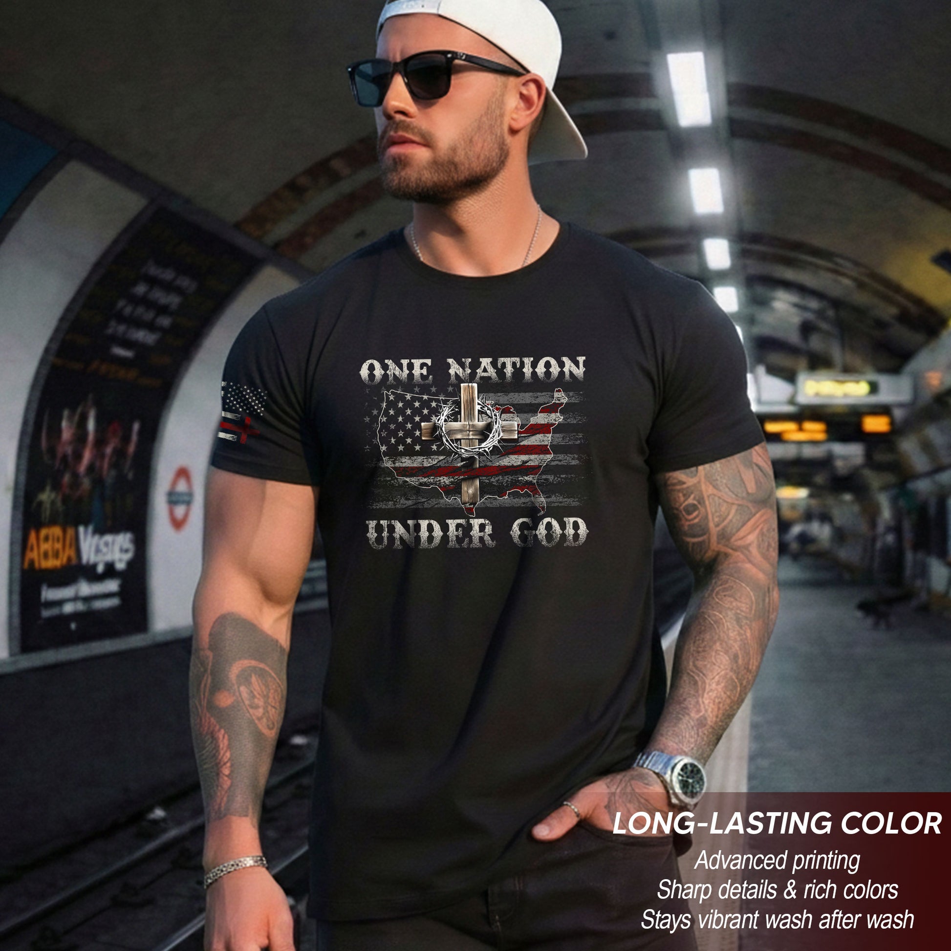 One Nation Under God Christian American Flag T-Shirt
