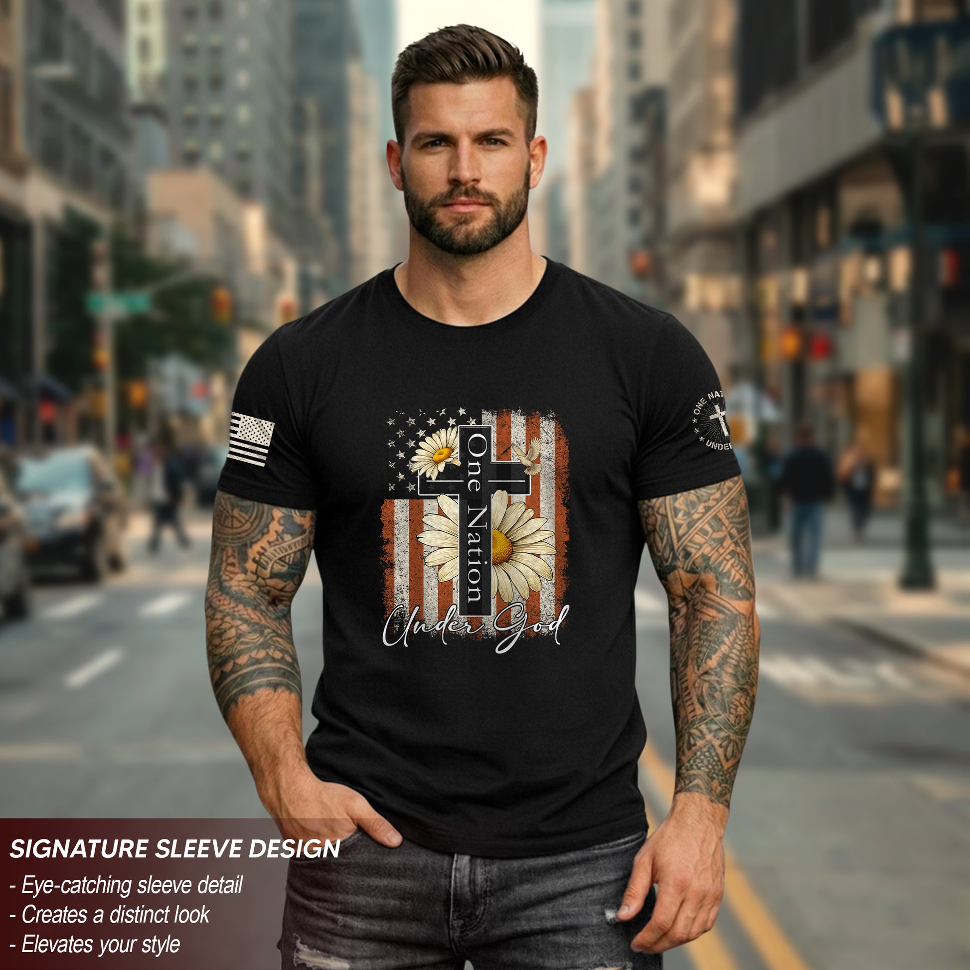 One Nation Under God Floral Patriotic T-Shirt