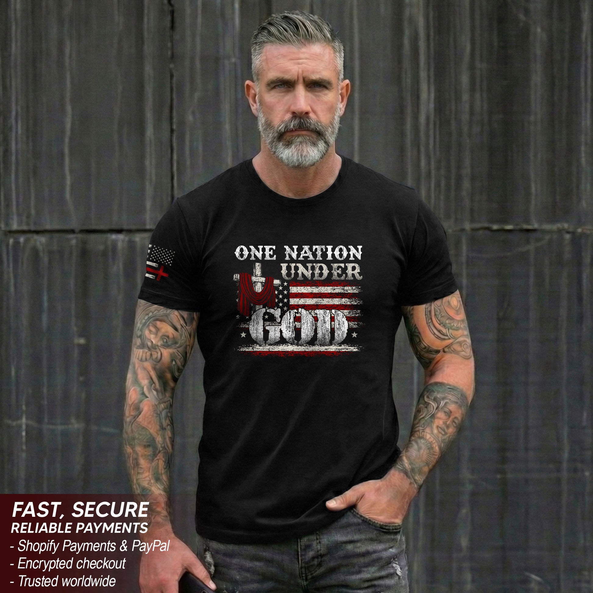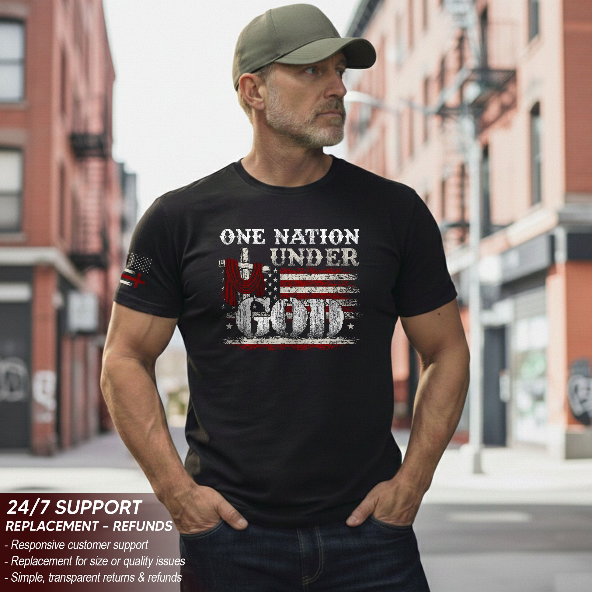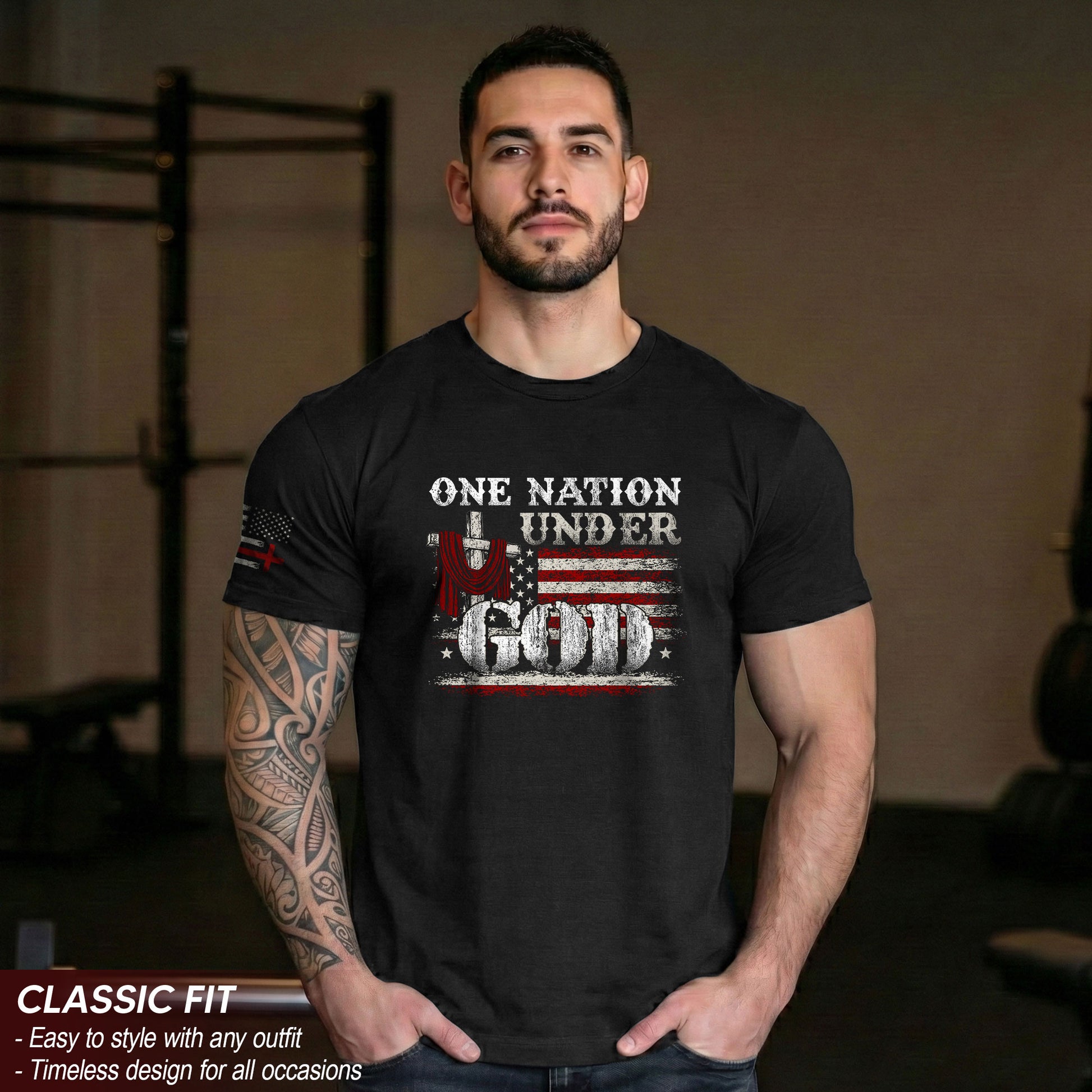 One Nation Under God T-Shirt – Cross & American Flag