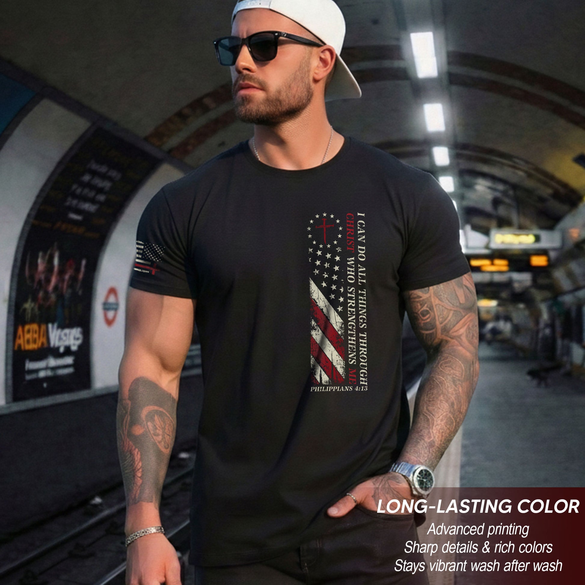 Philippians 4:13 Shirt – I Can Do All Things Through Christ American Flag Tee