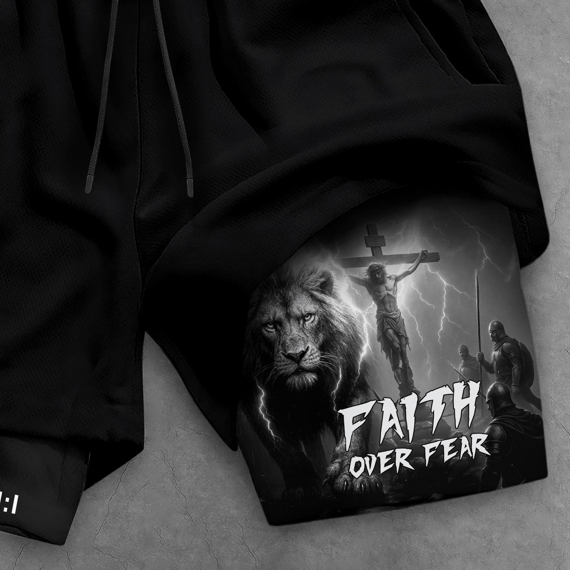 Faith over fear lion and cross christian shorts Inspired by Psalm 27 1 A bold reminder to trust God’s strength