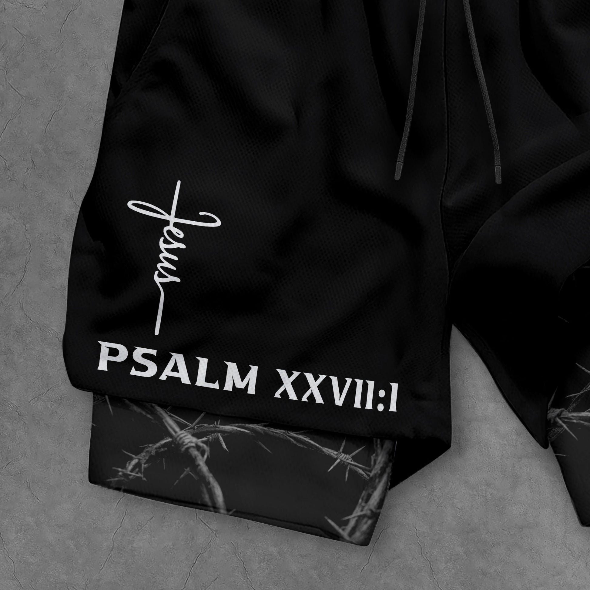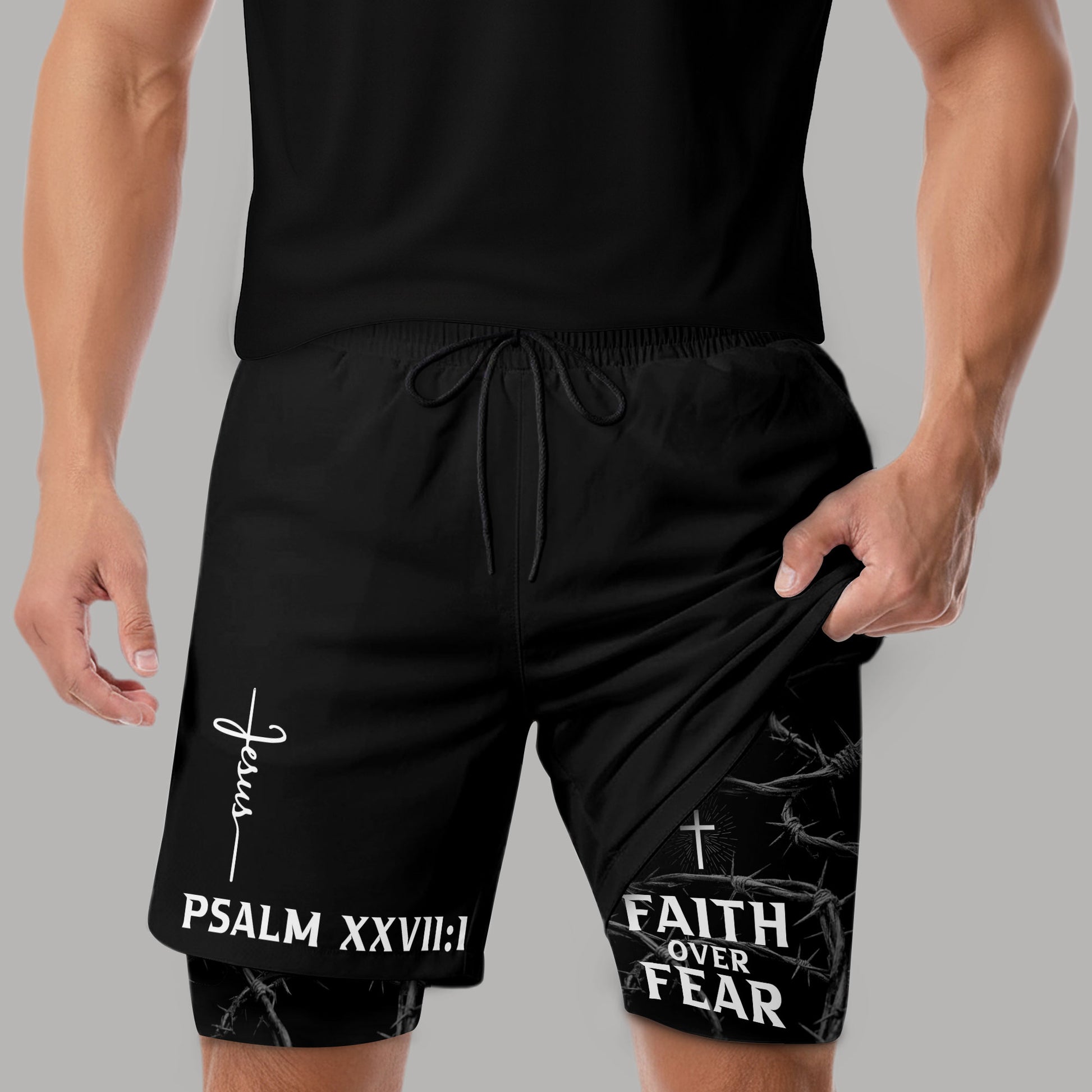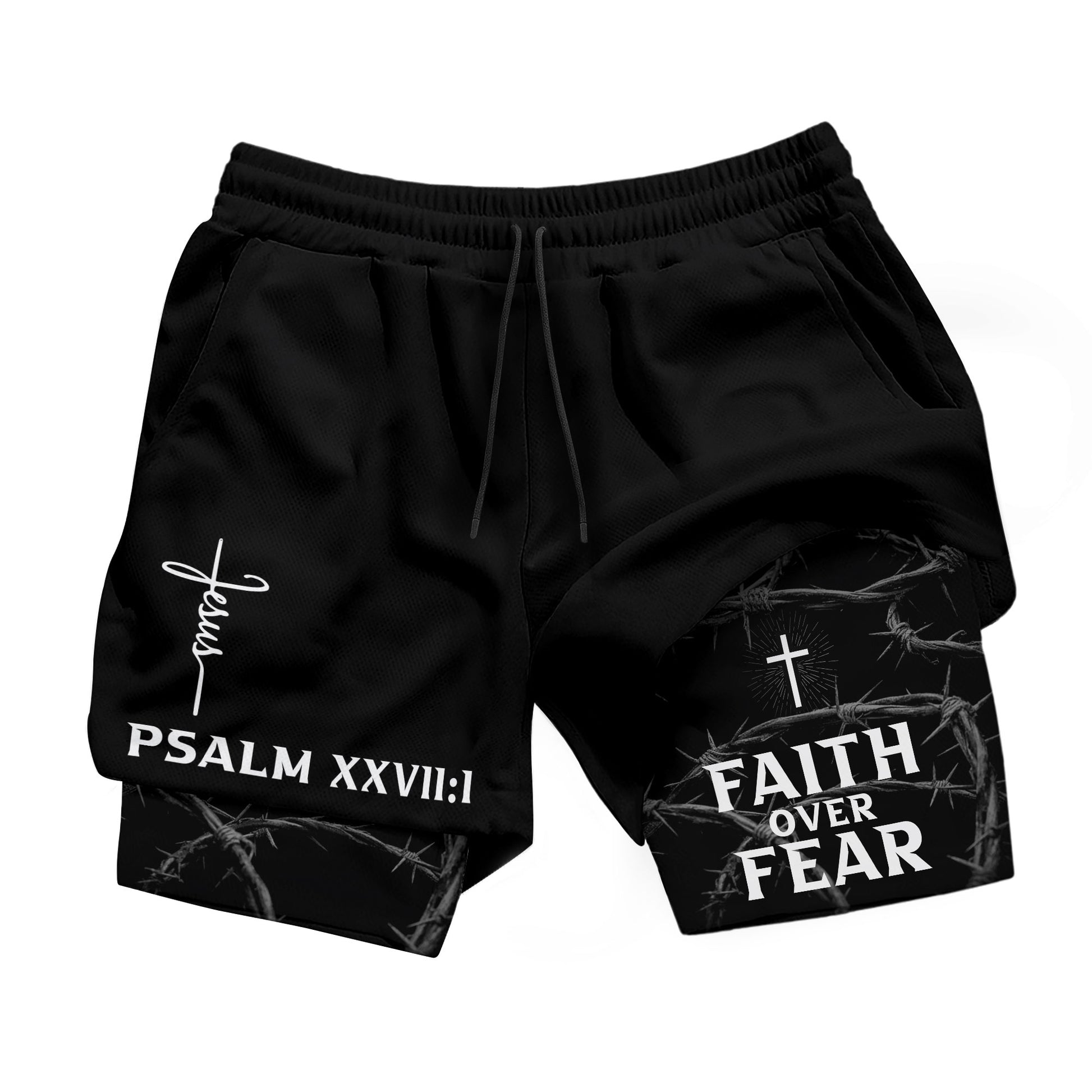 Psalm 27:1 Faith Over Fear Christian Mens Training Shorts Thorns Cross Bible Verse