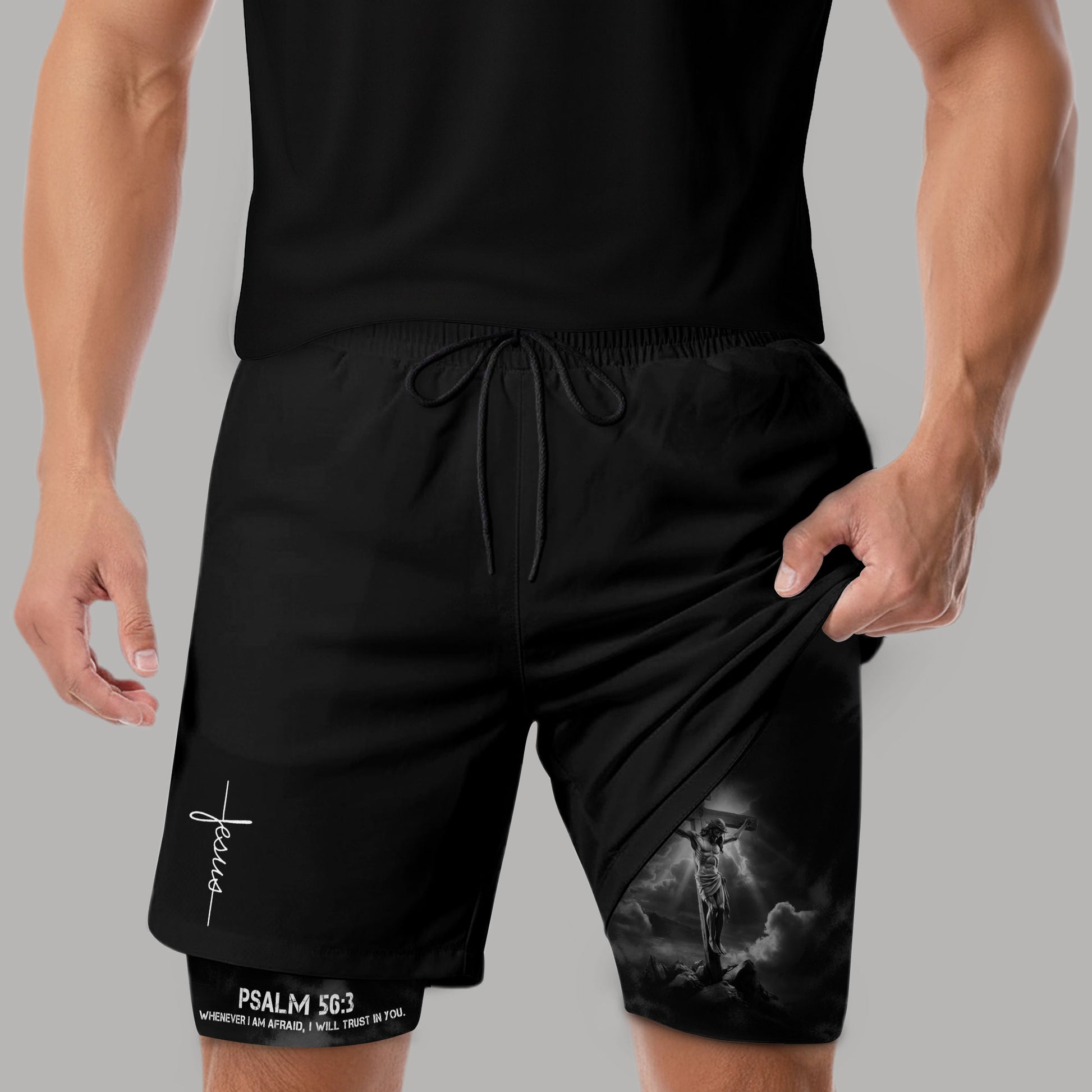 Psalm 56:3 Christian Gym Workout Shorts Men Jesus Cross Bible Verse Religious